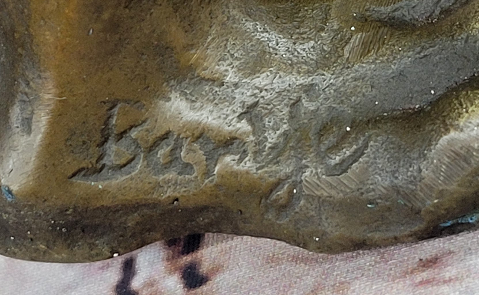 Introducing the captivating Bronze Cougar Sculpture, a remarkable depiction of grace and power. Step into the immersive world of this sculpture as it invites you to join the majestic cougar on her journey across the vast open fields. With each step, her muscles flex, conveying strength and agility that mesmerizes the viewer and ignites the imagination. This sculpture showcases an astounding level of detail, capturing the essence of the cougar's stride with exceptional artistry. Notice the seamless transition of her paws and weight as she gracefully traverses the terrain. Her facial expression exudes a sense of calm, combined with a playful demeanor as she lightly paws at the ground, adding an element of charm to her majestic presence. A soft brown patina complements the sculpture, accentuating the contours of the cougar's legs, paws, and head. Every aspect of the tiger's visage is intricately detailed, from the shape of the skull and jawline to the placement of the ears and the overall facial structure. Crafted using the esteemed "Lost Wax Method," this bronze sculpture embodies the finest traditions of artistry. Its sleek and graceful form captures the essence of the cougar's natural beauty, making it a perfect centerpiece for wildlife enthusiasts. The sculpture proudly bears the signature of Barye, an acclaimed artist renowned for capturing the spirit of wildlife in bronze. Experience the allure and majesty of the cougar through this captivating sculpture, a testament to the artist's skill and your appreciation for the wonders of the natural world.