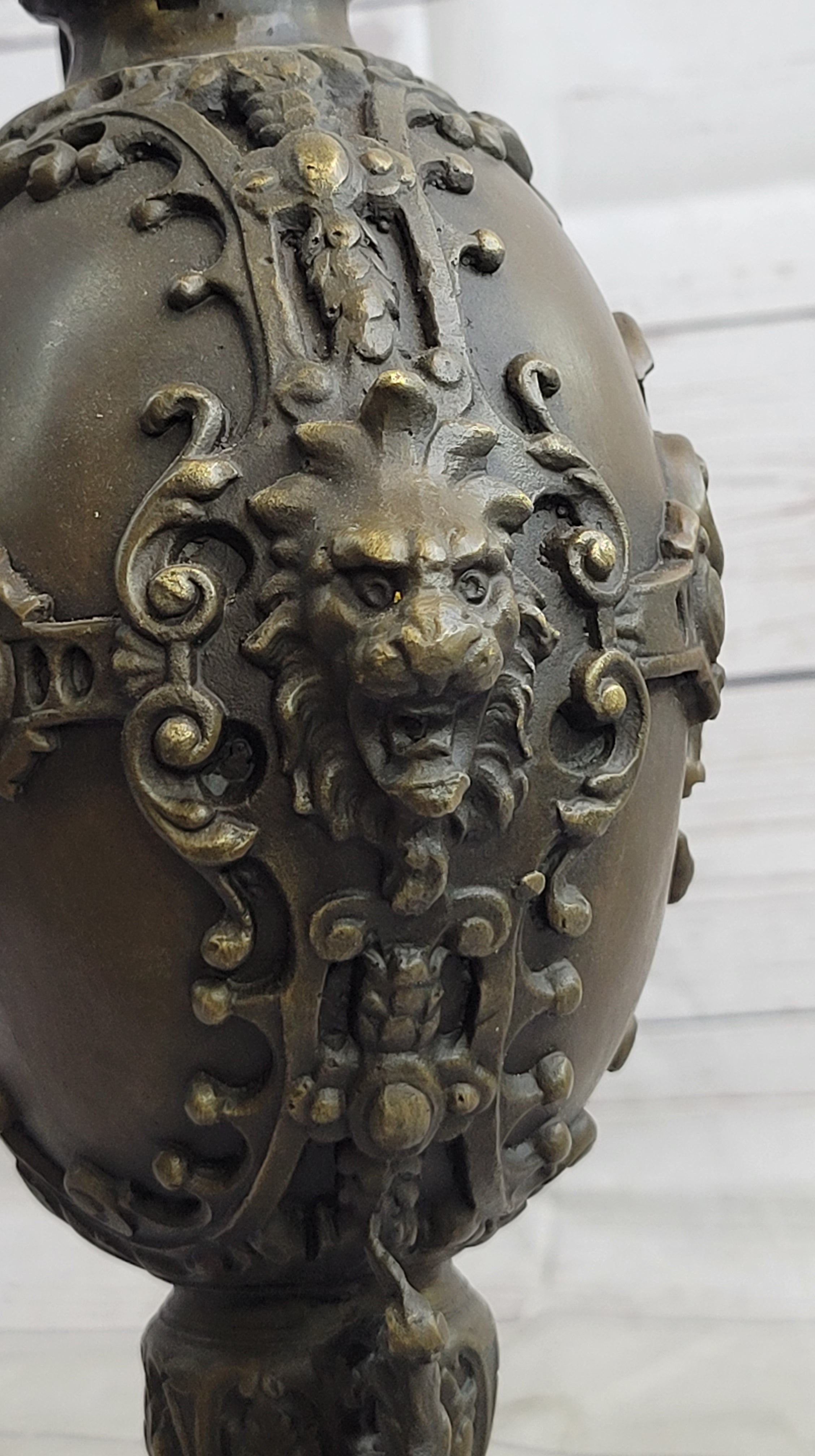 Bronze Royal Lion Griffin King Urn Statue Vase Fantasy Animal Sculpture Statue
