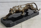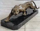 Cougar Puma Panther Mountain Lion Bronze Sculpture Statue on Marble Base