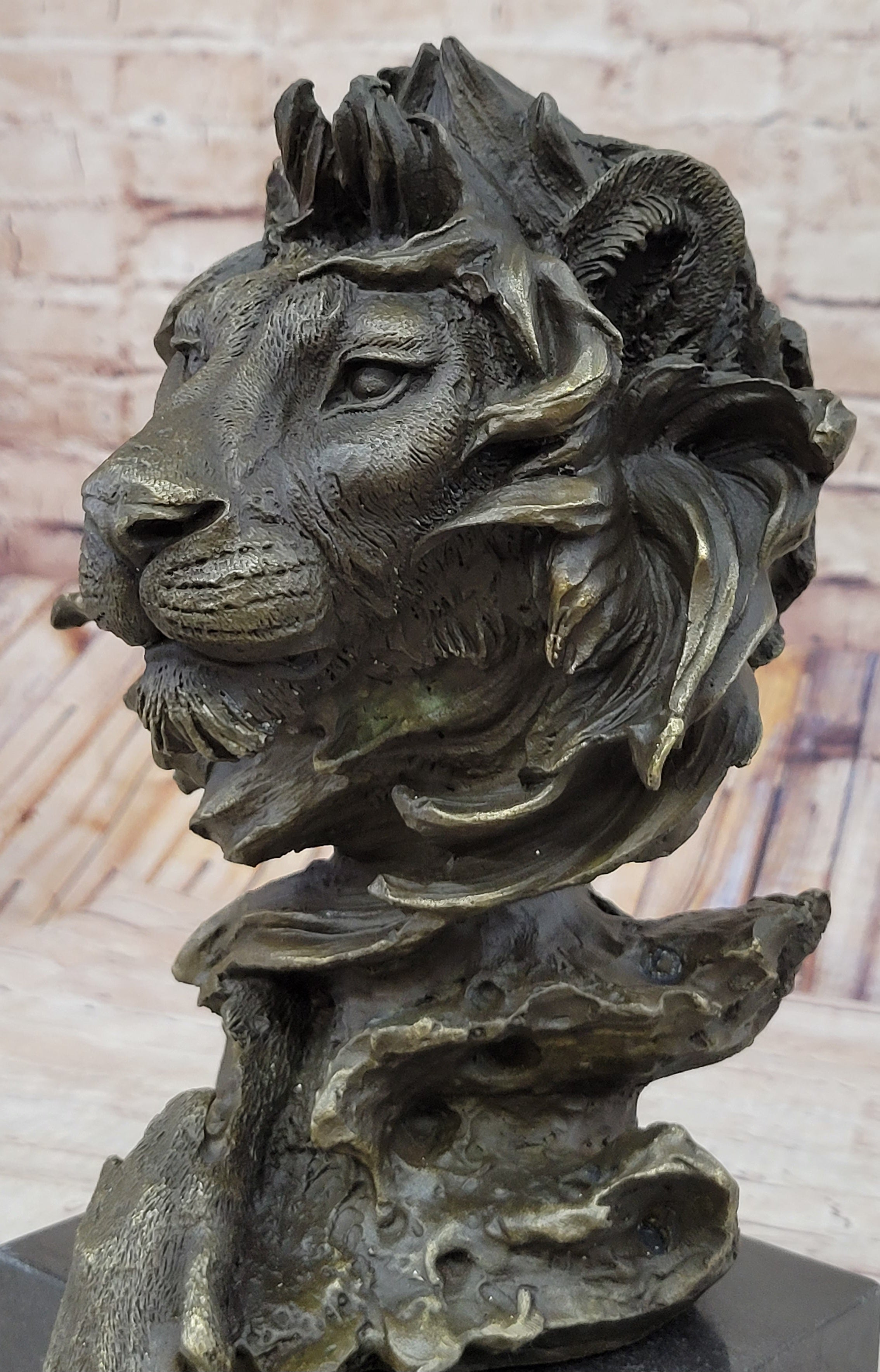 Hand Made African Lion Bust Museum Quality Bronze Sculpture by Barye Figurine