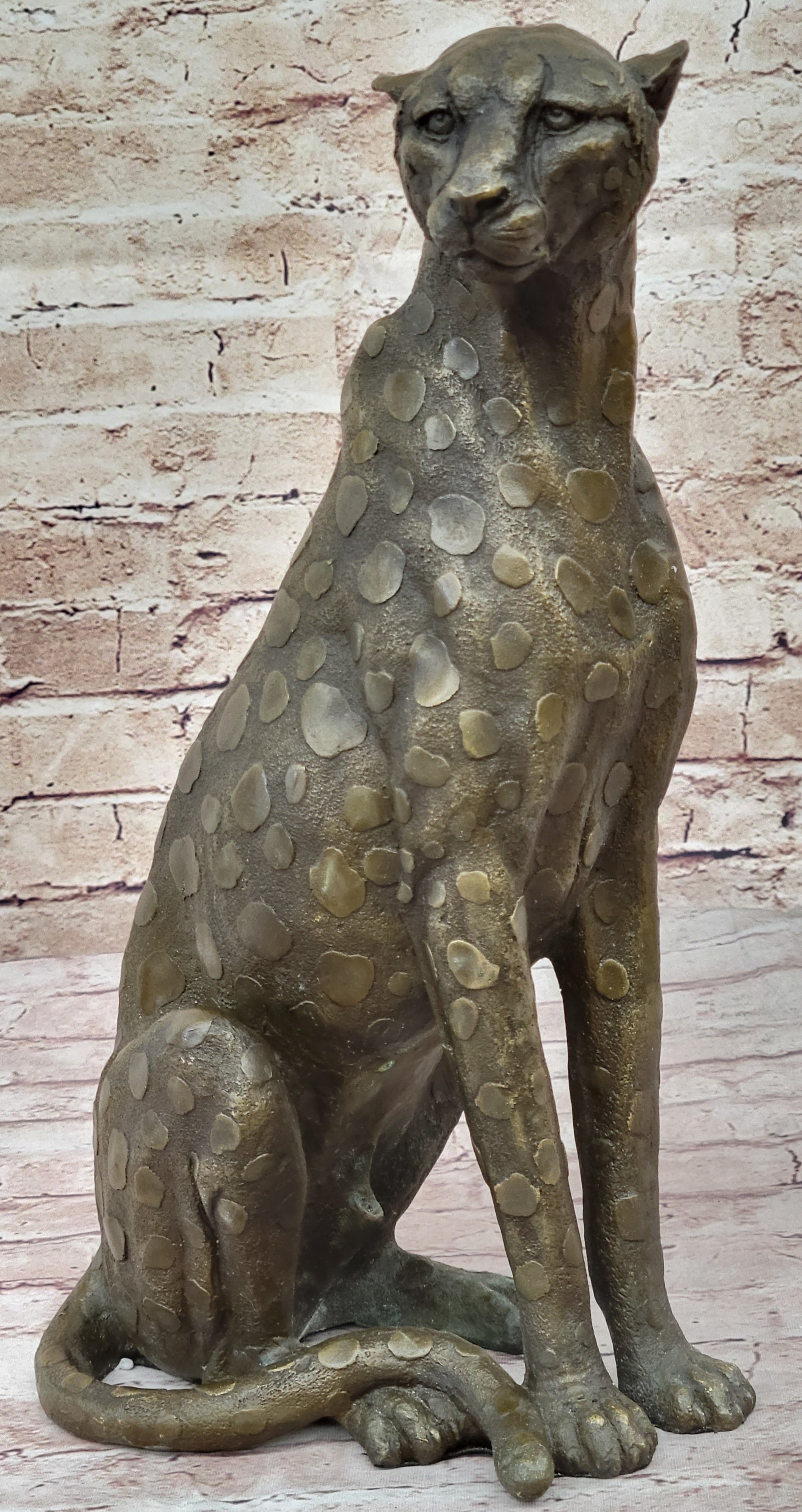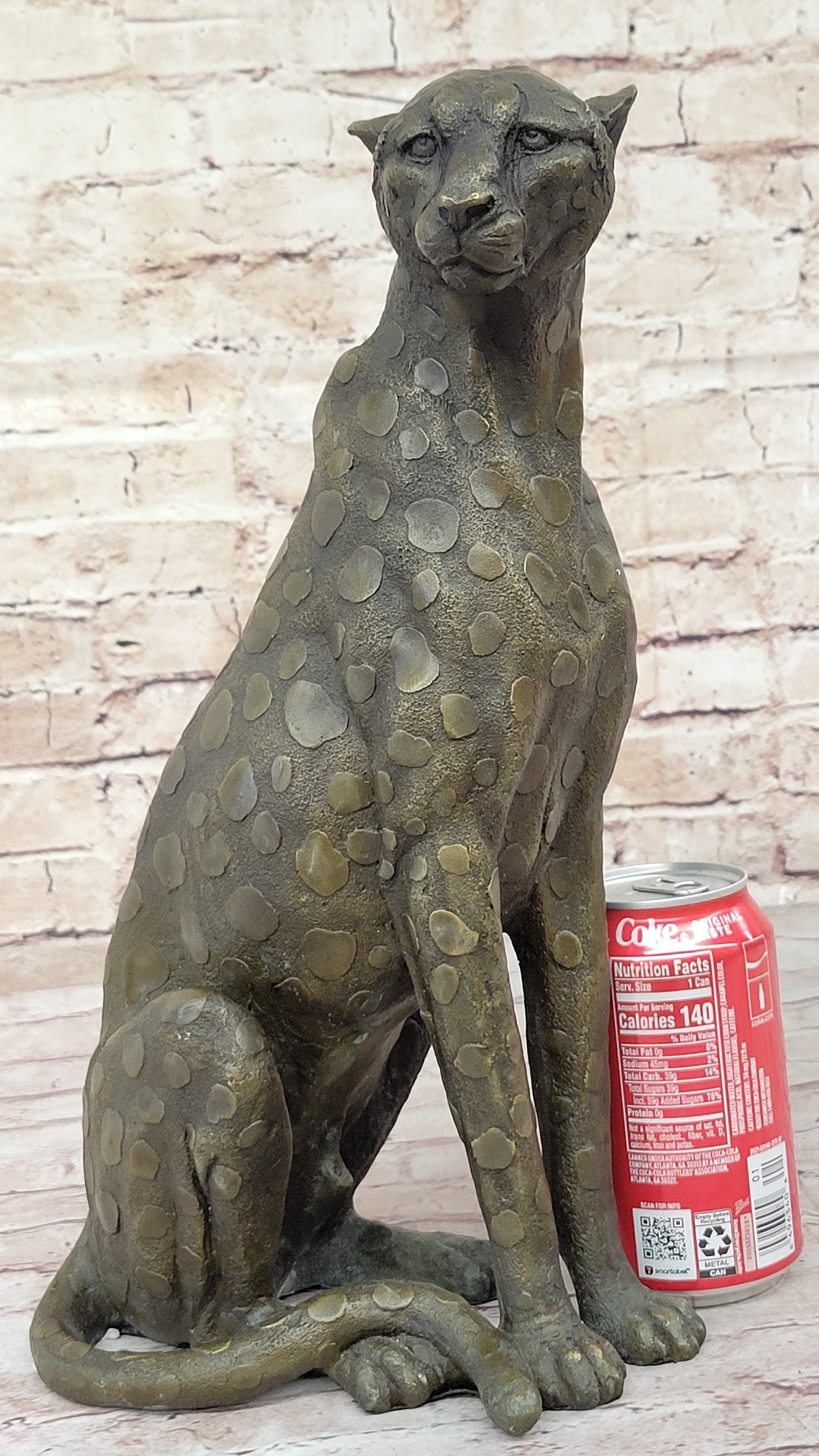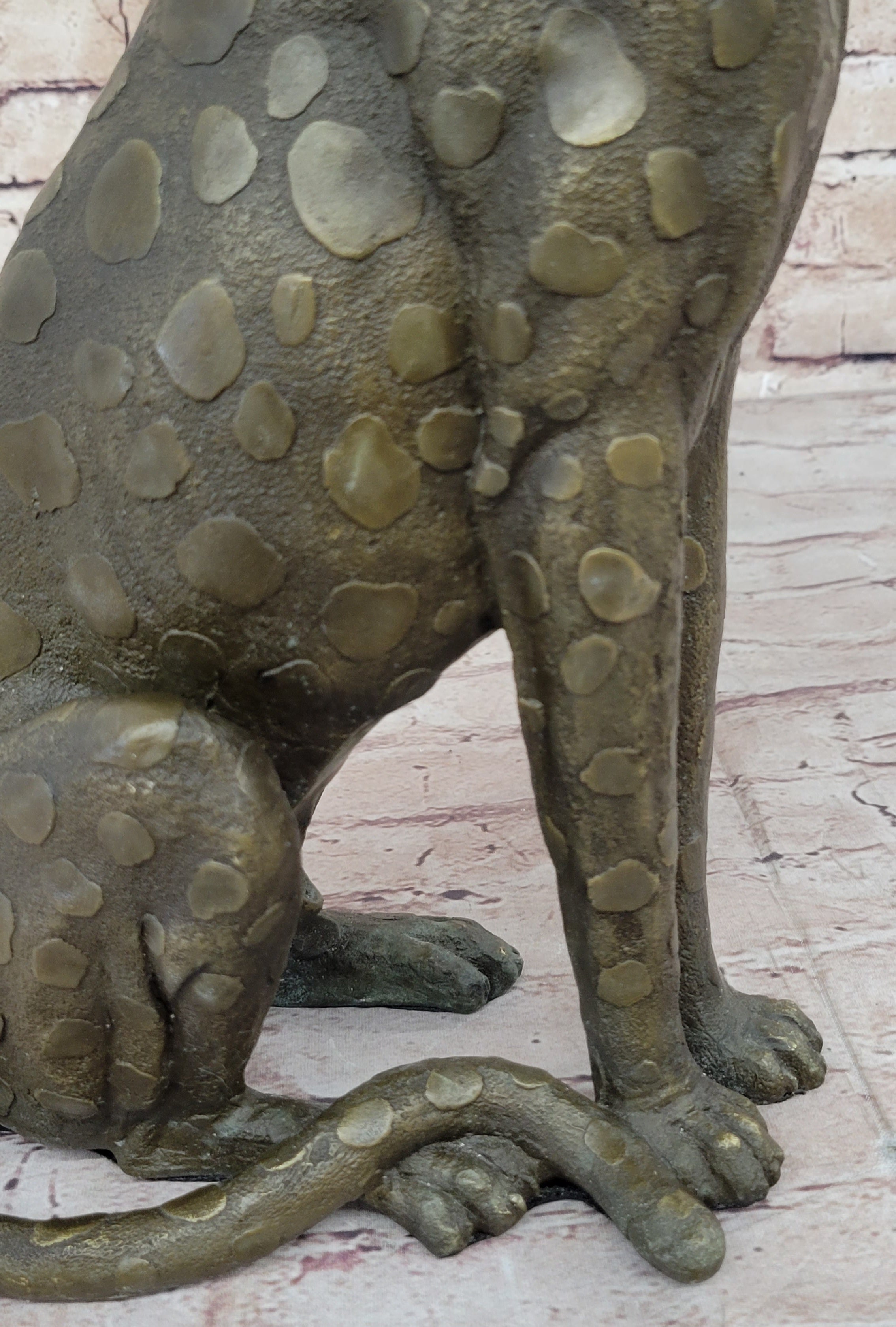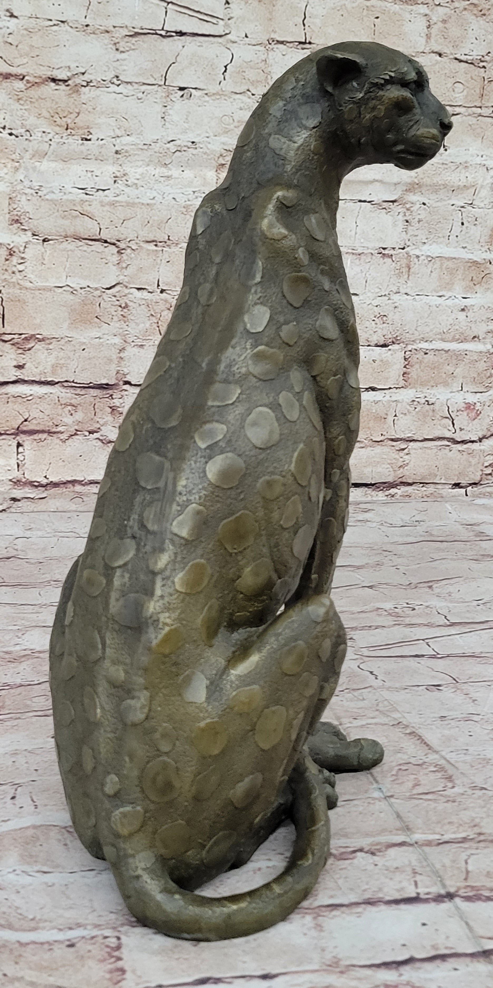 Hot Cast Bronze Guardian Cheetah Leopard Sculpture Statue Figure Decor