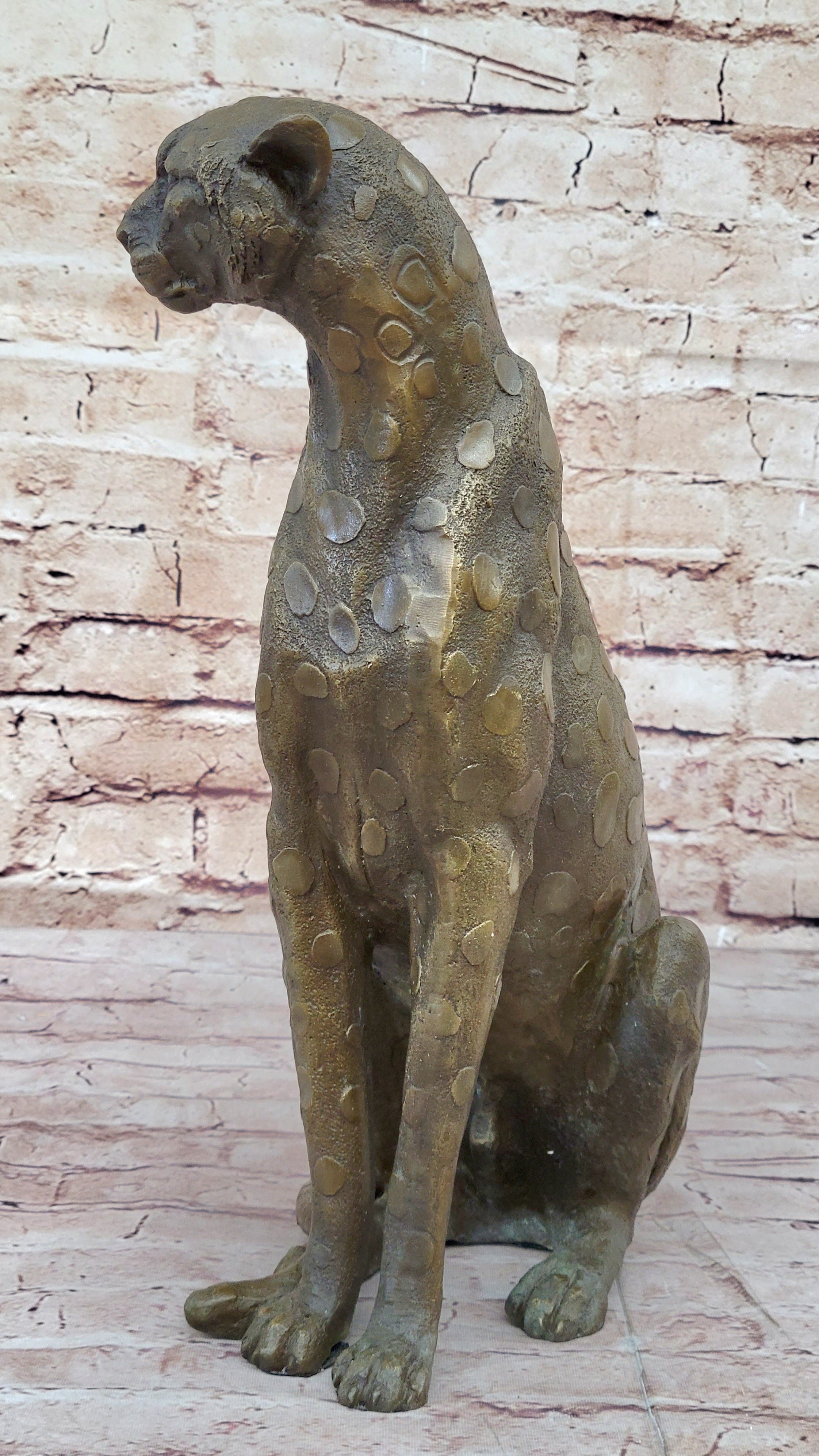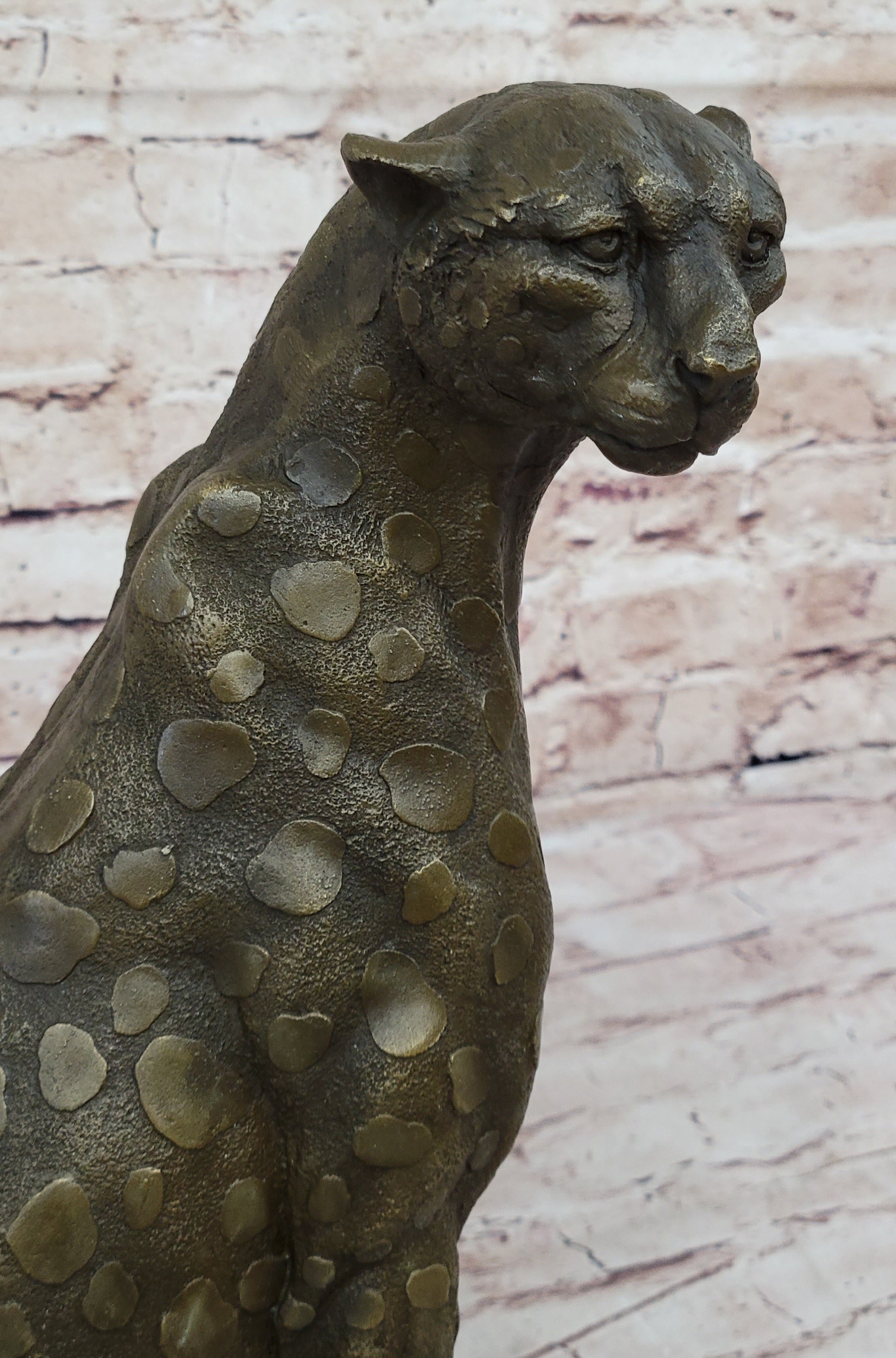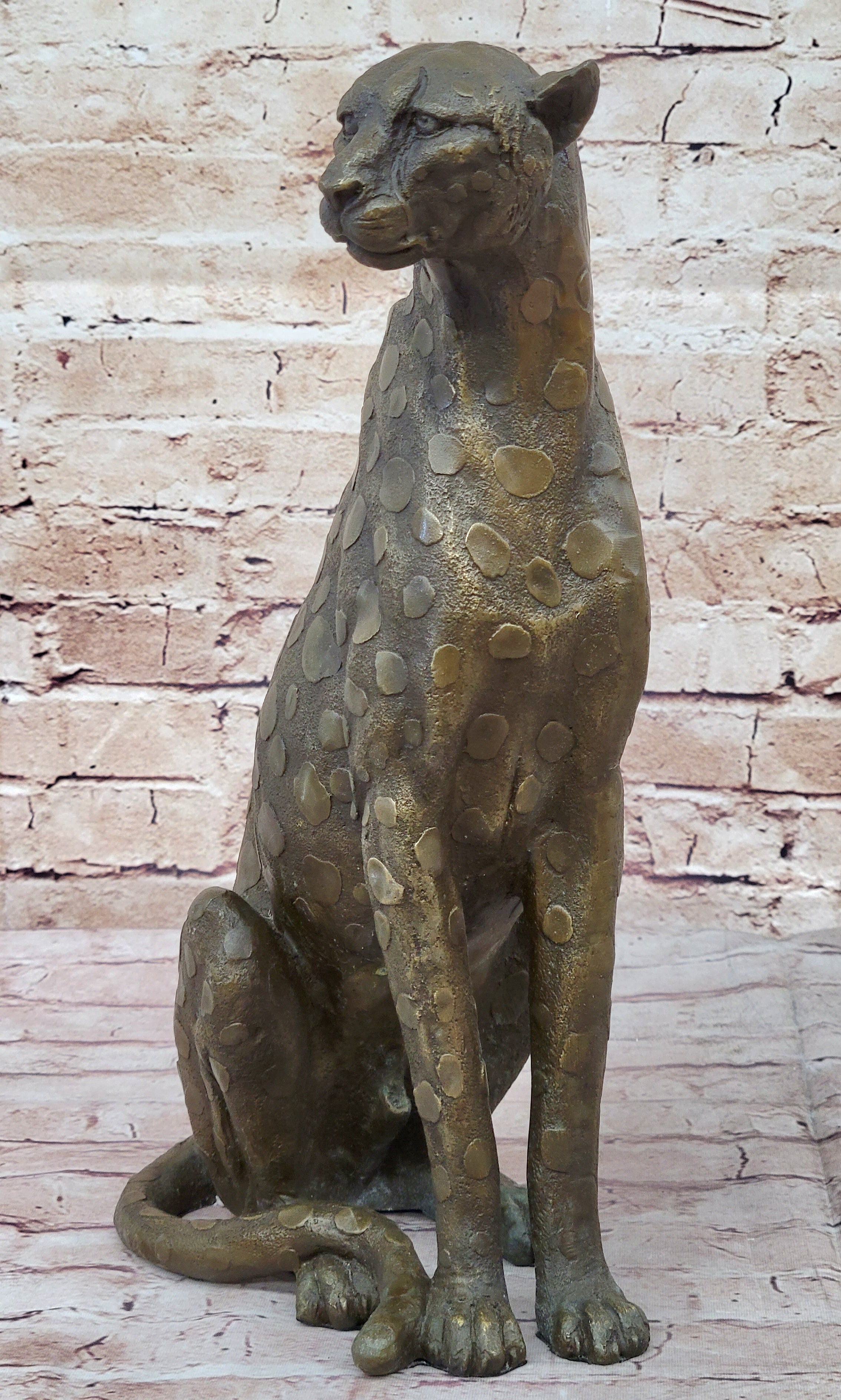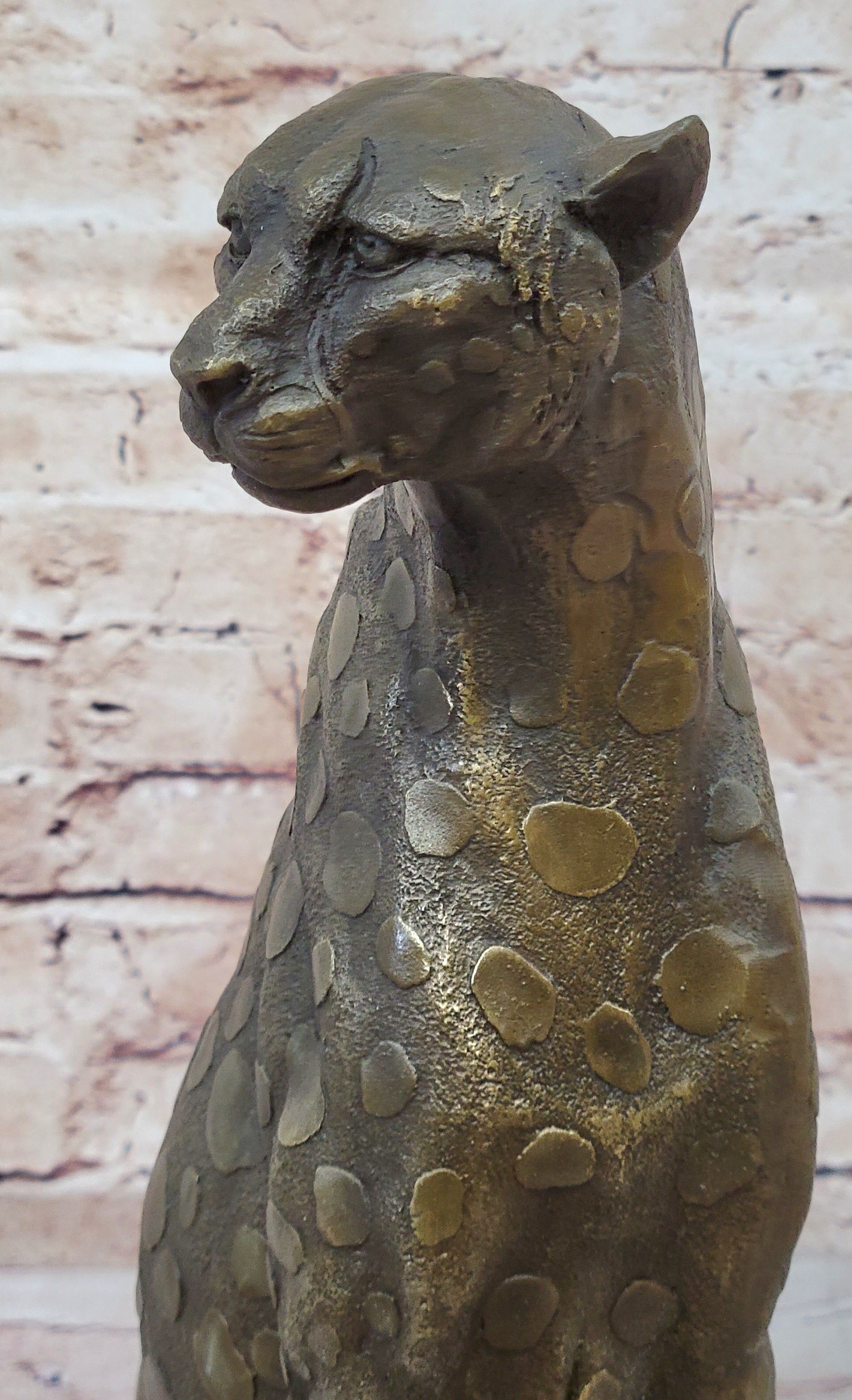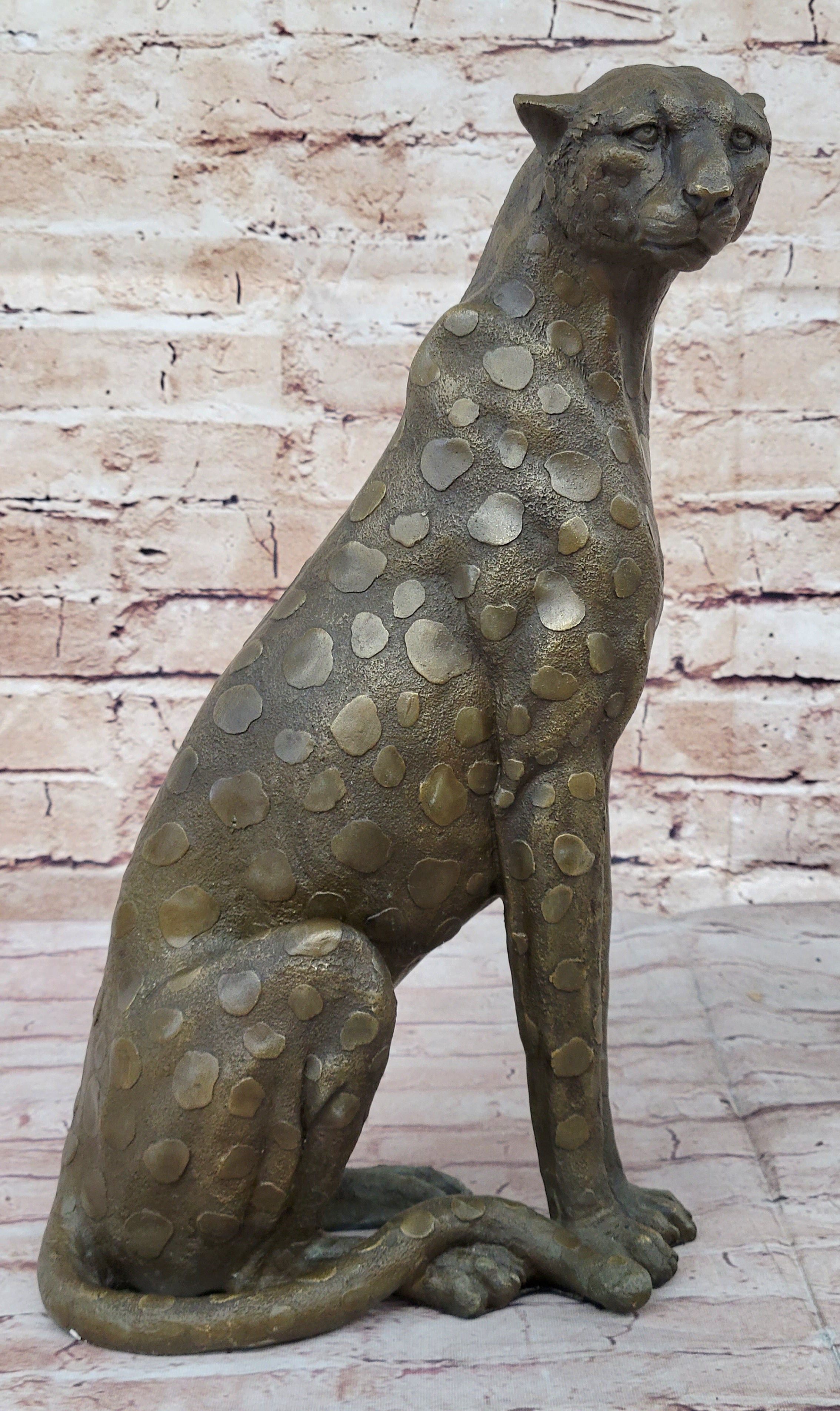 Hot Cast Bronze Guardian Cheetah Leopard Sculpture Statue Figure Decor