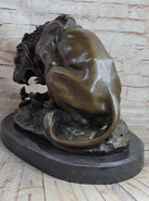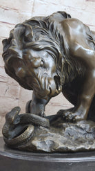 Lion vs. Snake Bronze Statue Sculpture Figure by Antoine Barye on Marble Base