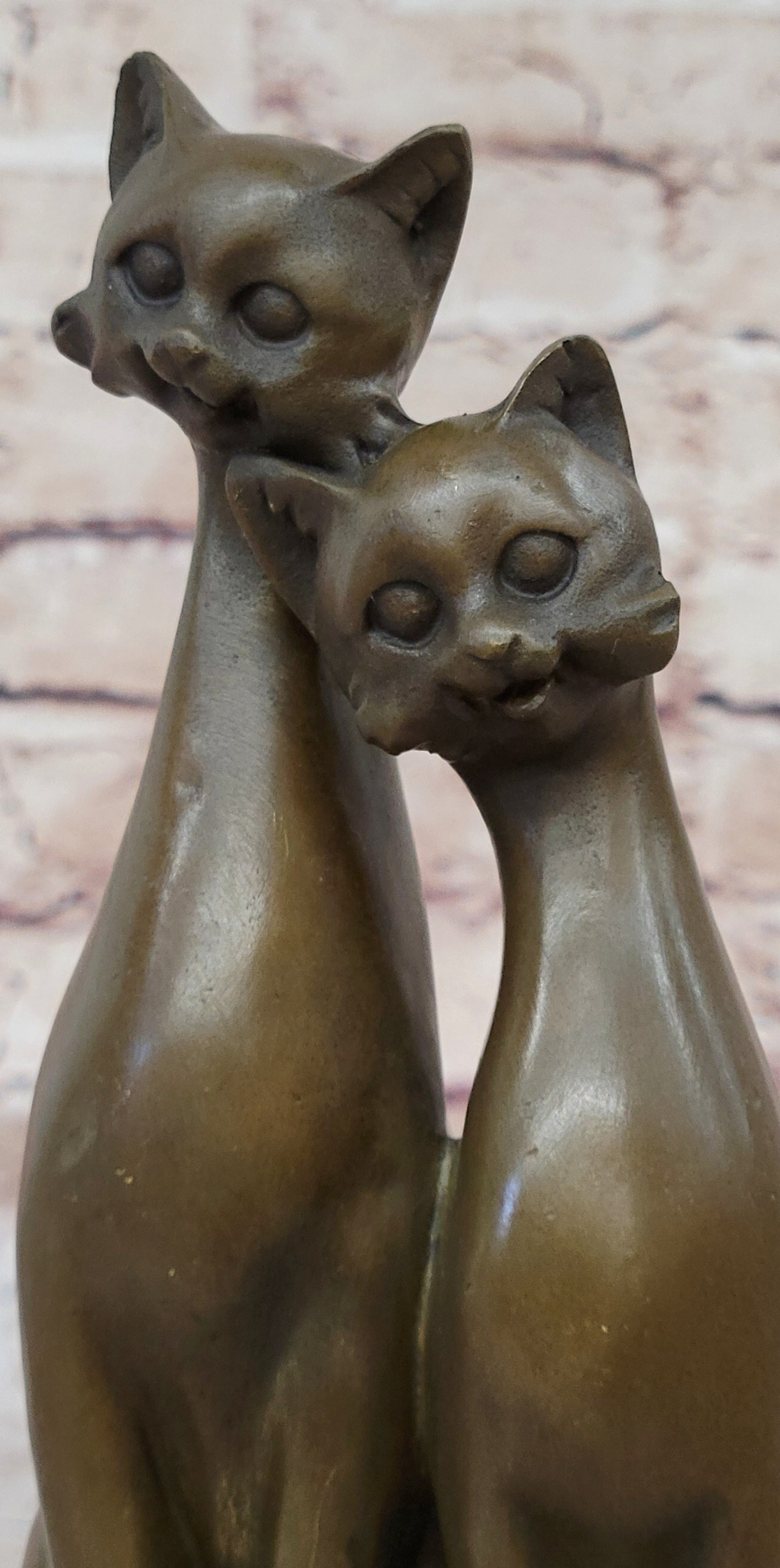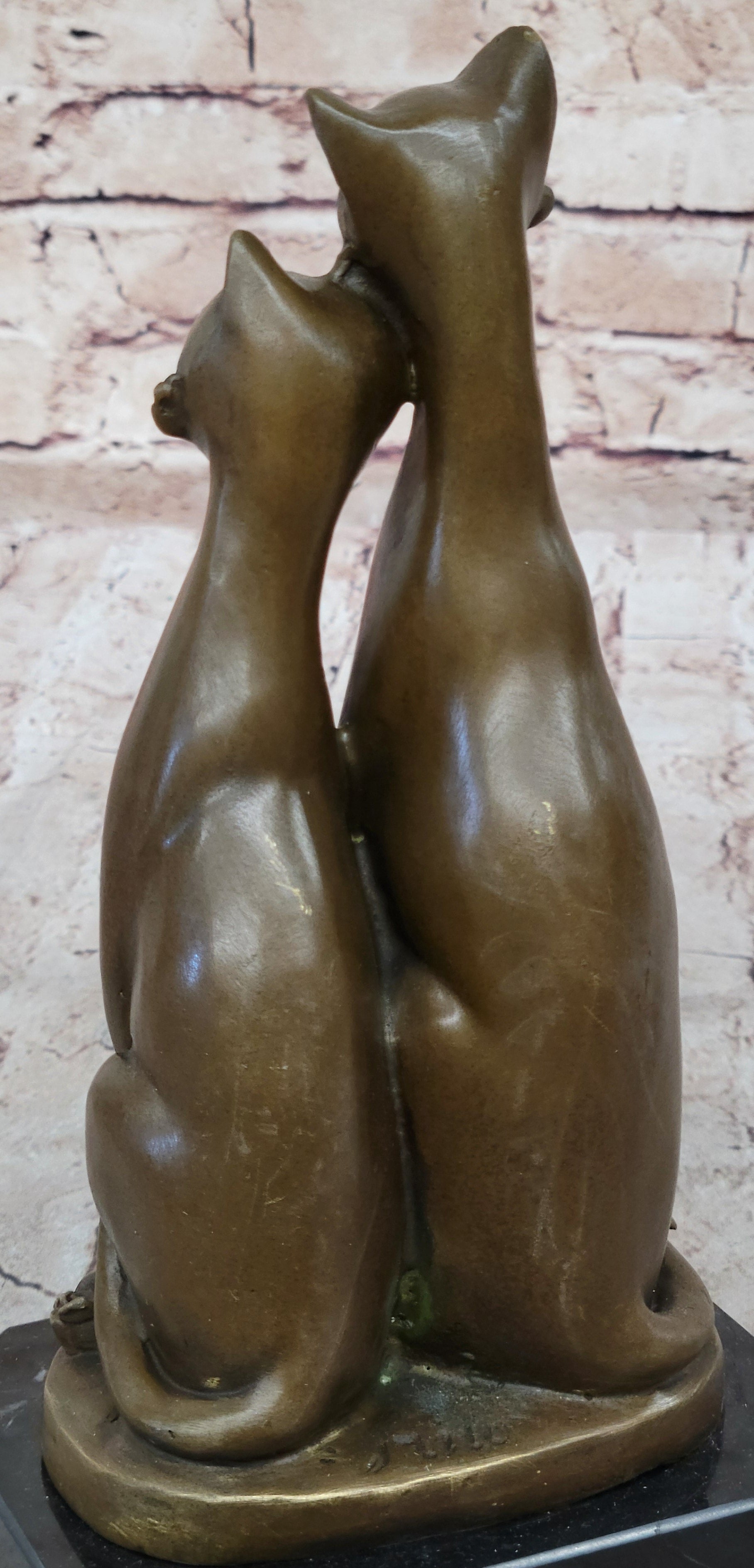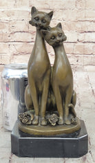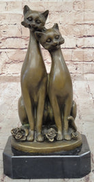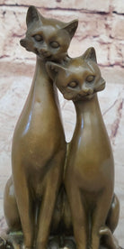 Pair of Slender Siamese Cats Kittens Bronze Statue Sculpture Figure 9" x 5"
