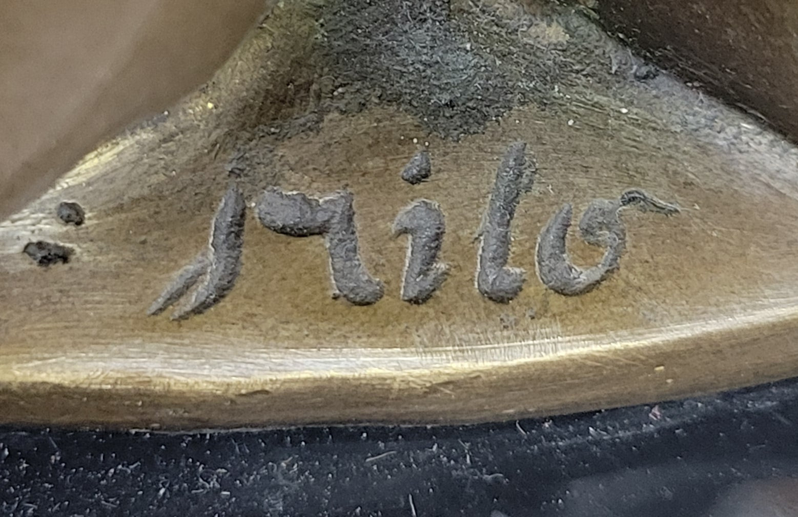 Crafted using the traditional lost-wax casting method, this bronze sculpture exemplifies the meticulous craftsmanship and attention to detail. The brown patina finish adds a timeless appeal and serves as a protective layer, ensuring the longevity of the artwork. Mounted on a sleek black marble base, this sculpture stands as a testament to the artist's talent and dedication. The signature of the renowned artist Milo further attests to its authenticity and artistic value, making it a cherished addition to any art collection or a delightful gift for cat lovers and art enthusiasts alike.Bronze Dimensions with Marble Base: Height 9" X Width 5"