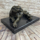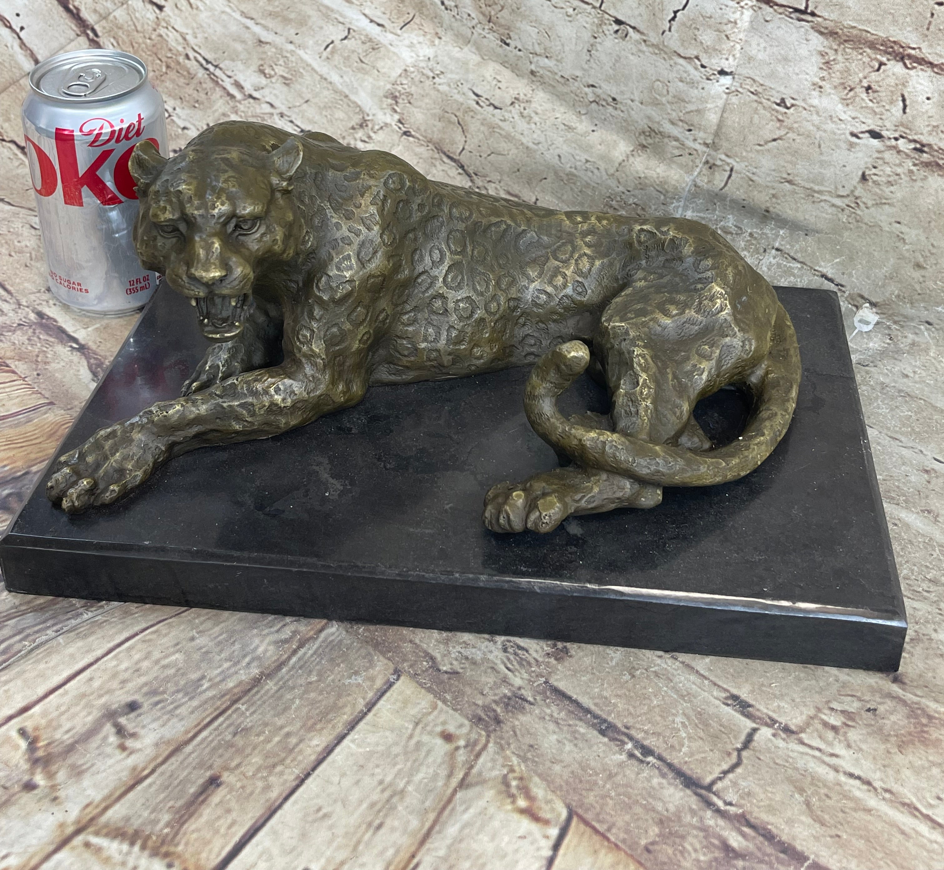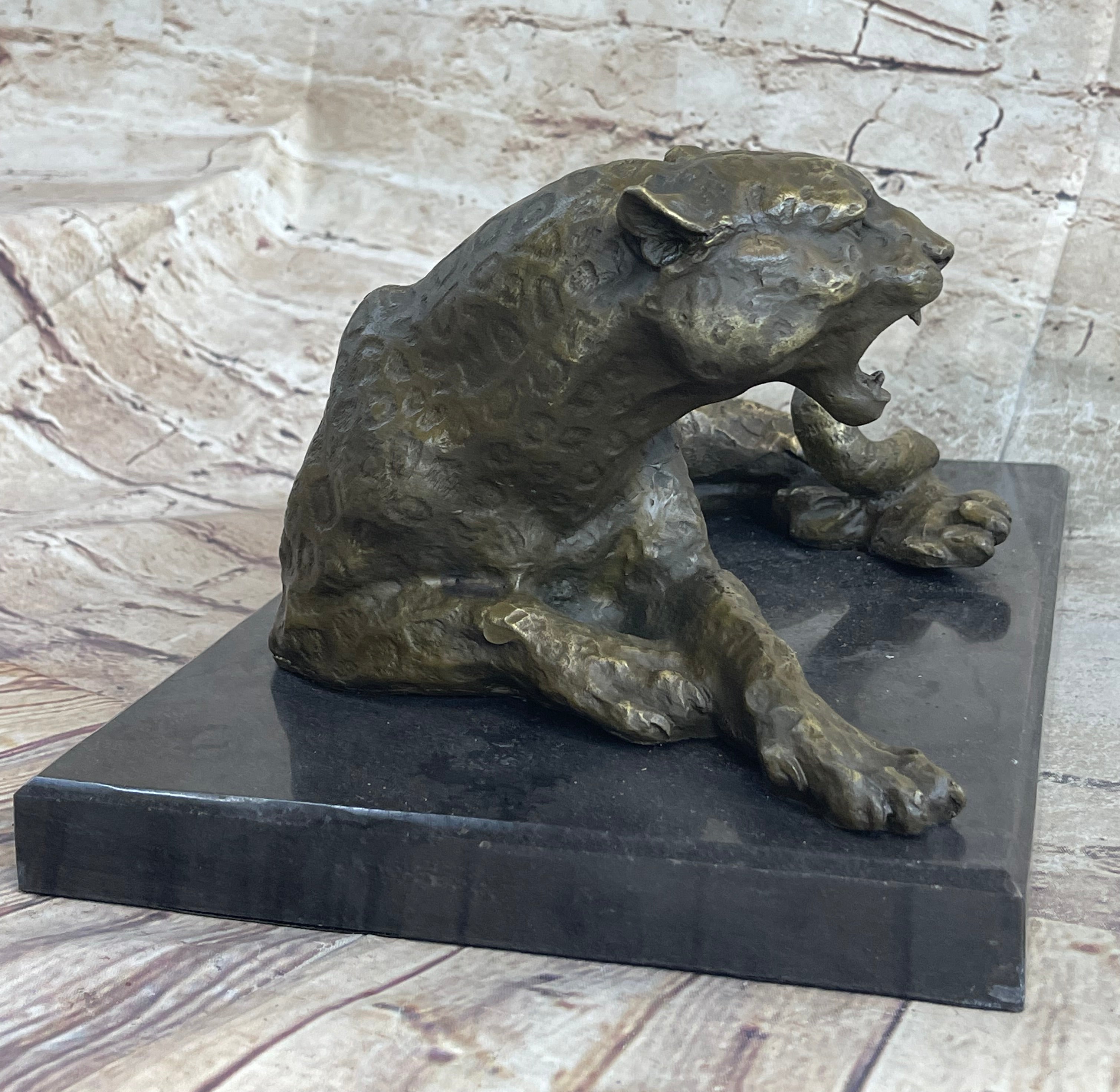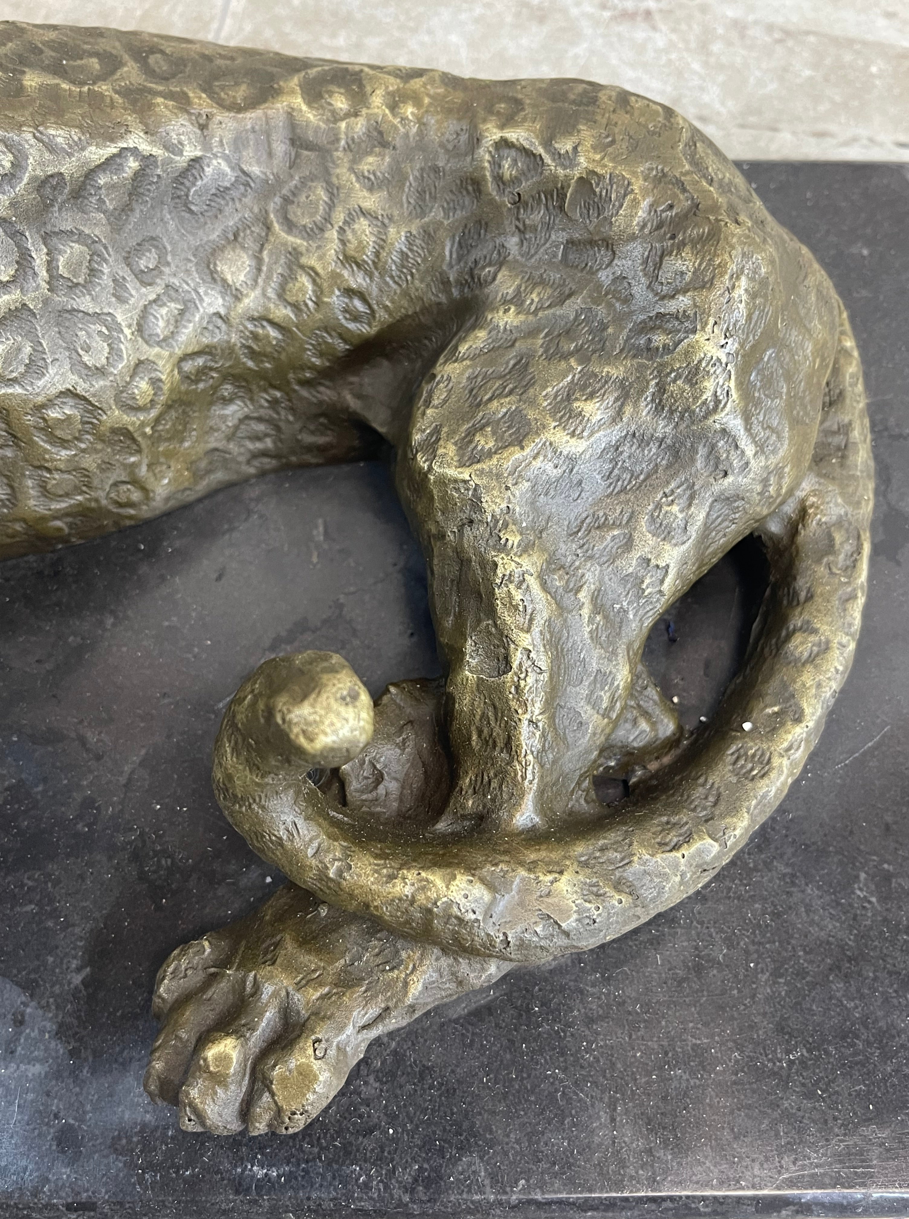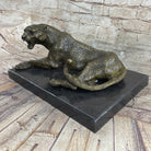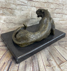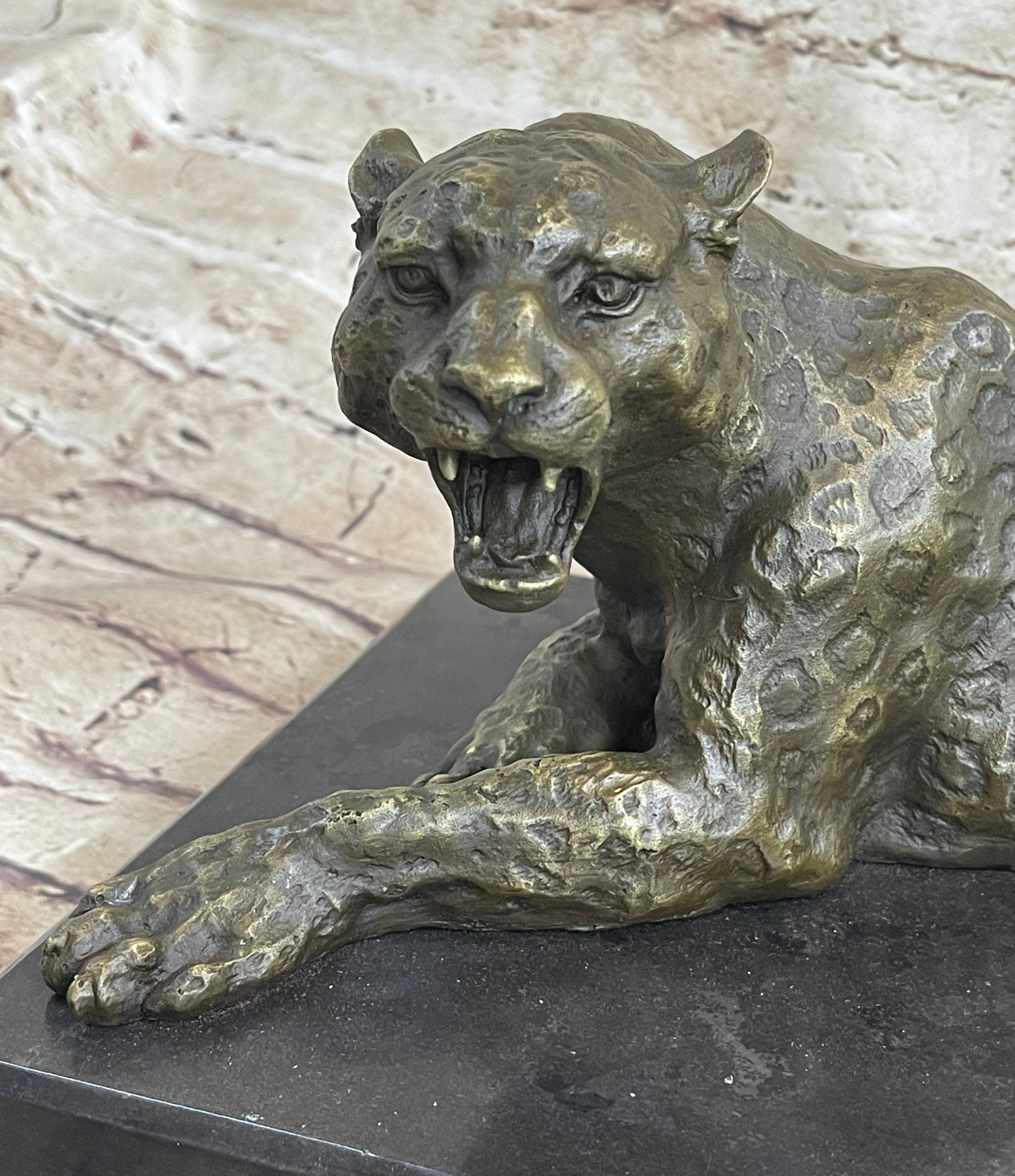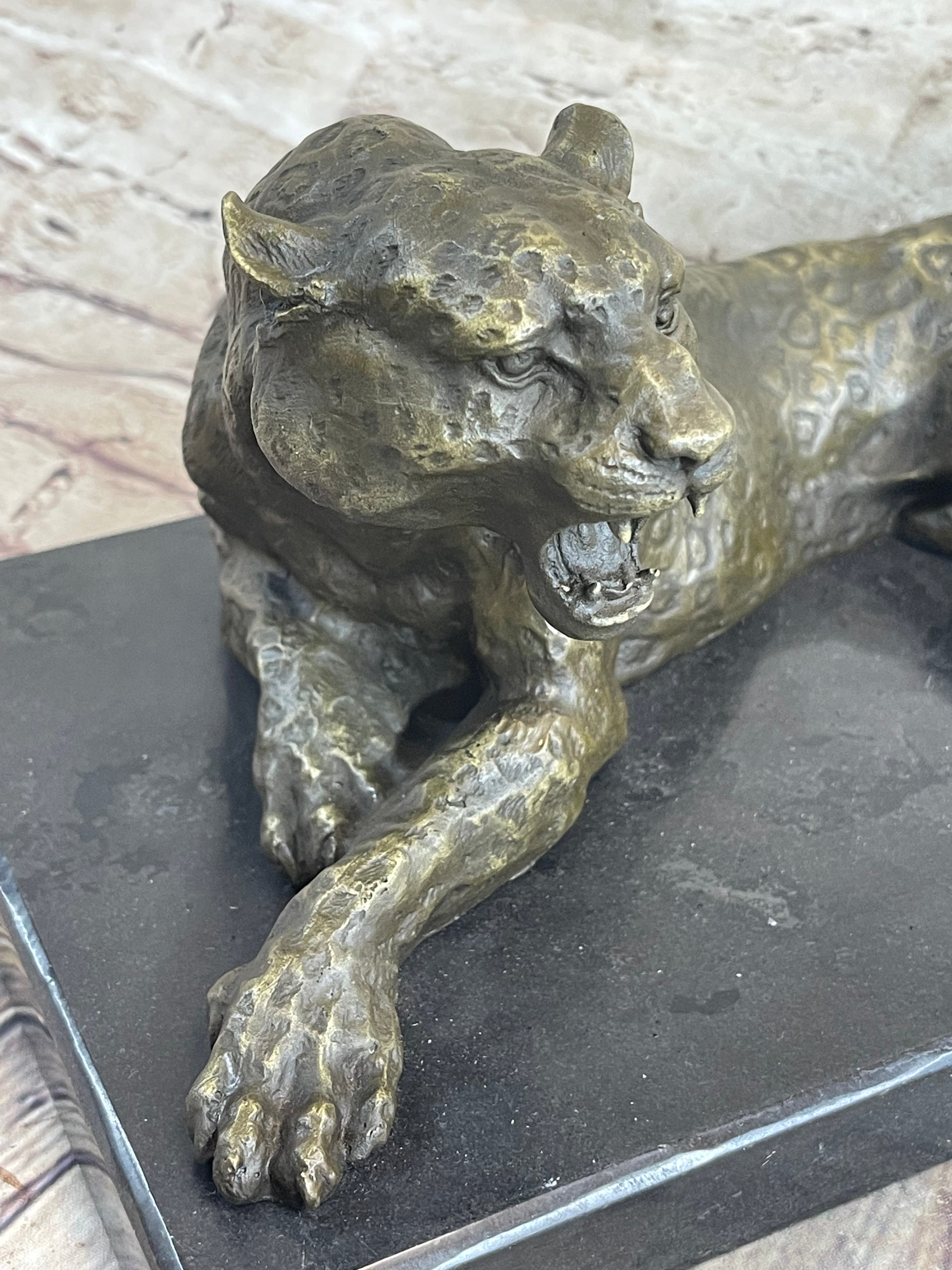 Signed Original Large Leopard Jaguar Bronze Sculpture Marble Figurine Statue Art