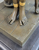 Handcrafted using the ancient "Lost Wax Method" and crafted from solid bronze with a two-tone brown and gold patina, this sculpture showcases meticulous attention to detail and craftsmanship. Signed by the artist Cesaro, it is a timeless masterpiece that captures the essence of ancient Egyptian royalty, making it a captivating addition to any collection or space.Bronze Dimensions with Marble Base: Height 22" X Width 12"