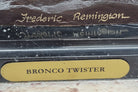 Unleash the untamed spirit of the Wild West with the captivating bronze sculpture "Bronze Bronco Twister" by Remington. This extraordinary piece of Western art figurine depicts a fearless cowboy in the midst of a thrilling bronco ride, showcasing the raw power and exhilaration of the rodeo.