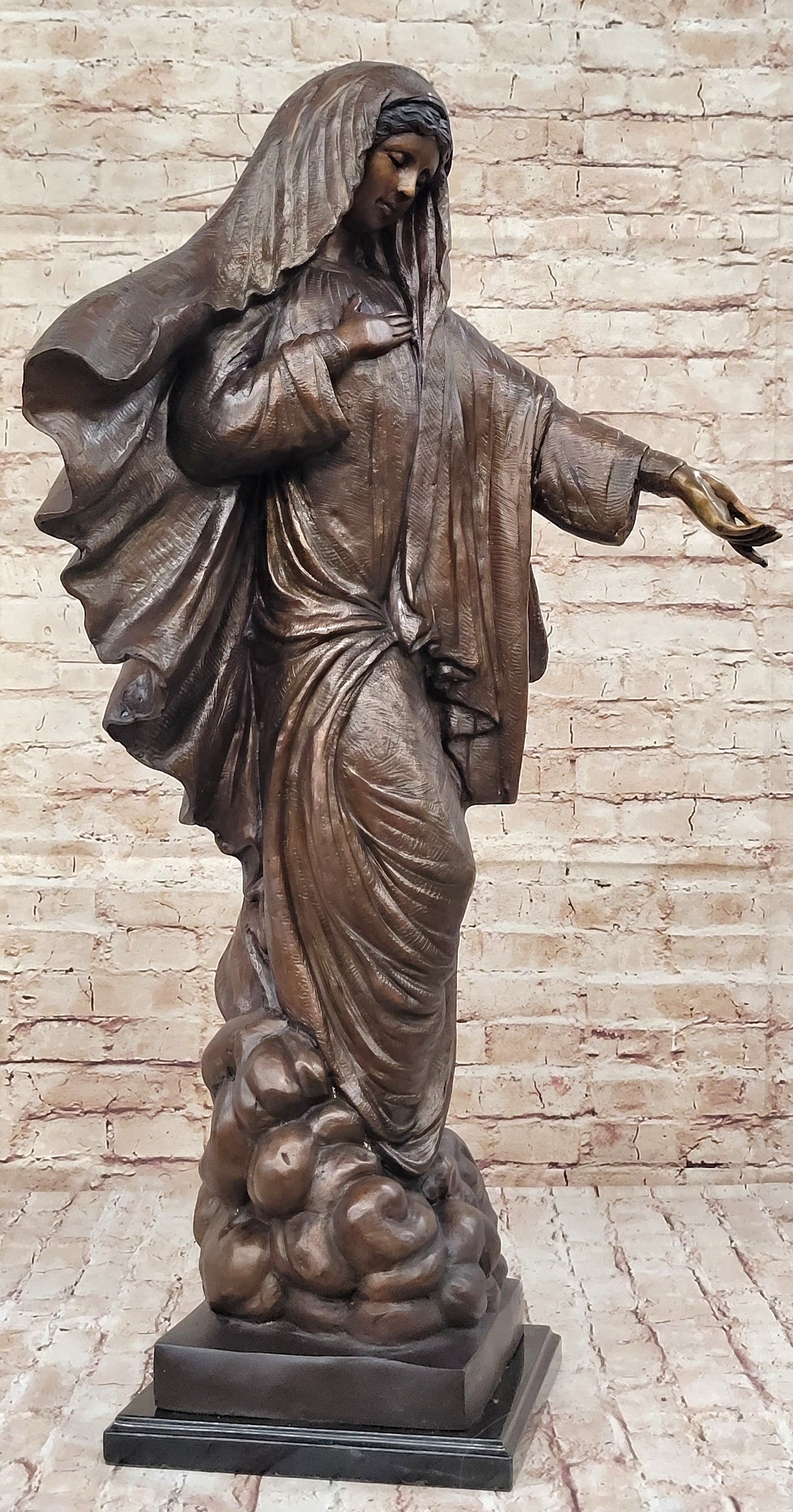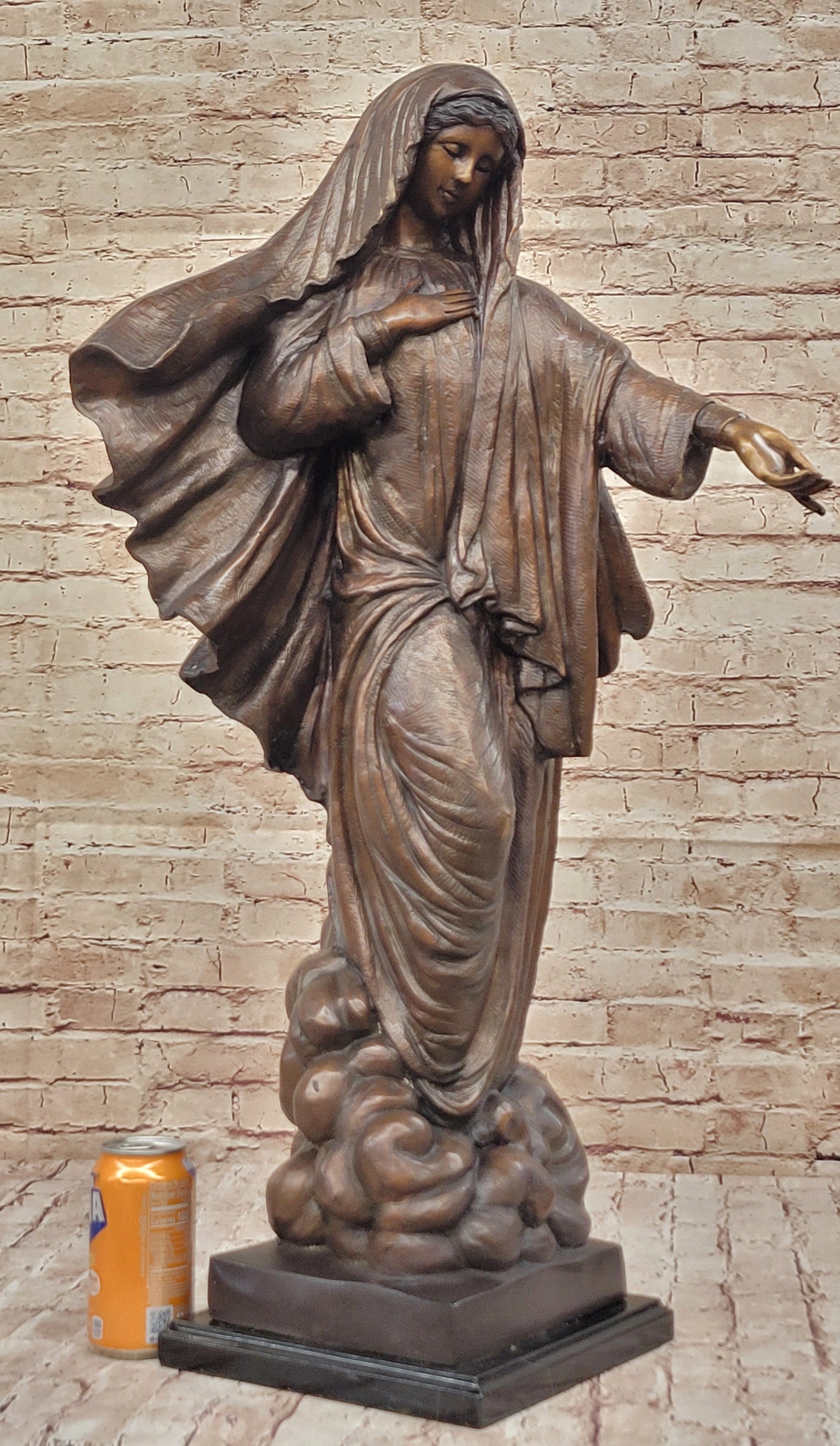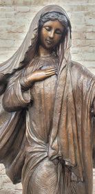 Virgin Saint Mary w/ Outstretched Hand Bronze Statue Sculpture Figure 33" x 18"