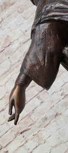 Crafted using the renowned "Lost Wax Method," this sculpture boasts intricate details and a two-toned brown patina finish. It stands gracefully on a marble base, making it a versatile addition to any mantle, bookshelf, or dresser. Whether as a personal keepsake or a thoughtful gift for a person of faith, this sculpture embodies the timeless beauty and spiritual significance of the Virgin Mary, signed by the artist Giancarlo.Bronze Dimensions with Marble Base: Height 33" X Width 18"
