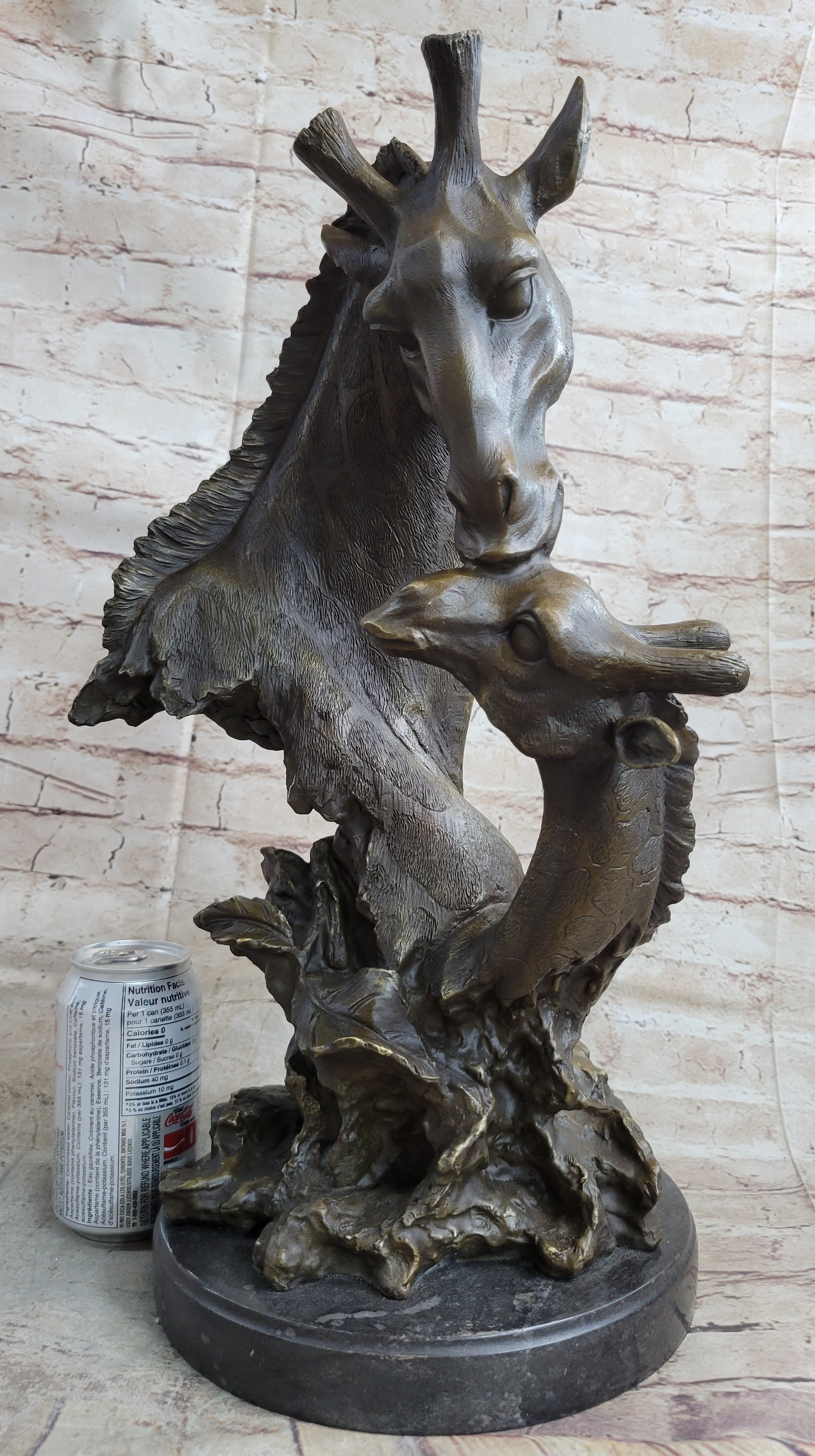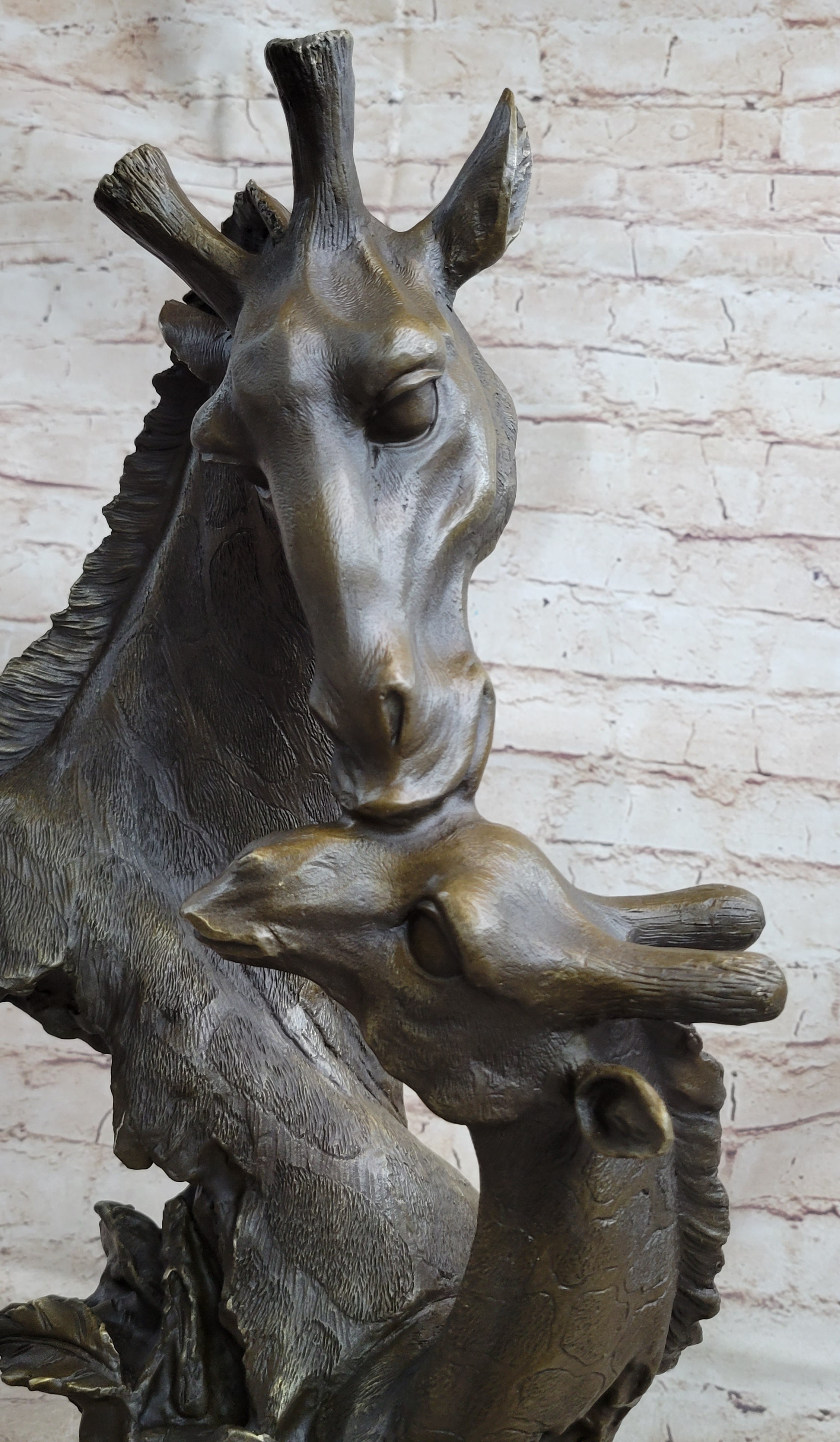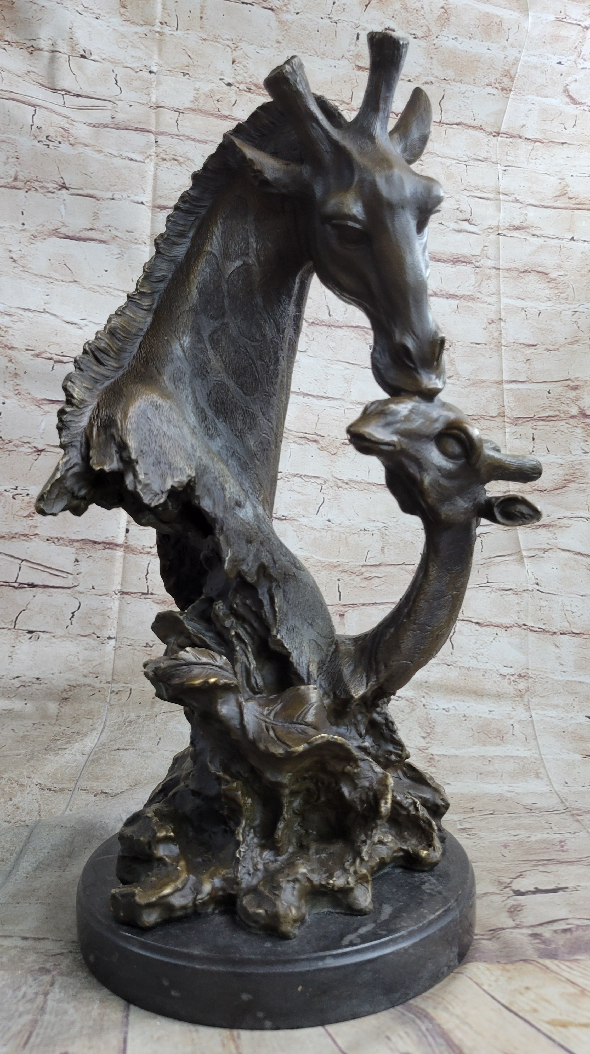 Mother and Baby Giraffe Bronze Bust Sculpture Statue Figure Decor 18" x 9"