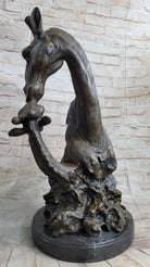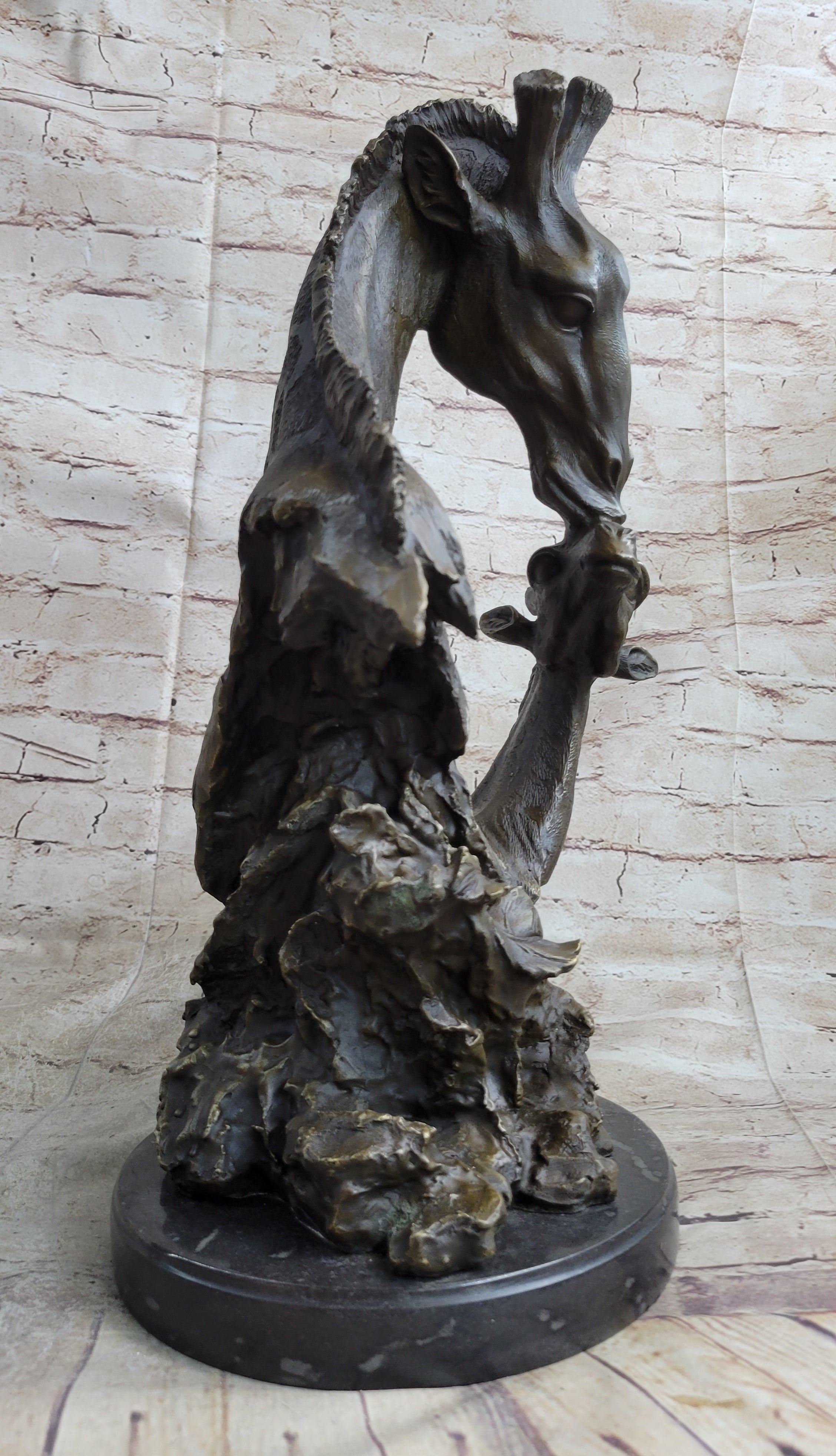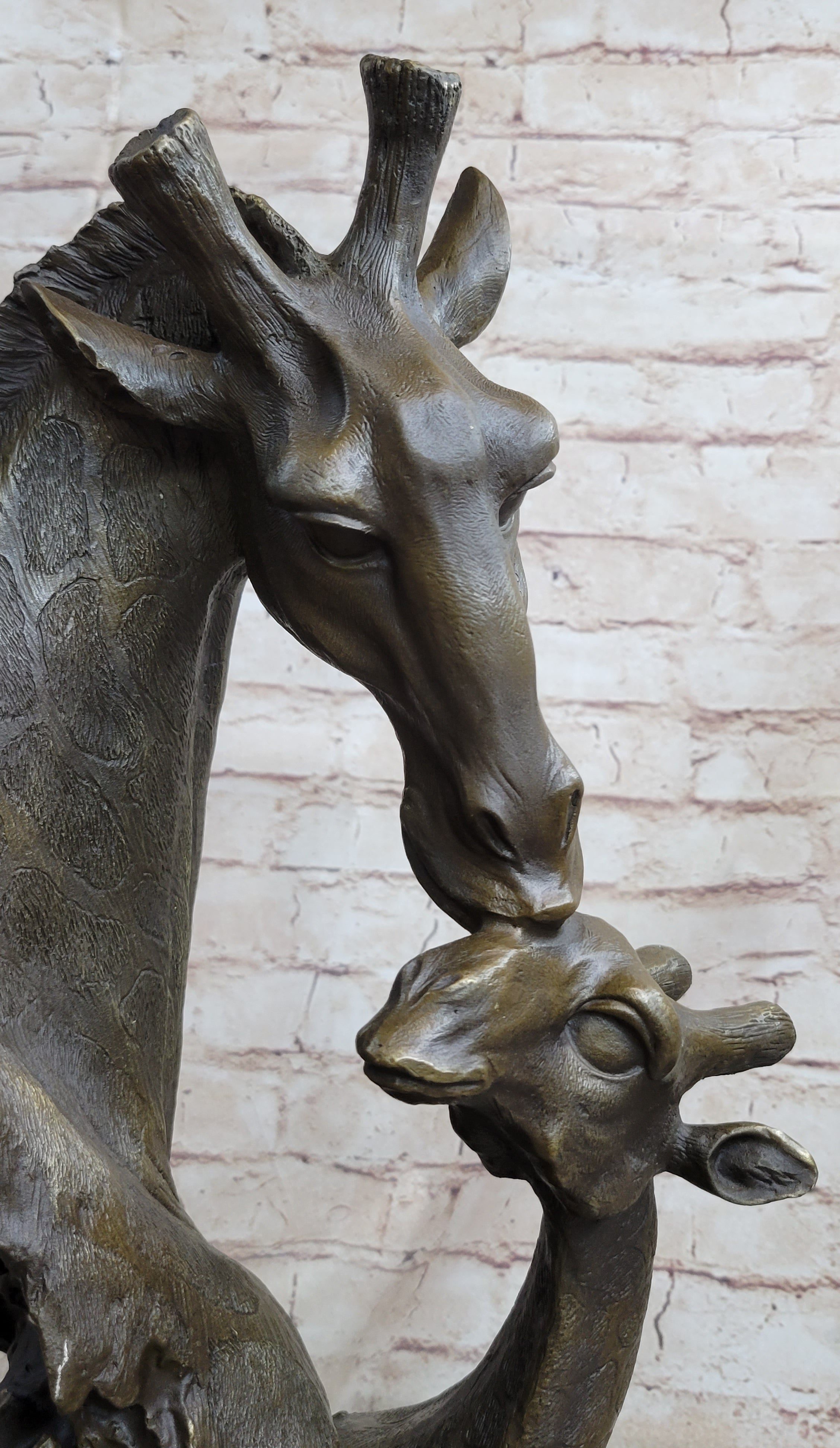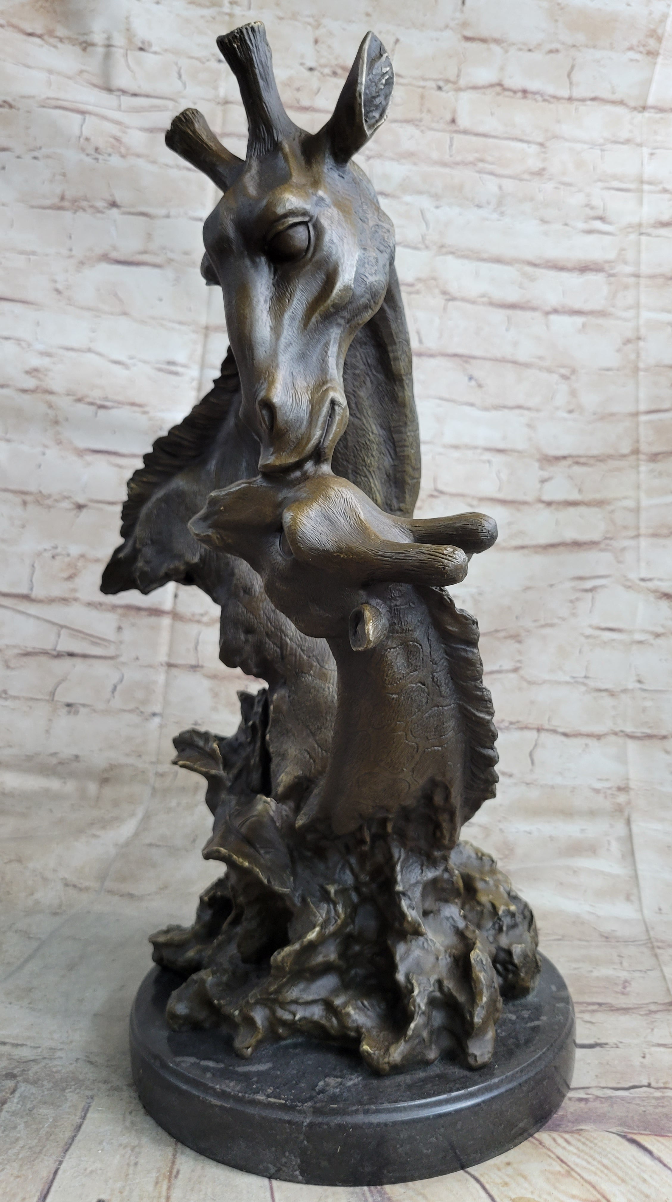 Mother and Baby Giraffe Bronze Bust Sculpture Statue Figure Decor 18" x 9"