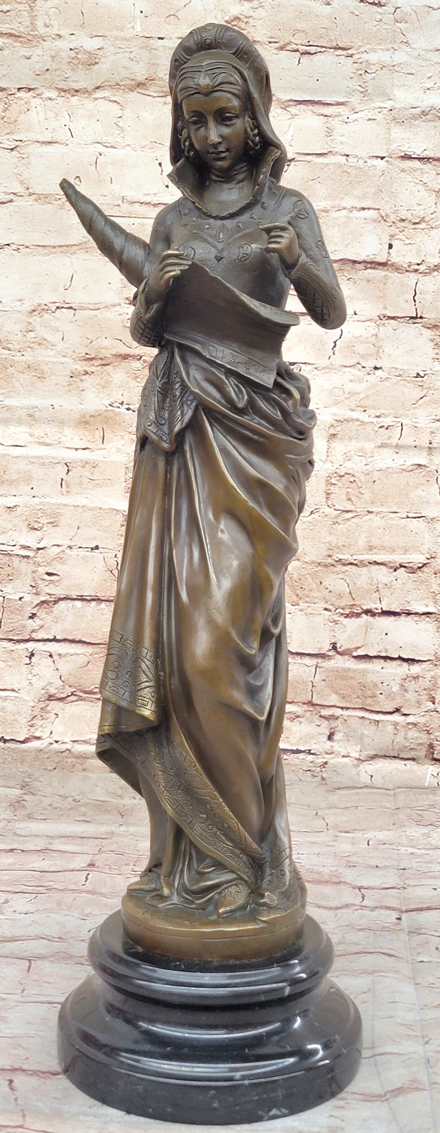 Bronze Fortuna Roman Goddess of Luck Lady Tykhe Statue Figurine on Marble Base