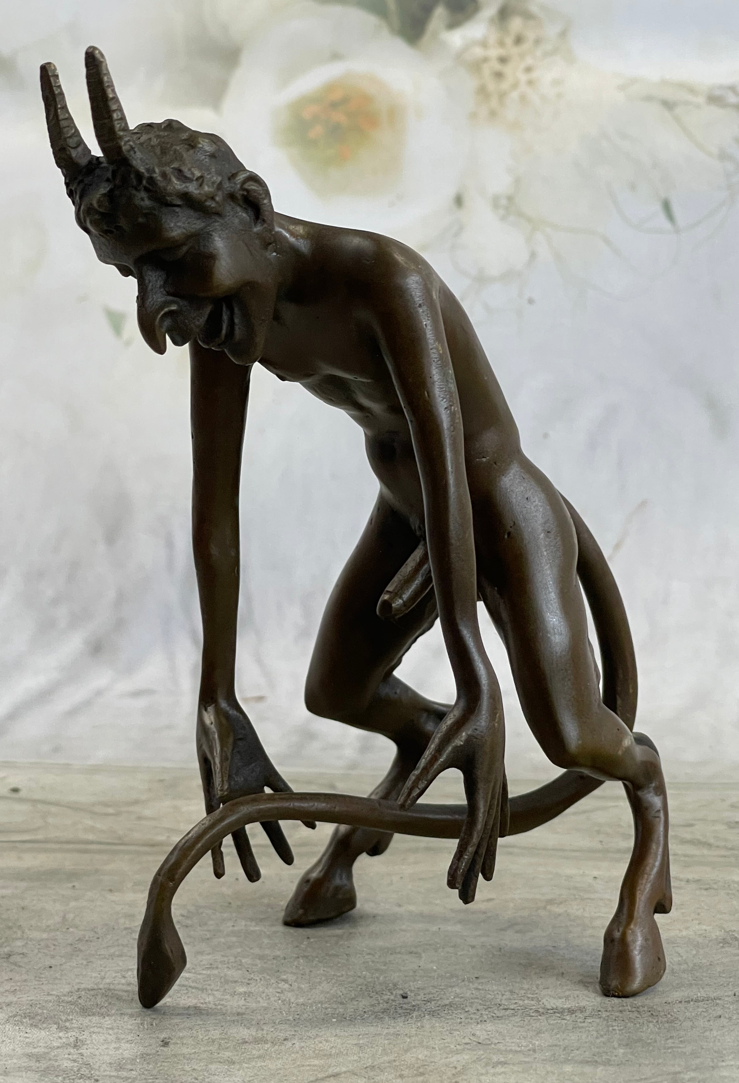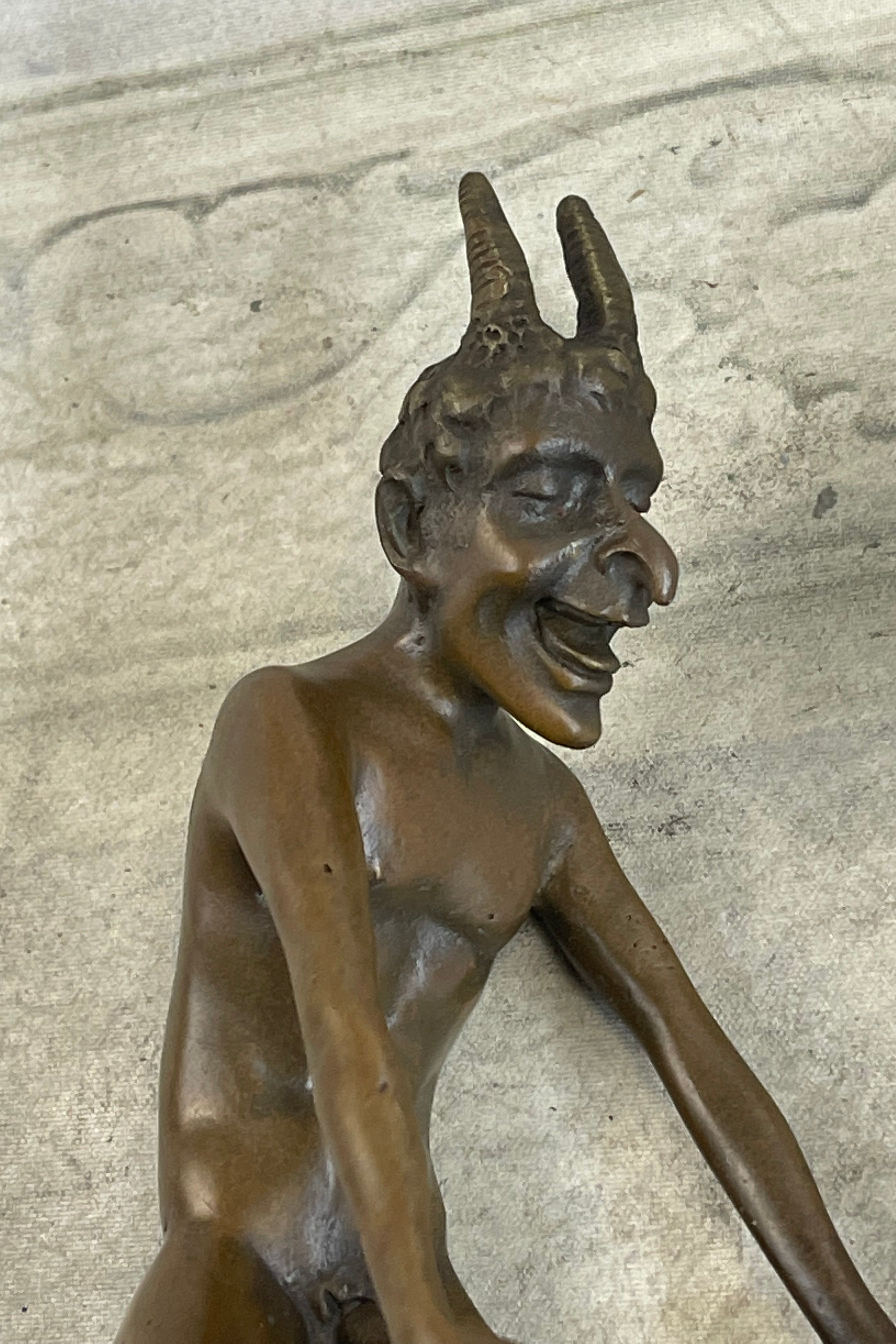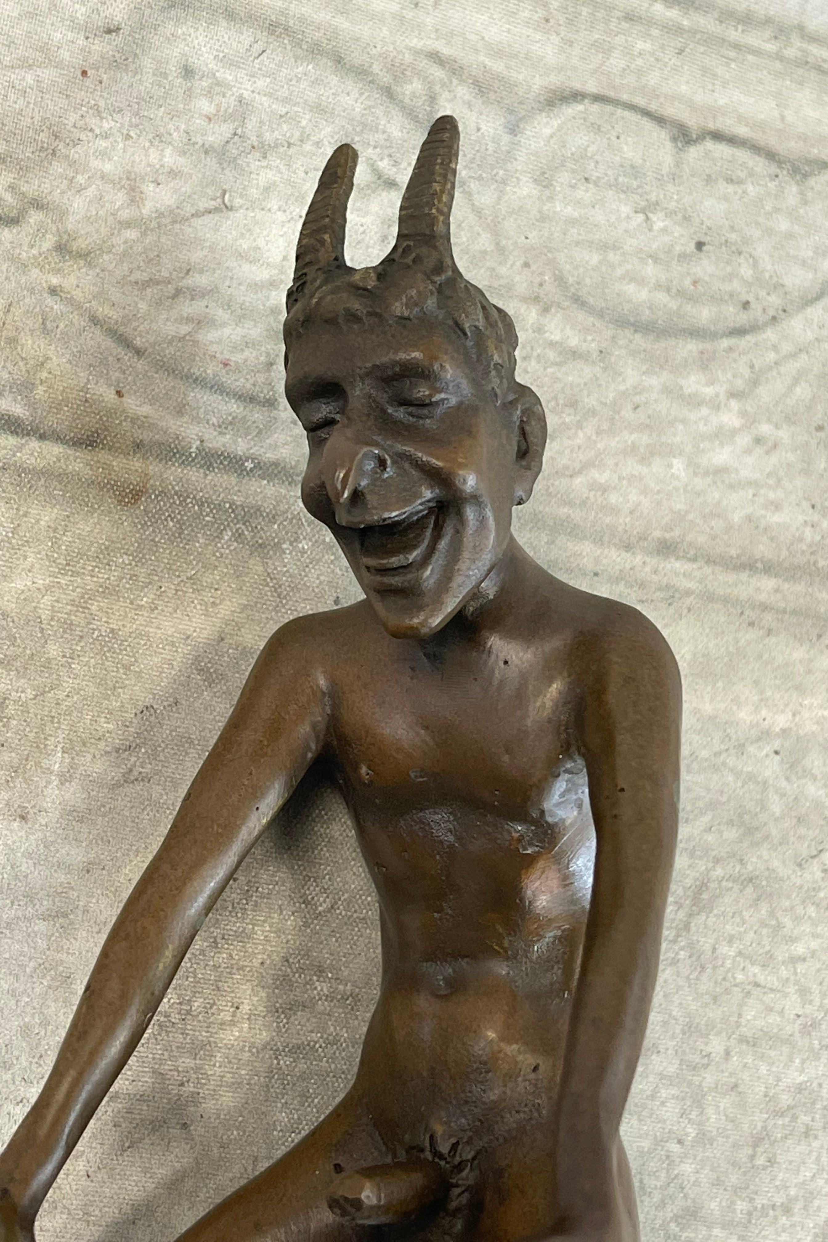 Horned Satyr Demon Devil w/ Erect Penis Bronze Figure Figurine Sculpture 6" x 5"