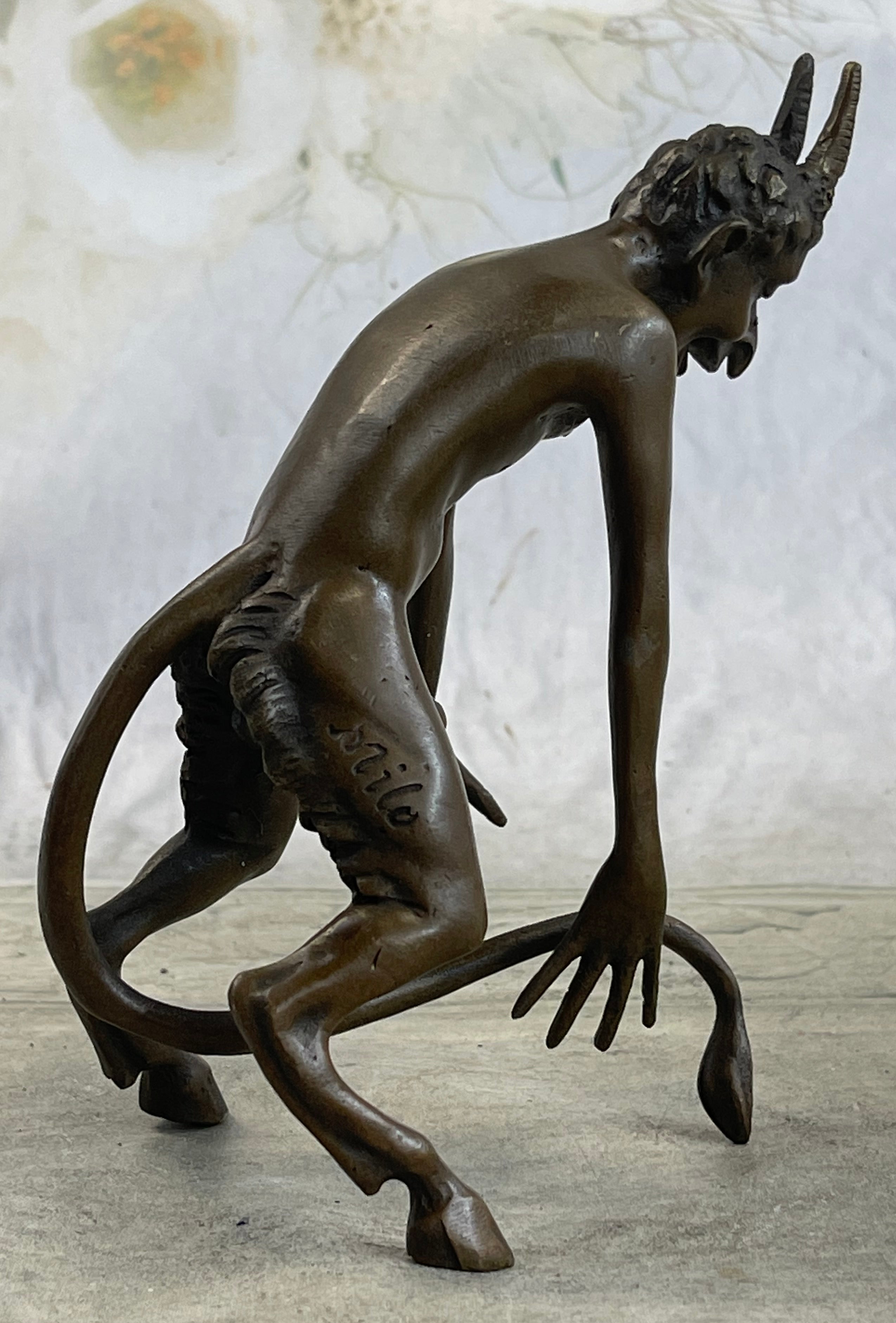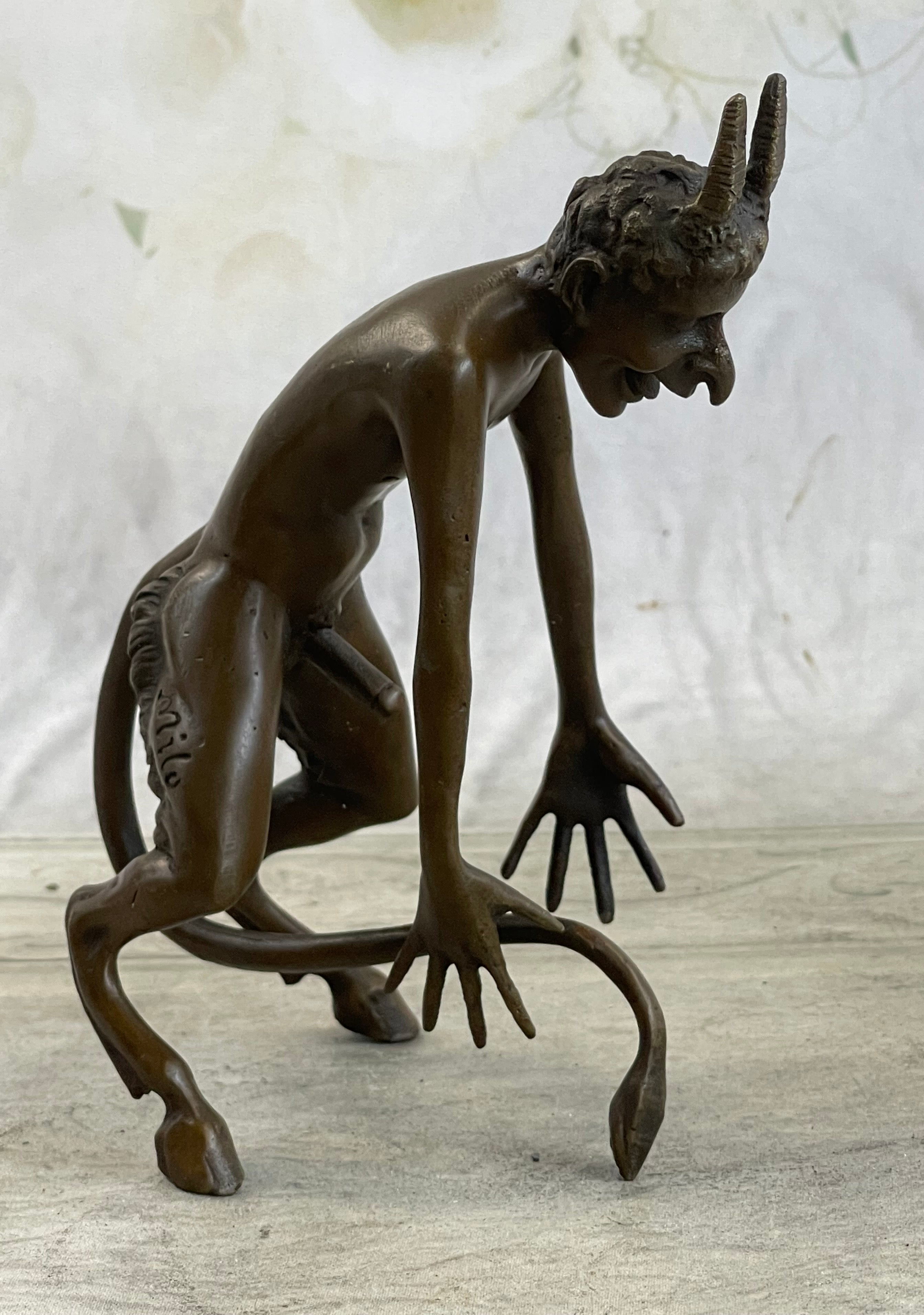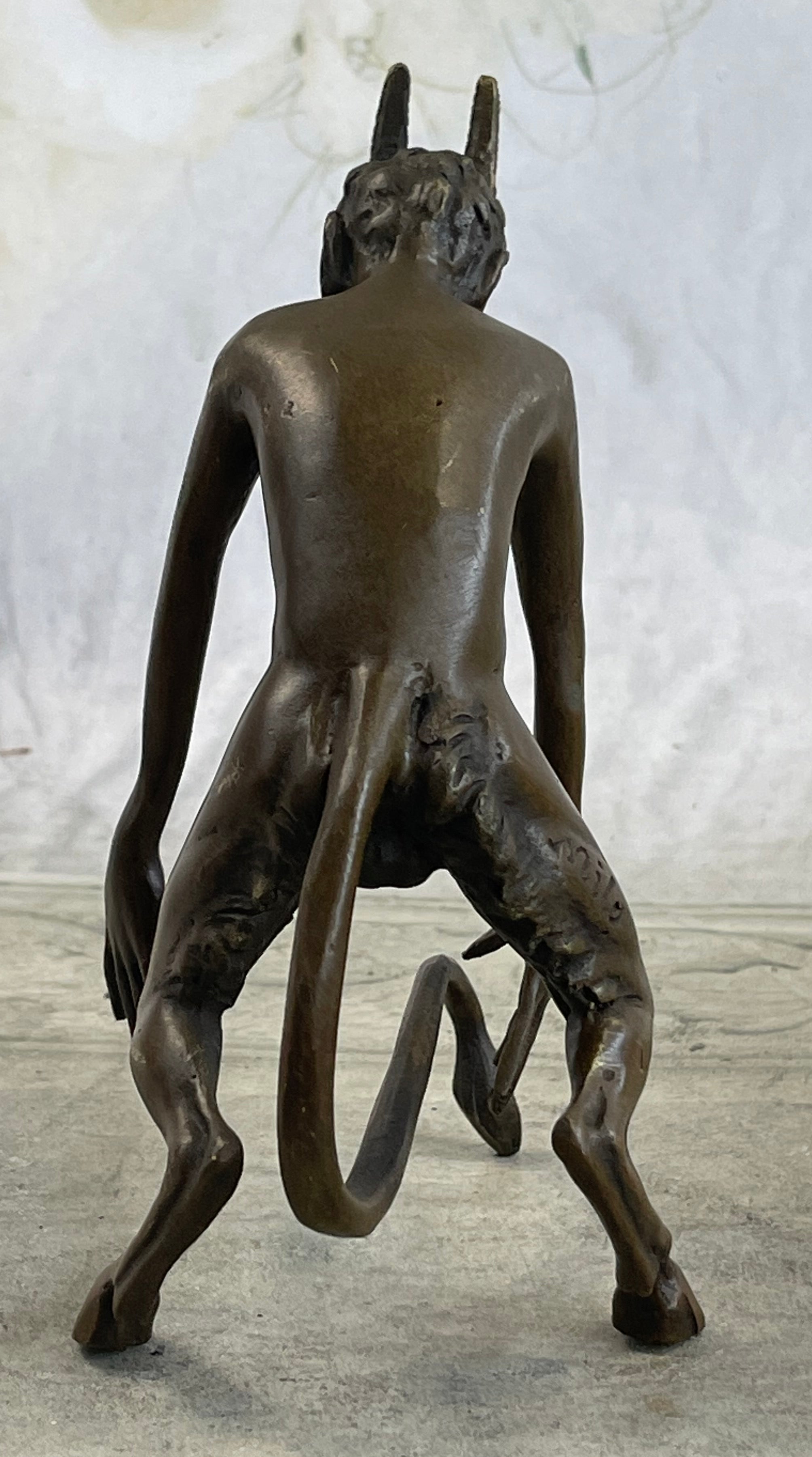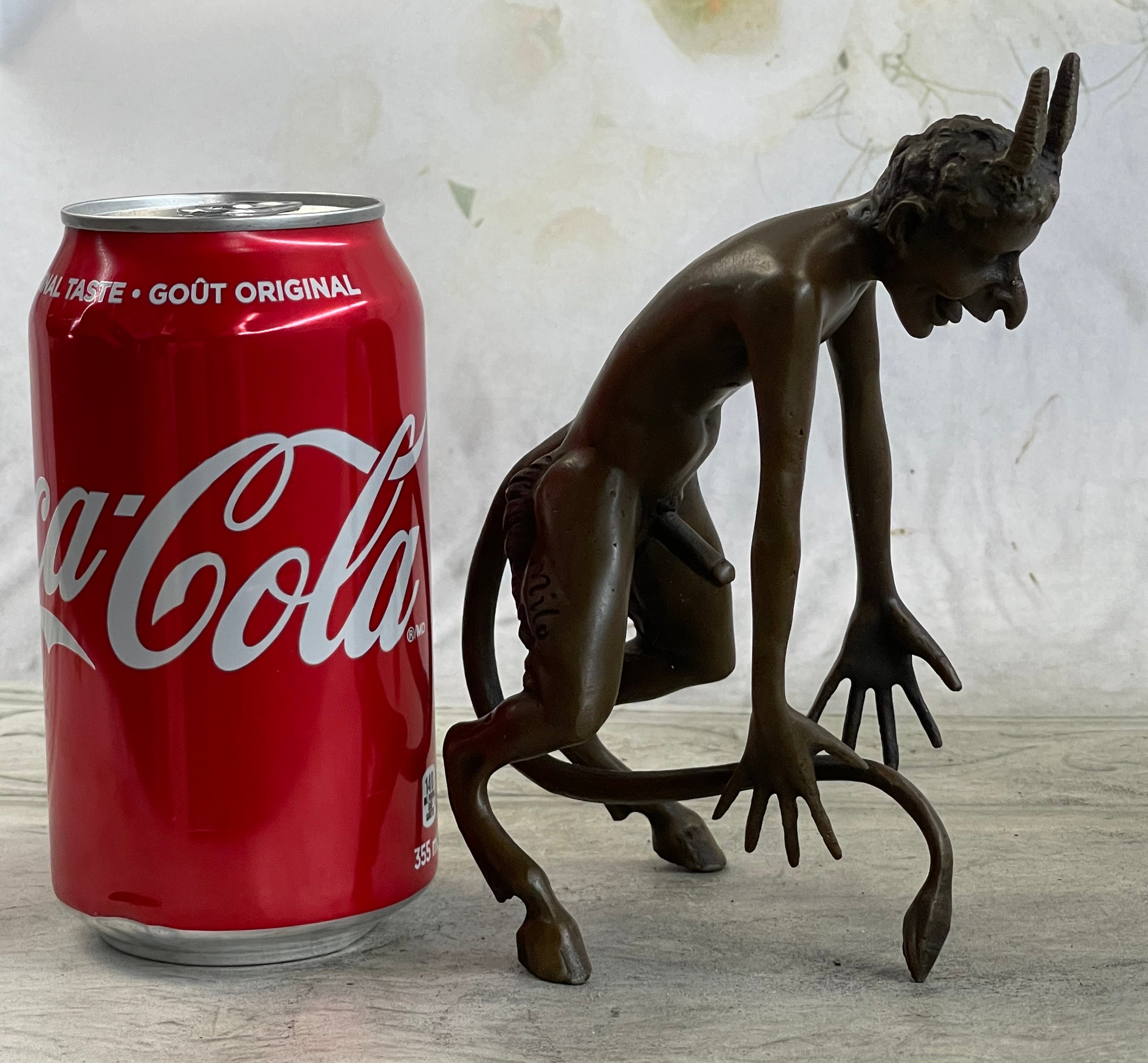 Horned Satyr Demon Devil w/ Erect Penis Bronze Figure Figurine Sculpture 6" x 5"