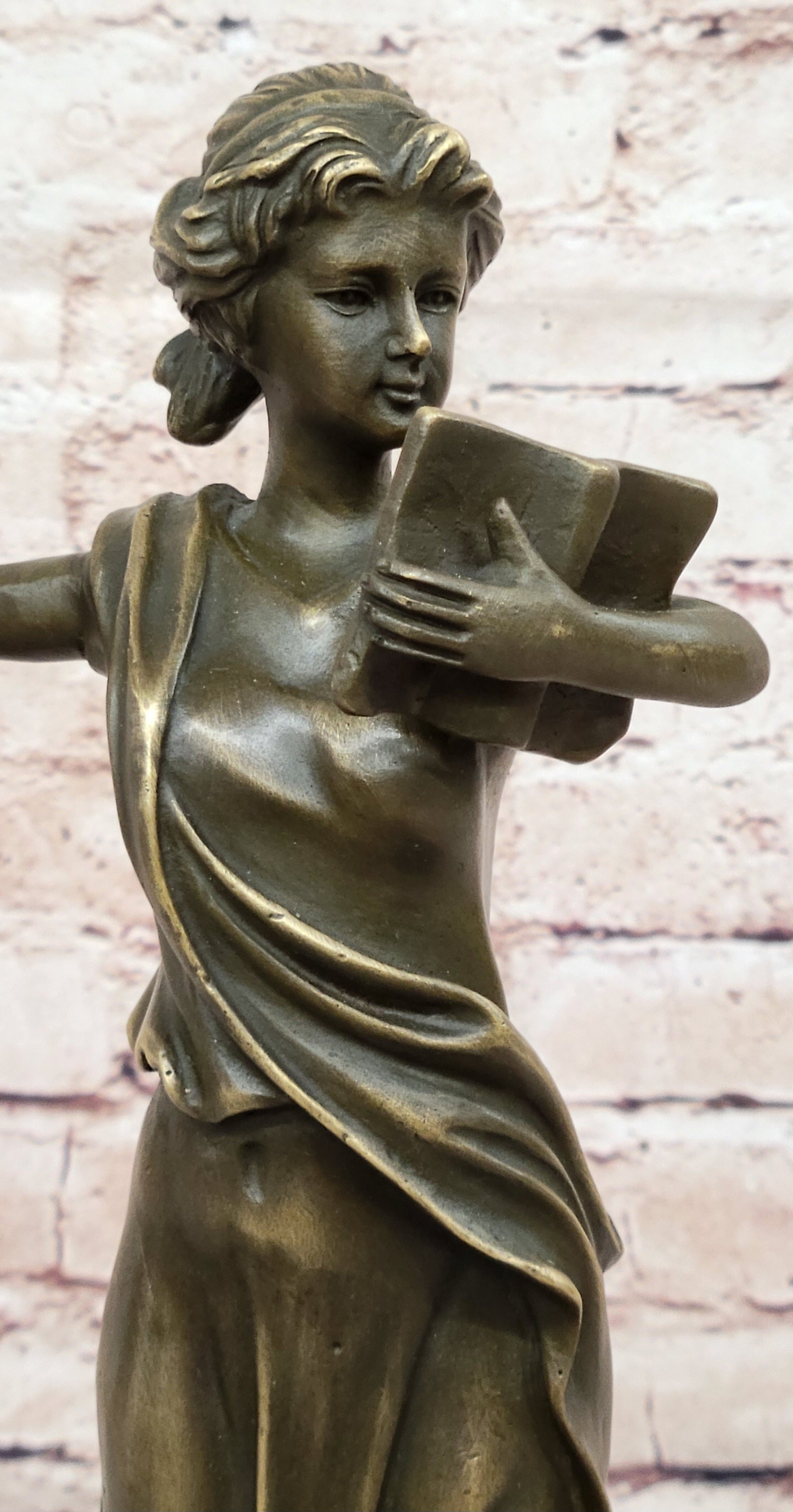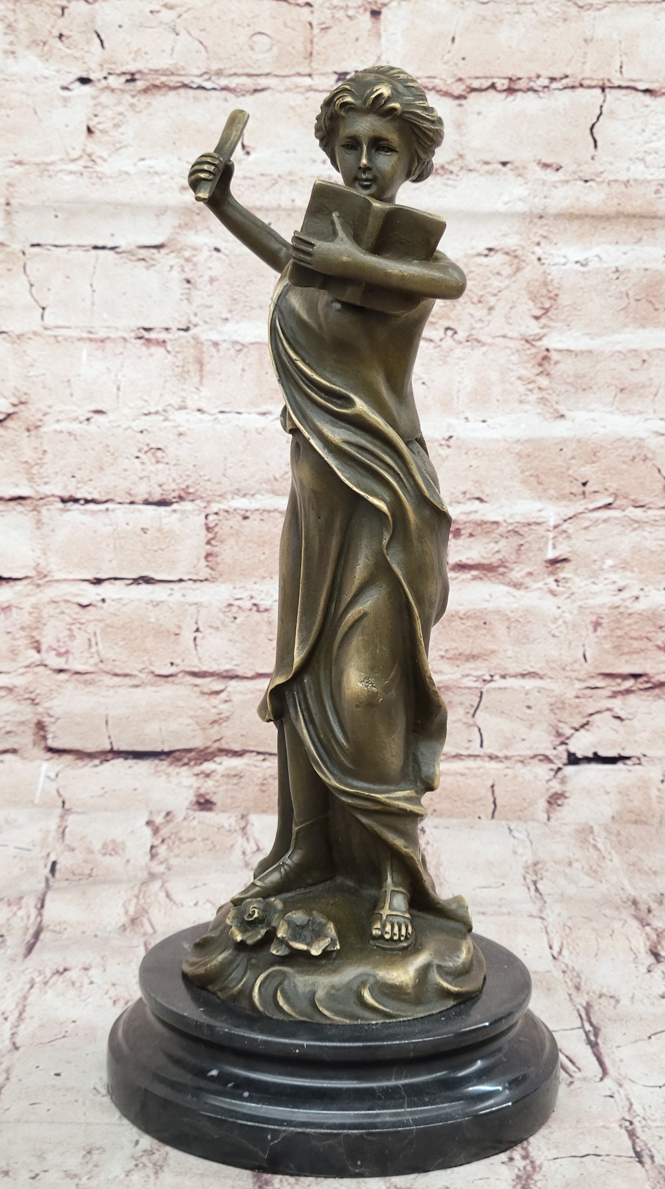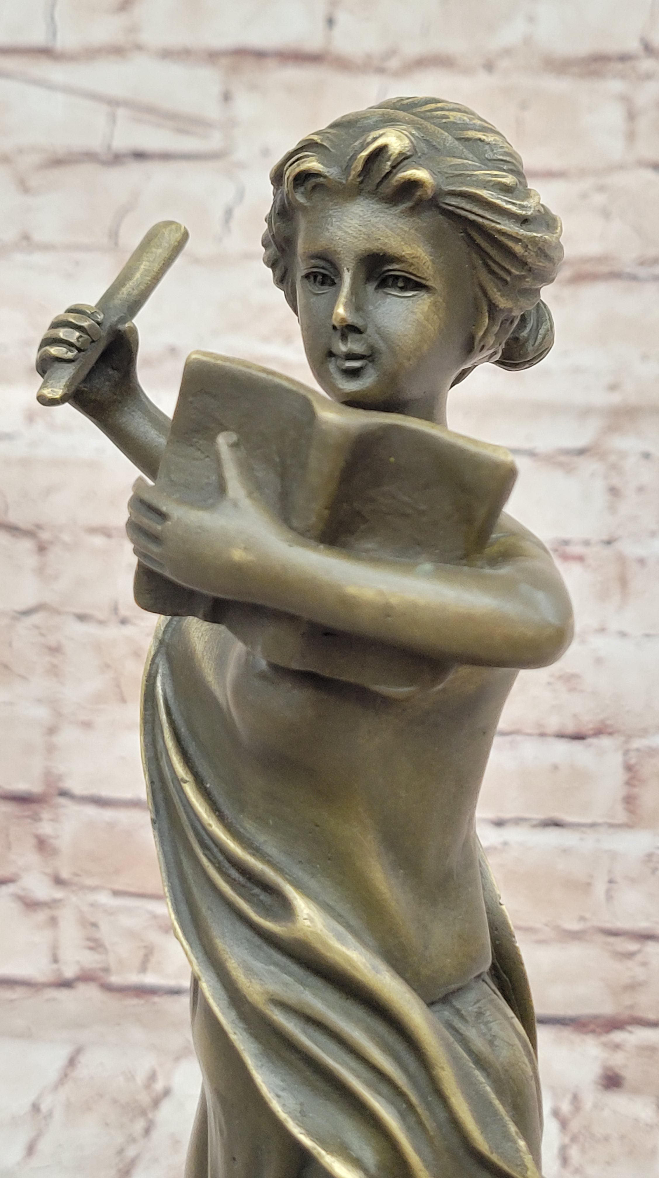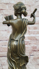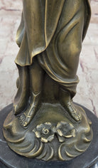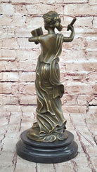 Bronze Athena Goddess of Wisdom and War Sculpture by Jean Patoue This exquisite bronze sculpture represents Athena, the revered Greek goddess of wisdom, war, and heroic endeavor. Embodying intellect, courage, and justice, Athena's poised stance and detailed craftsmanship capture the essence of her divine authority. Handcrafted using the hot cast bronze method, this piece showcases impeccable detail, from Athena's flowing garments to her powerful yet graceful demeanor. Hand-painted with a rich patina, the sculpture brings to life the legendary goddess, making it a striking focal point in any space. Mounted on a sleek black marble base and signed by artist Jean Patoue, this collectible sculpture adds a timeless touch of classical elegance and strength. Ideal for art lovers and mythology enthusiasts alike, it is a piece that celebrates both history and artistic mastery.