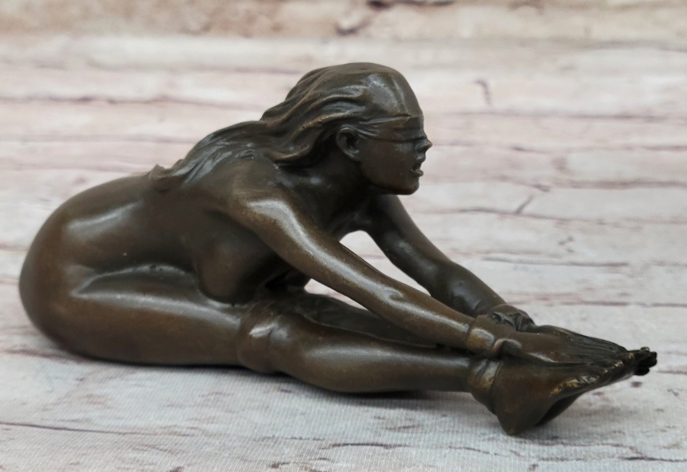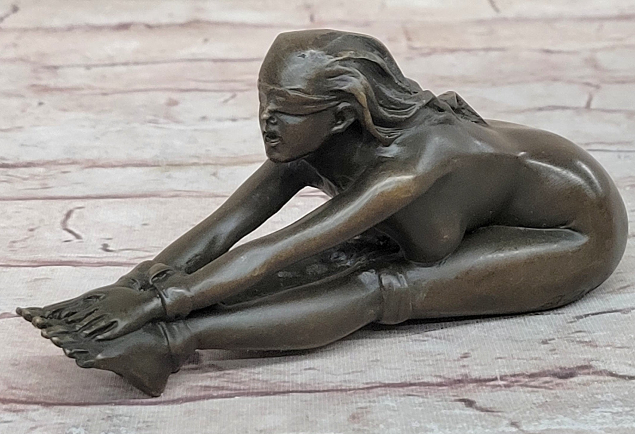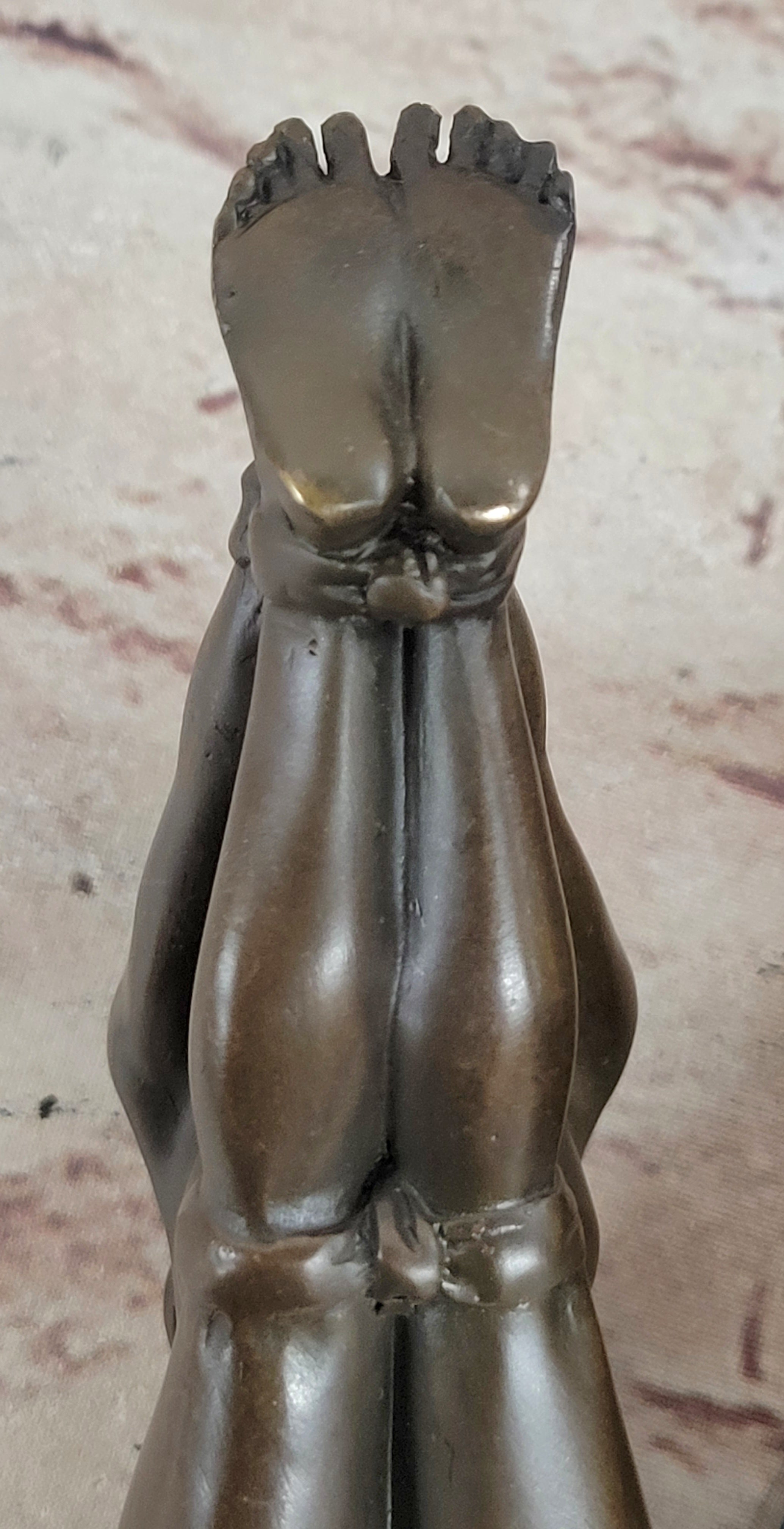 Erotic Bronze Figurine Sculpture Girl Bound Wrists to Ankles Collectible Original Art 3" x 5"