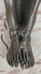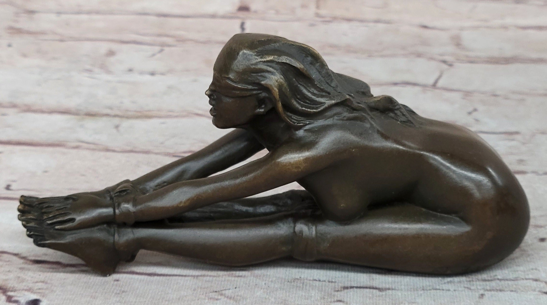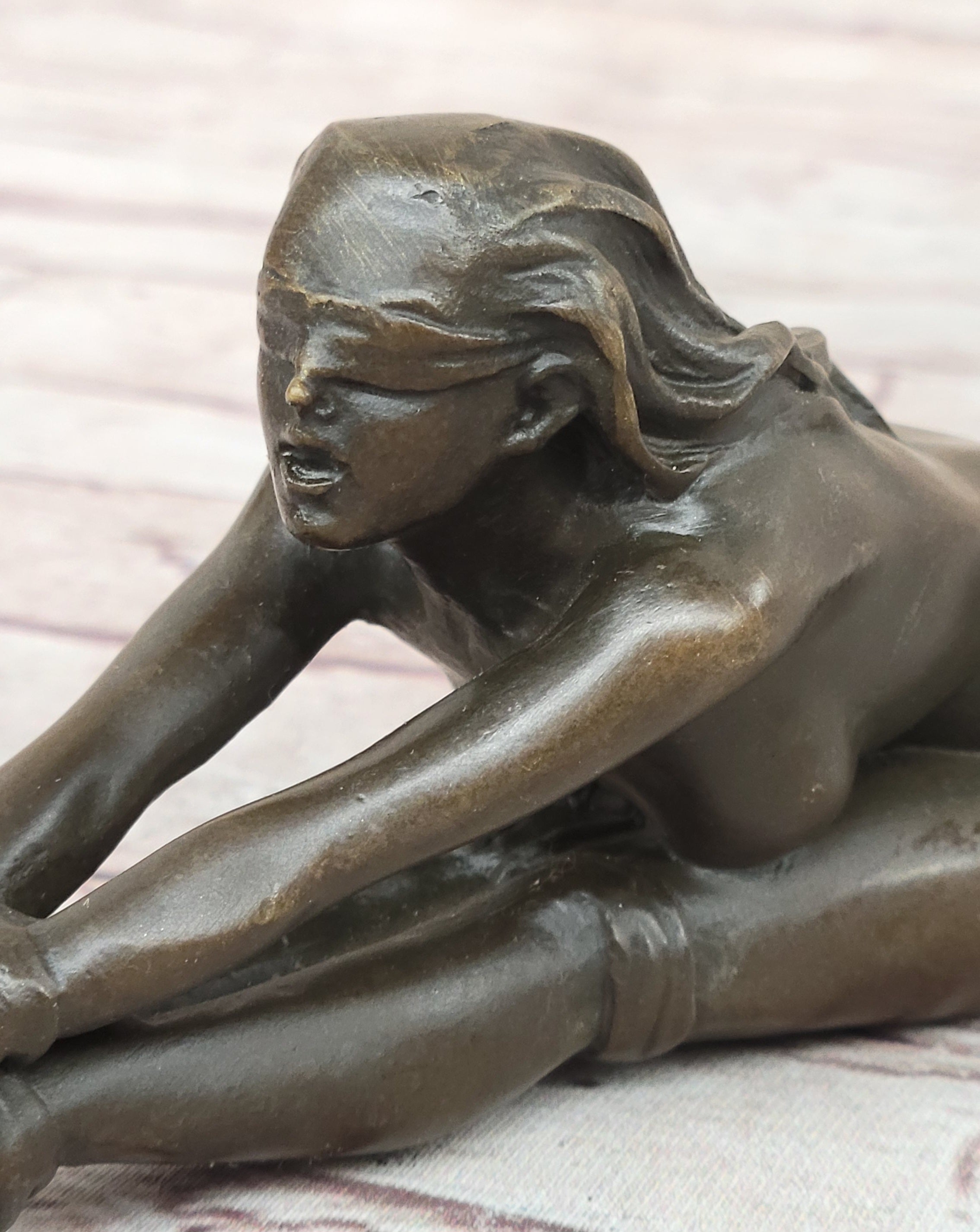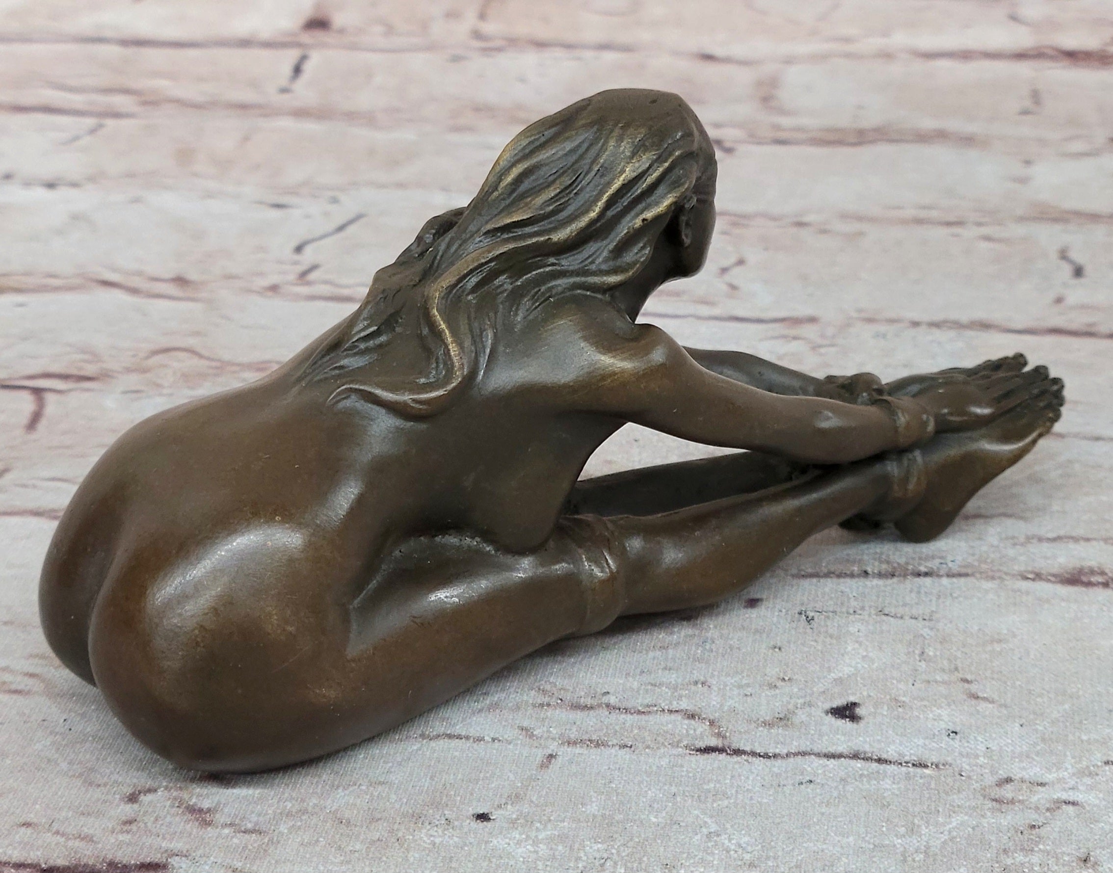 Erotic Bronze Figurine Sculpture Girl Bound Wrists to Ankles Collectible Original Art 3" x 5"