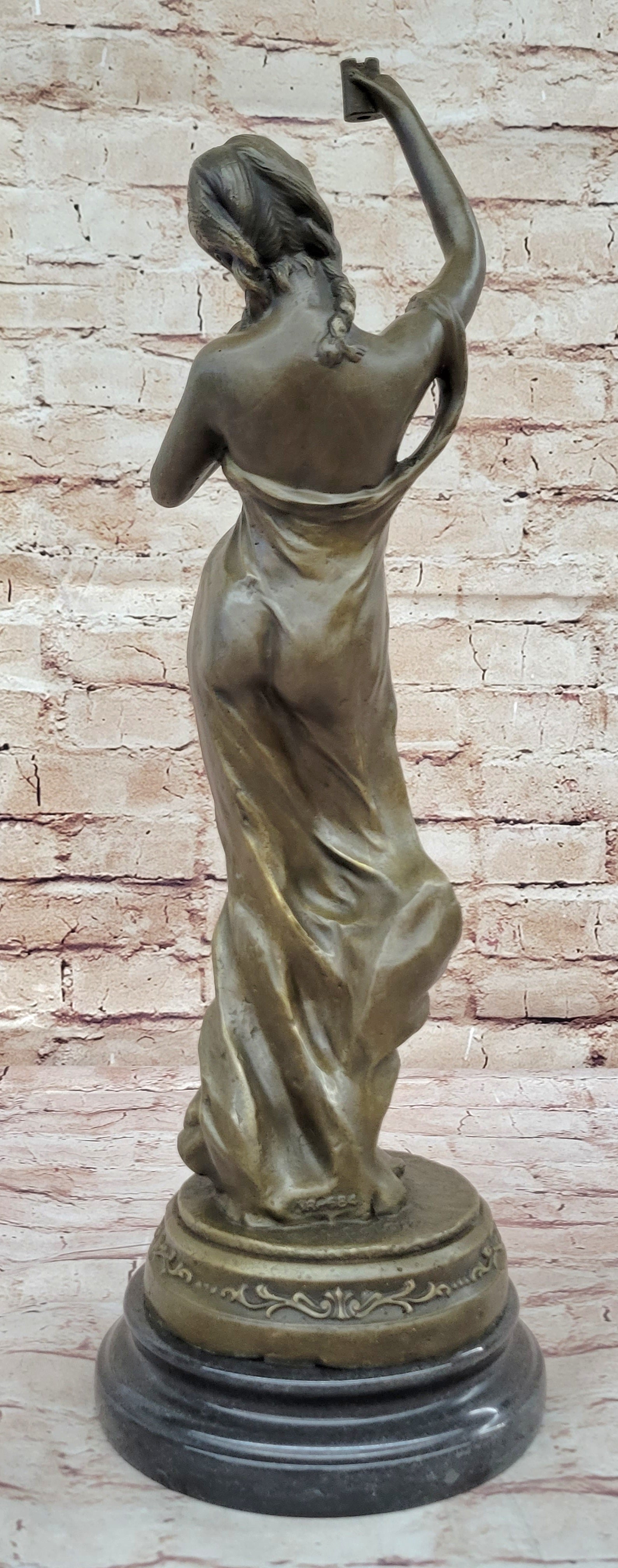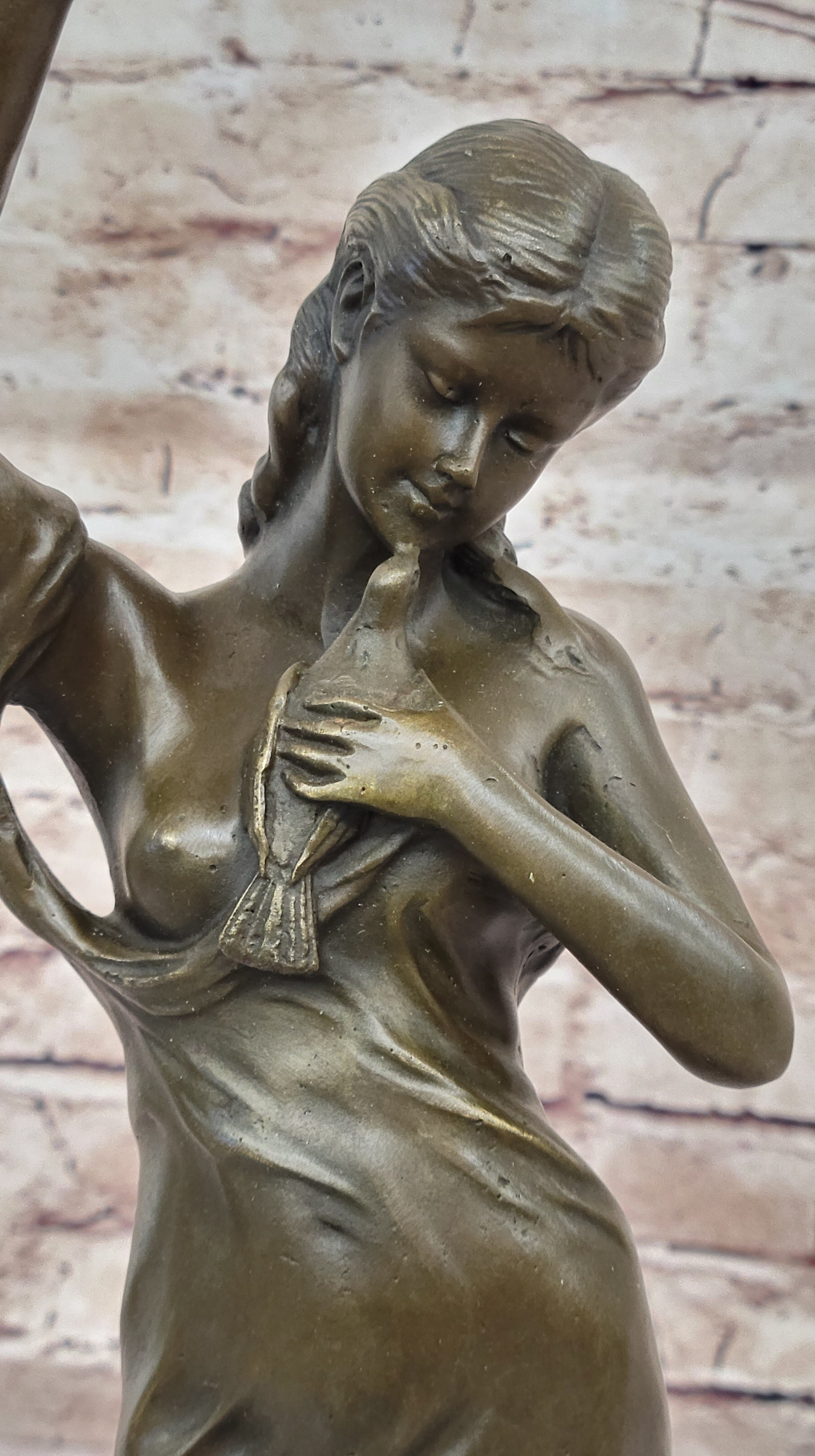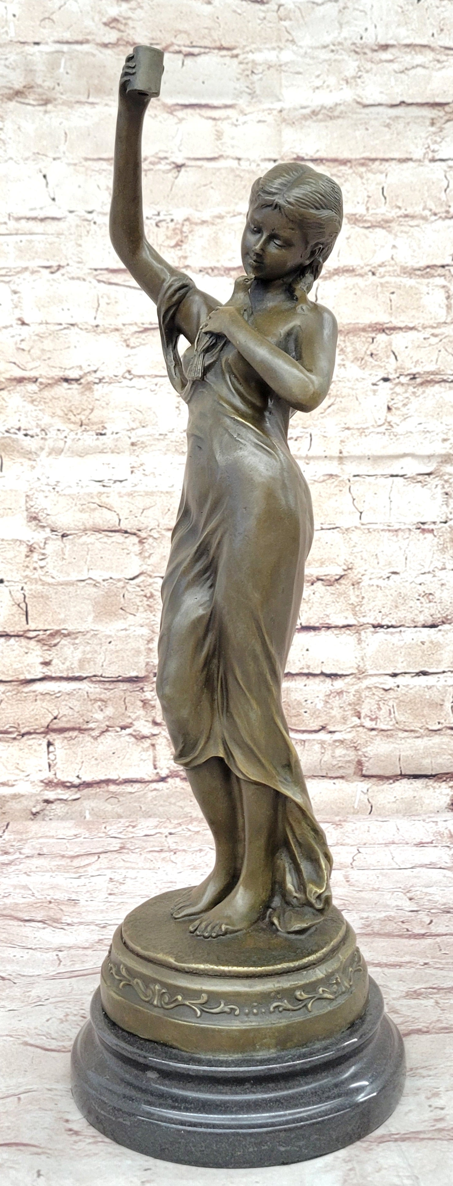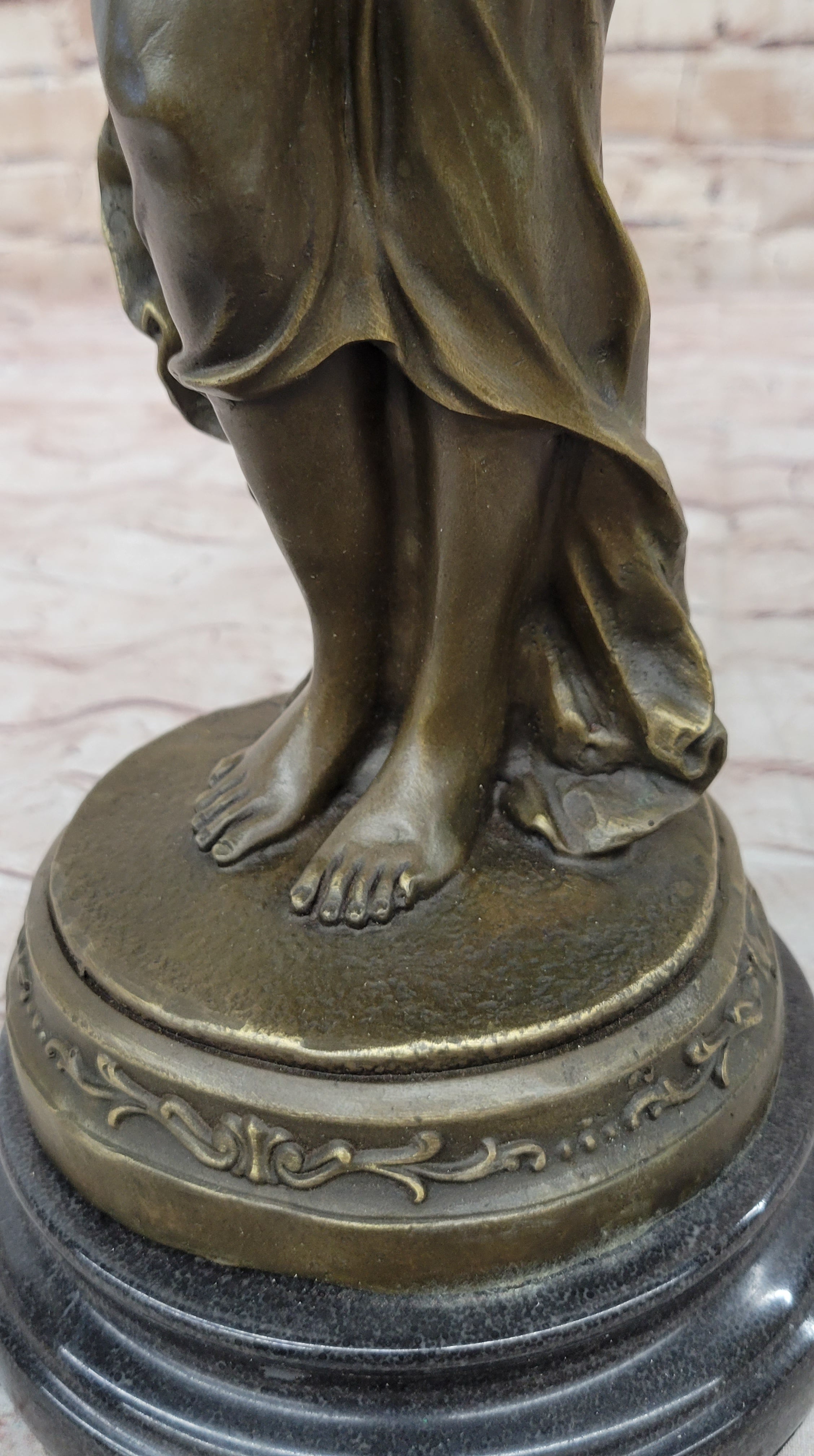 Jean Patoue “Maiden with Chalice” – Graceful Bronze Sculpture Art on Marble Base