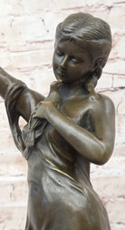 Handcrafted in 100% bronze using the traditional "Lost Wax Method," this sculpture is a testament to meticulous craftsmanship and artistic vision. Mounted on a sleek black marble base and signed by Jean Patoue, it stands as a refined celebration of beauty, nature, and the enduring spirit of youth.Bronze Dimensions with Marble Base:18 1/2" X 6"