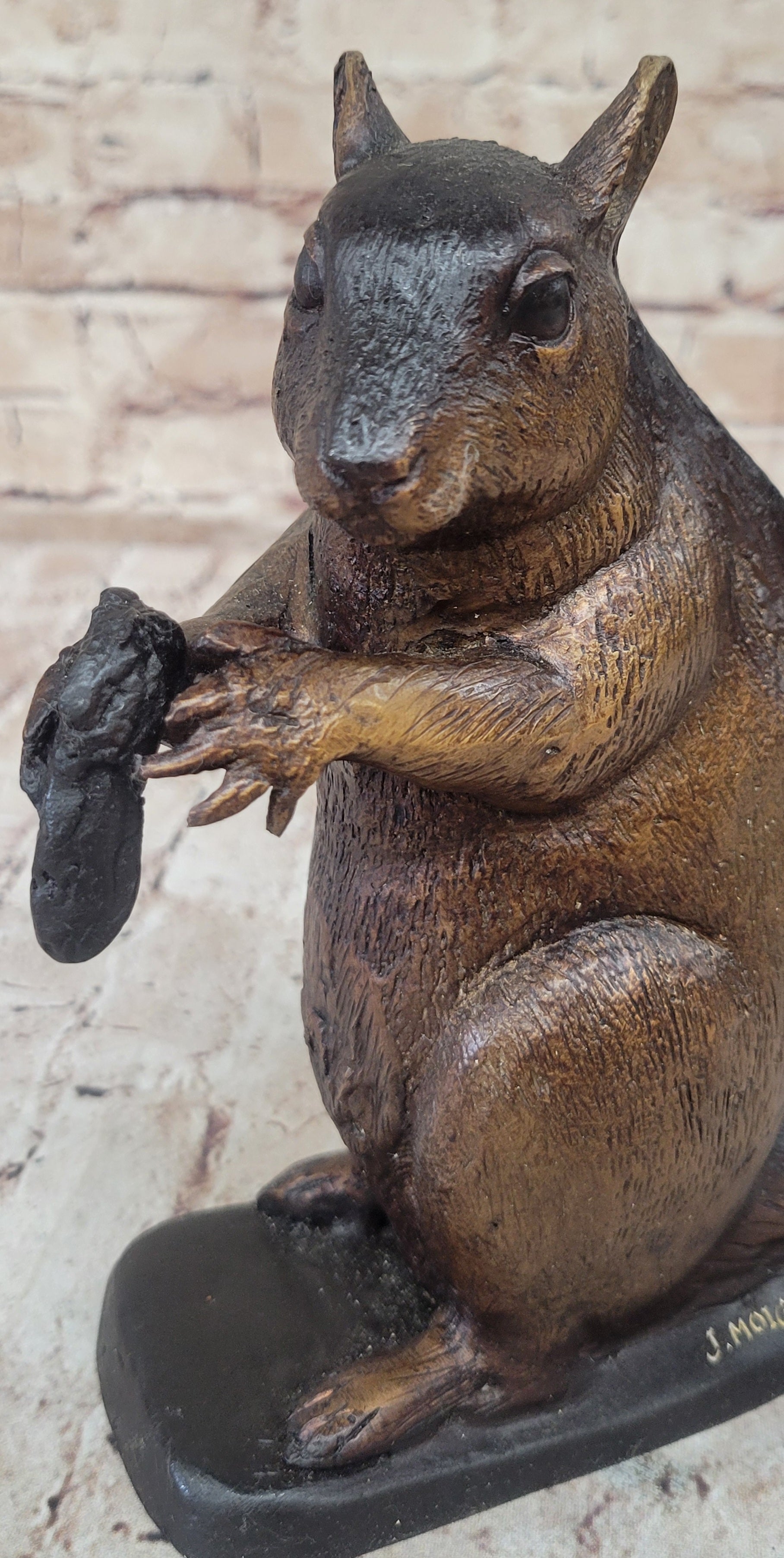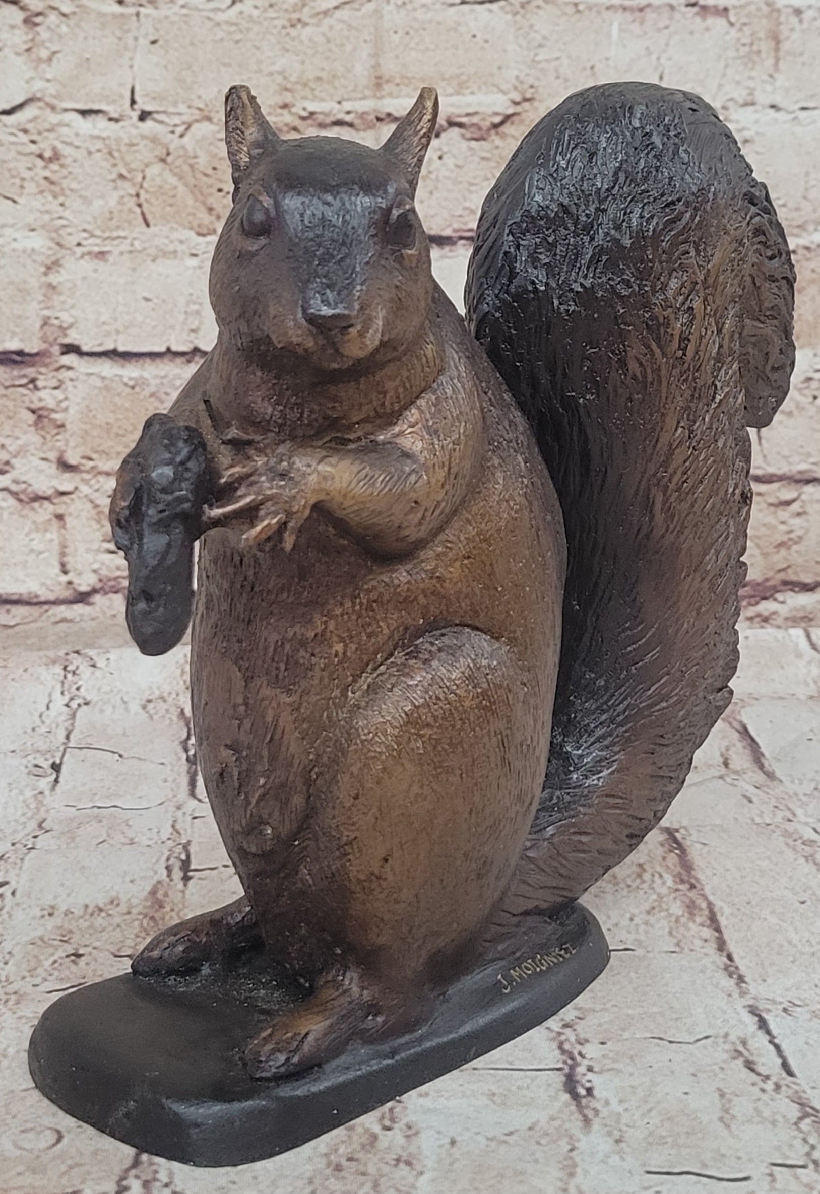Bronze Metal Squirrel Sculpture Statue Figurine Indoor Outdoor Animal Decor by Moigniez