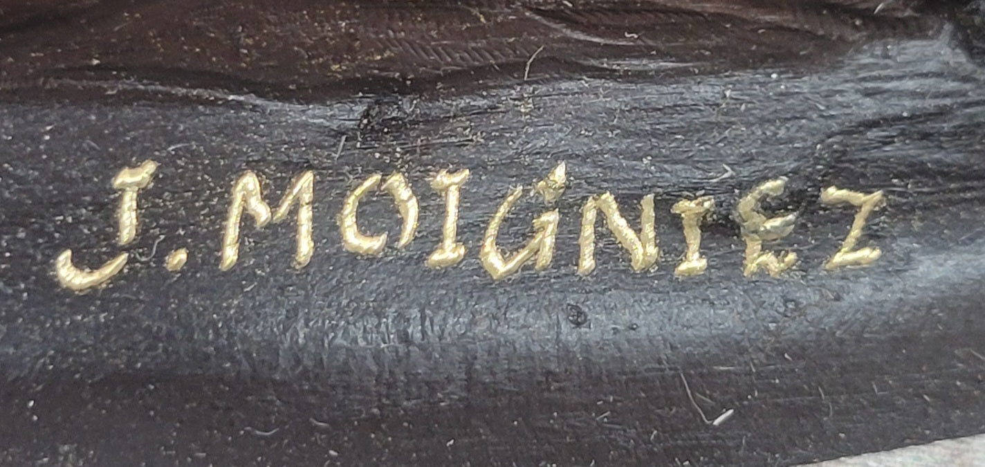 As a genuine bronze hot cast figurine, this Squirrel Sculpture by Moigniez exemplifies fine craftsmanship and artistic excellence. Its charming design and high-quality construction make it a perfect gift for animal lovers, collectors, or anyone who appreciates finely crafted art. Whether displayed on a desk, shelf, or mantel, this delightful sculpture is sure to bring joy and admiration to all who see it, celebrating the beauty and playfulness of one of nature's most endearing creatures.Bronze Dimensions with marble: Height 9.5" X Width 9"