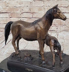Bronze Sculpture Figurine Mare W/ Her Baby Horse Stallion Farm Art Deco Moigniez