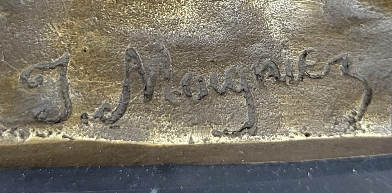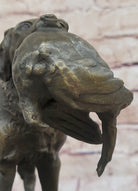 Crafted using the esteemed lost wax method of casting, this bronze sculpture exhibits exquisite detail and quality. The ancient technique ensures that every nuance of the artwork is accurately captured, resulting in a remarkable piece signed by the esteemed artist Moigniez. Whether displayed in a home or business, this sculpture will add grace and beauty to any space, making it a perfect gift for hunters or animal lovers who appreciate the artistry and thrill of the hunt.Bronze Dimensions with Marble Base: Weight 7" X Width 12"