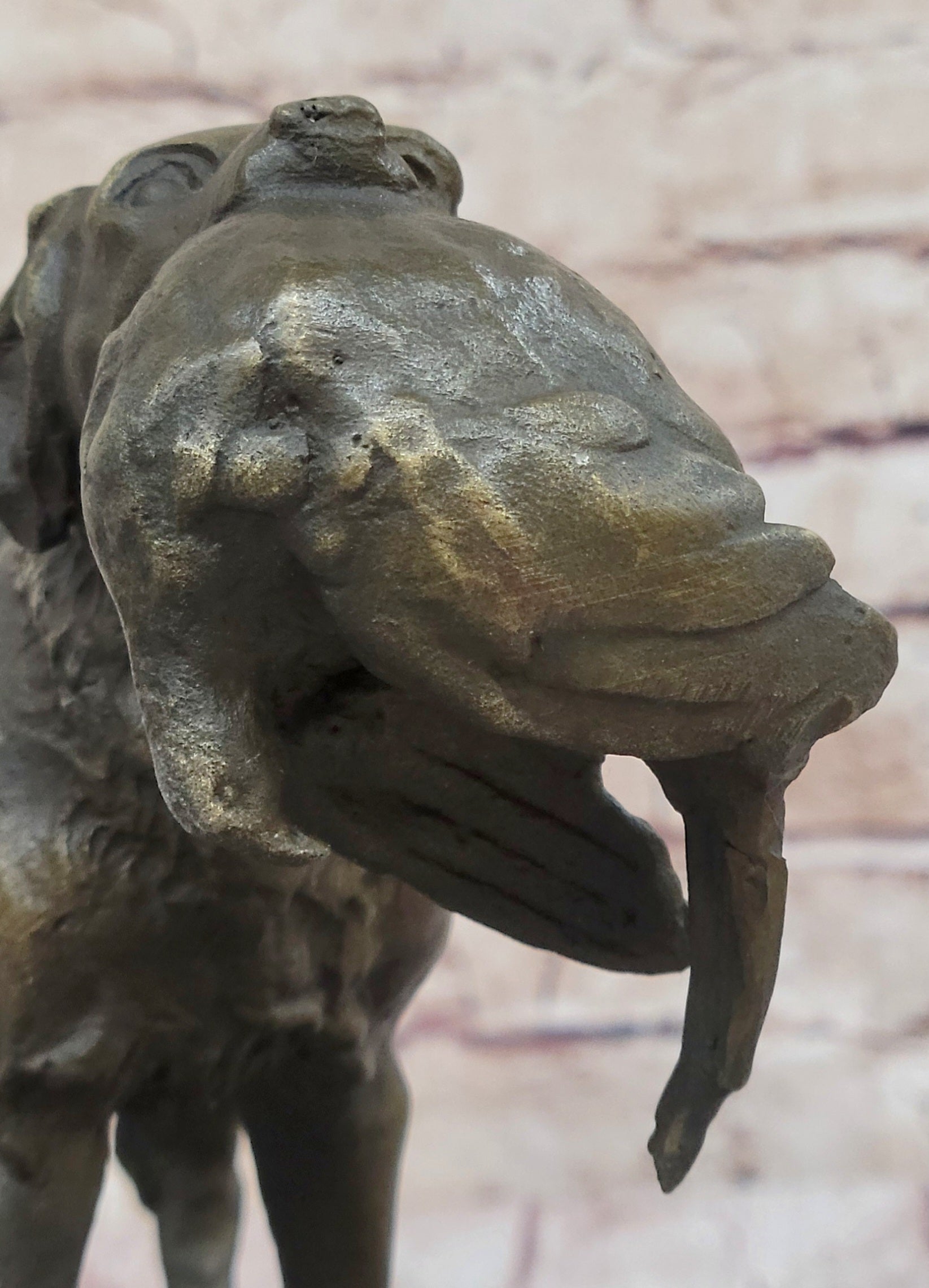 Introducing a captivating bronze sculpture that depicts the thrilling moment when a loyal hunting dog retrieves a shot bird. The sculpture captures the intensity and dedication of the dog as it stands proudly with the bird in its mouth, showcasing the successful outcome of the hunt. With meticulous attention to detail, the artisan has crafted the dog's fur and posture, conveying a sense of realism and vitality.