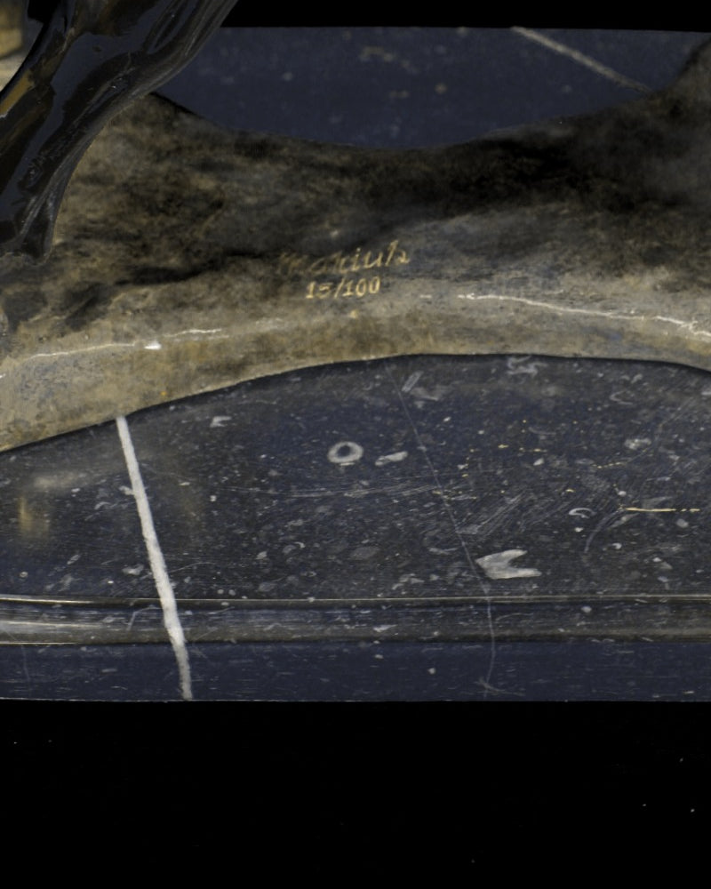 Our curated selection features a variety of Marius's most celebrated themes, from graceful figures and dynamic compositions to intricate and expressive works. Each bronze sculpture is designed to reflect Marius's attention to detail and his ability to convey emotion and movement, making them a striking addition to any decor.