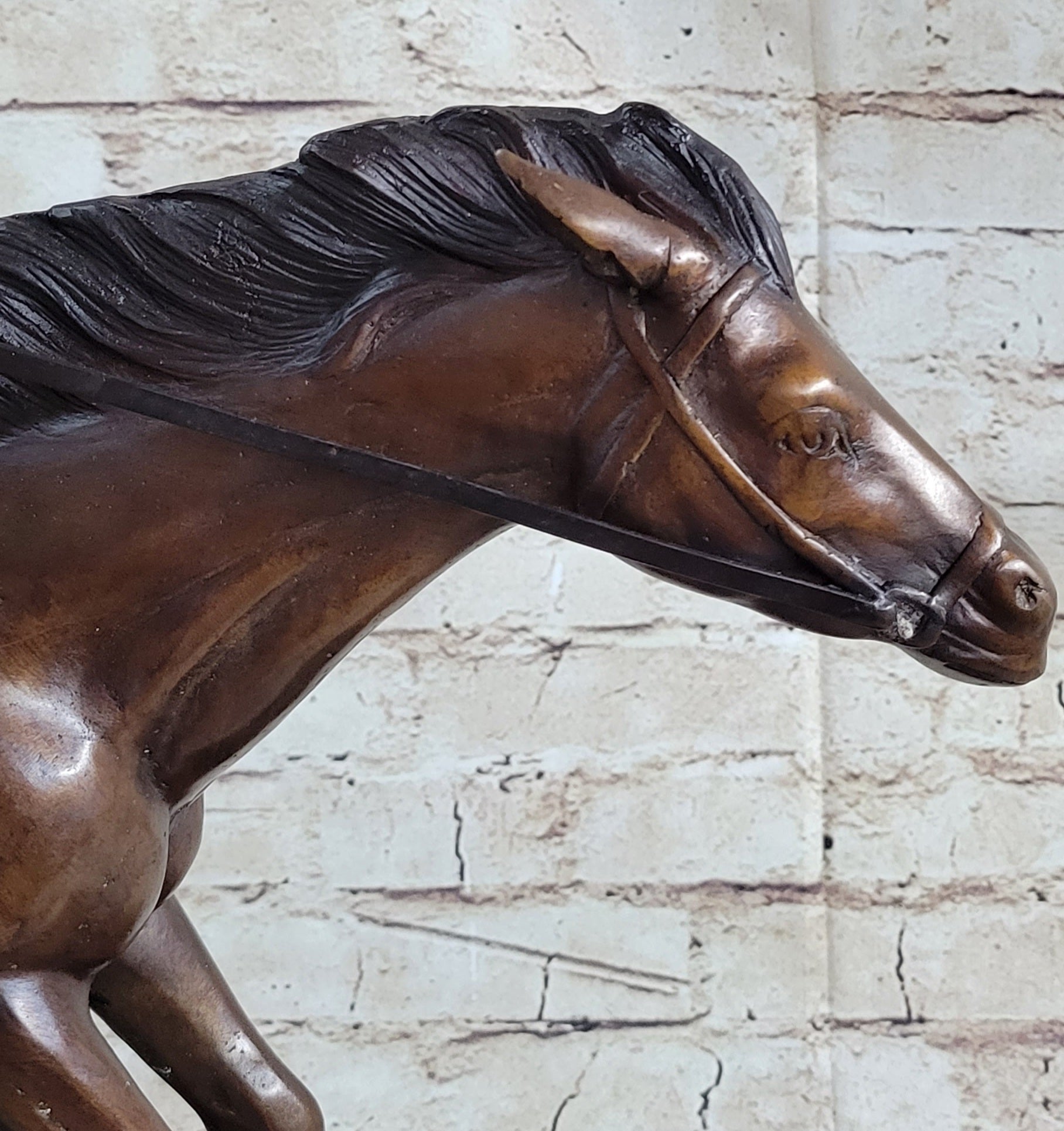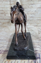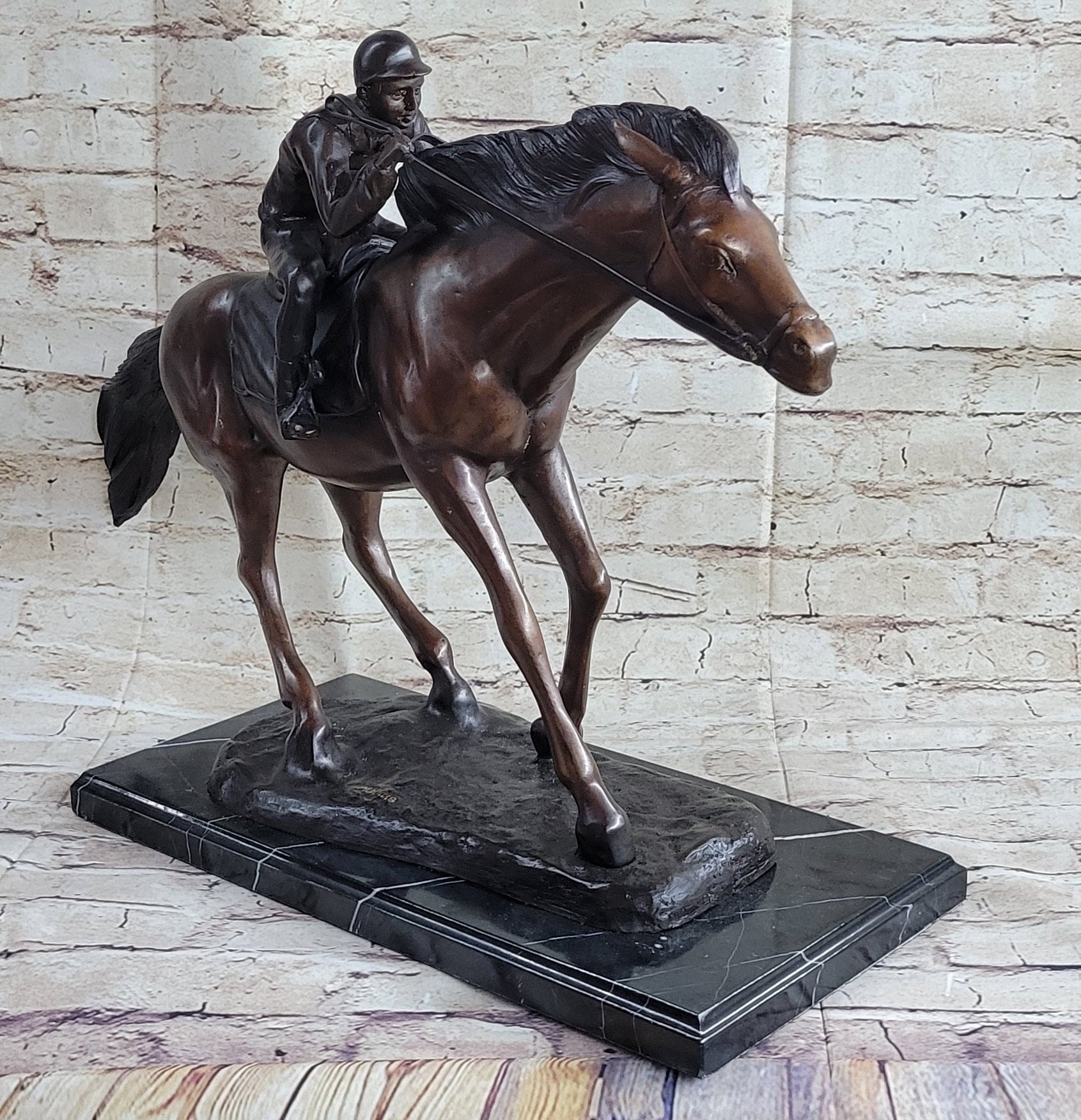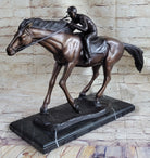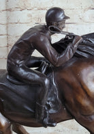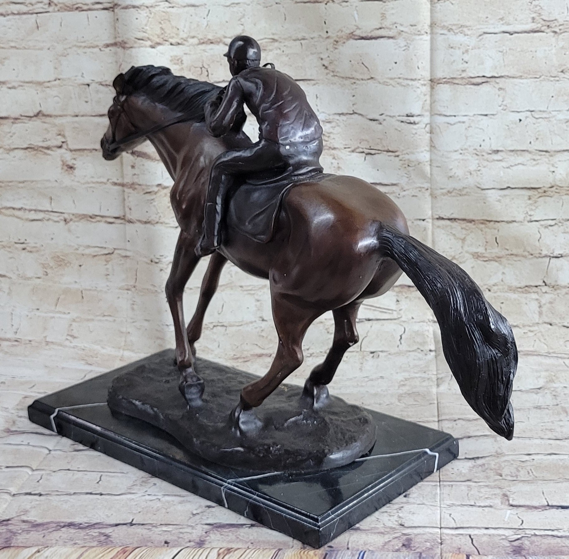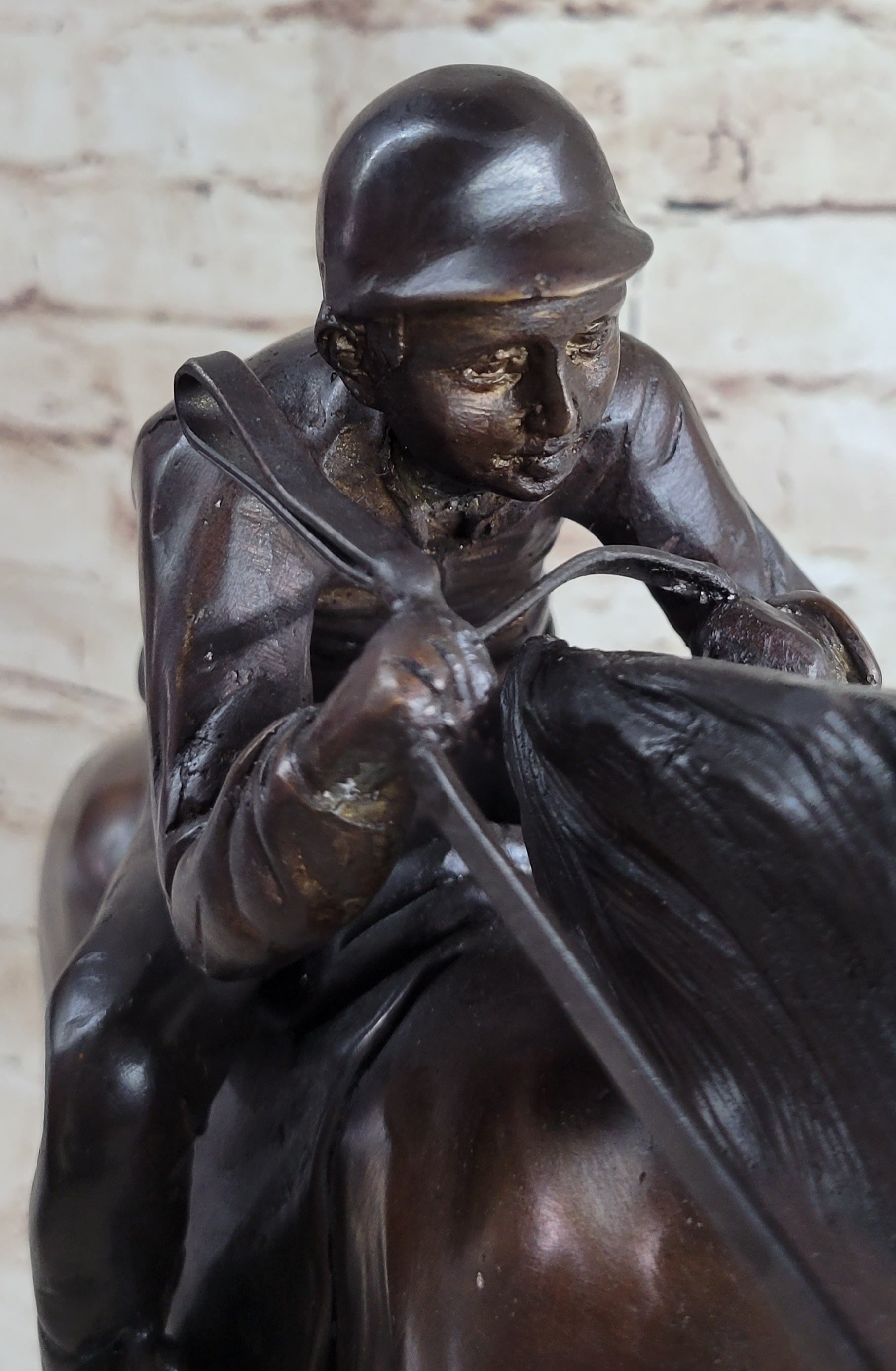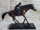 Bronze Jockey Horseman Equestrian Horse Racing Statue Sculpture Decor 16" x 23"