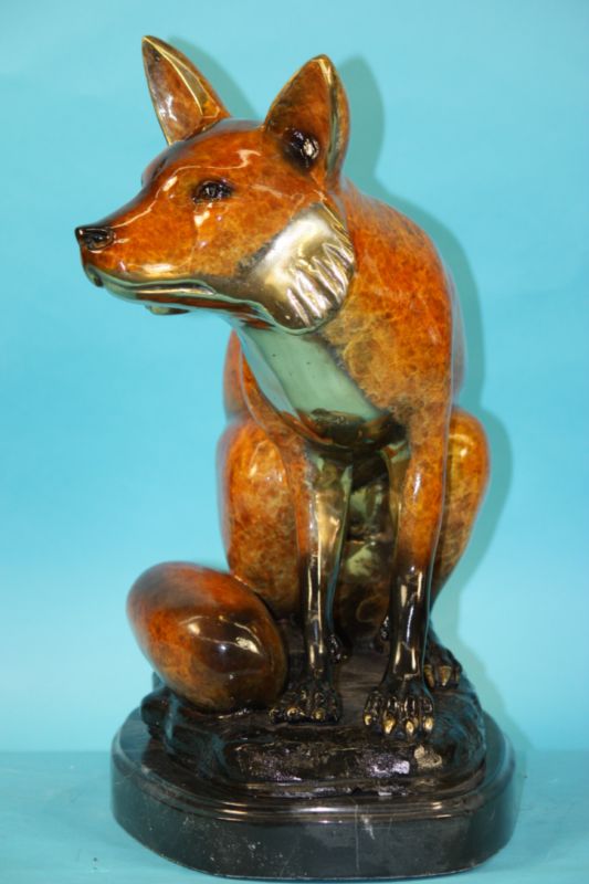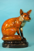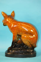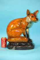 This sly creature has a beautiful pose and beautiful markings to go along with it. He sits attentive with his back straight and his ears pointed perfectly upward toward the sky. He looks as if he is wearing a mask; it covers right below his eyes and follows down his neck to his back. He has beautifully multi color patina markings on his ears and his legs. His proportion and muscle contour are great. He has great detail and is great for any home or office décor. This sly fox is sure to gain some attention. This bronze sculpture was casted using the “Lost Wax Method” and has a beautiful special patina. This limited edition sculpture is an original artwork and signed by artist Marius.Bronze Dimensions with Marble Base:Height 18" x Width 18"