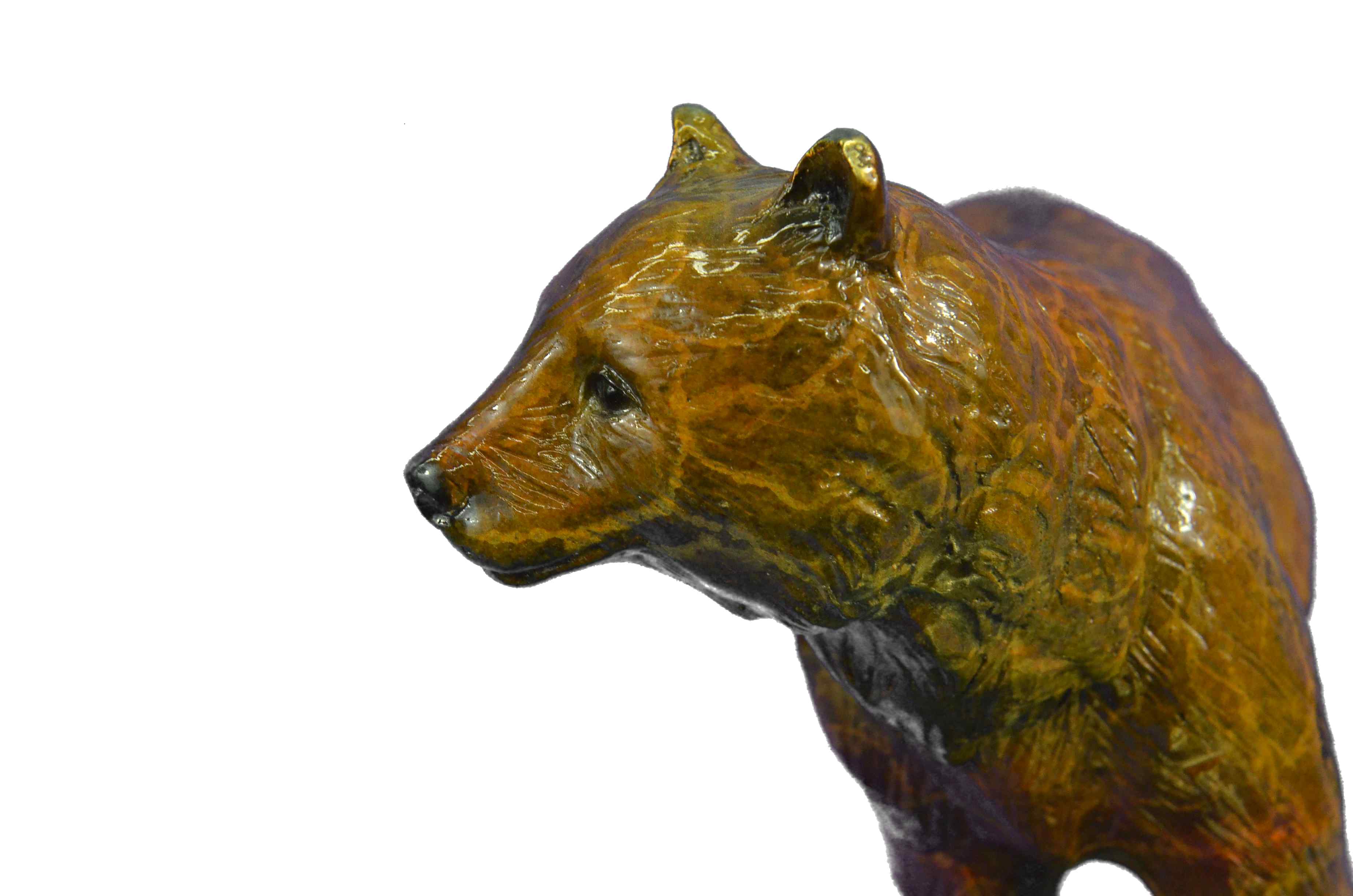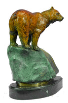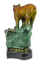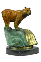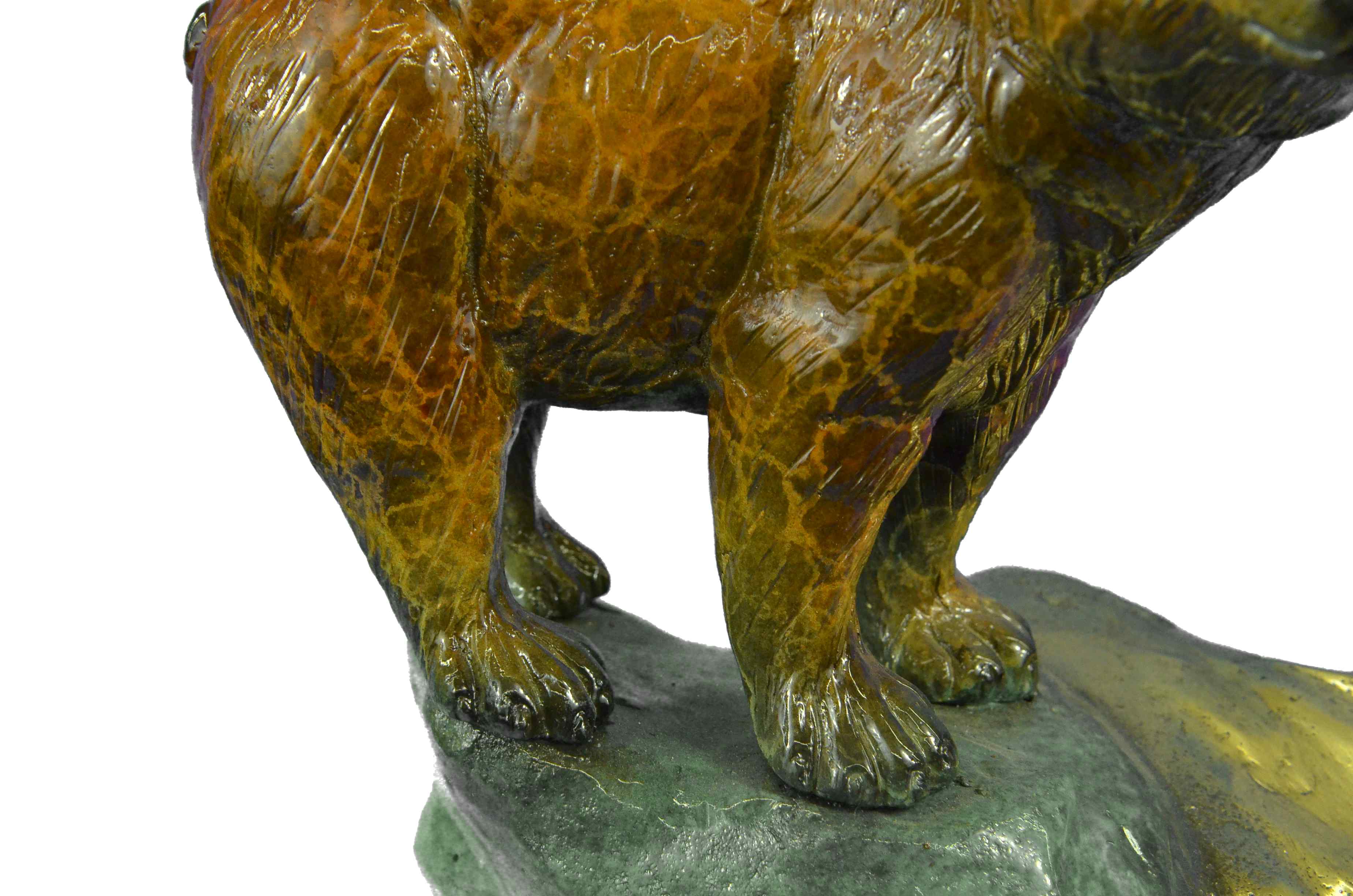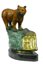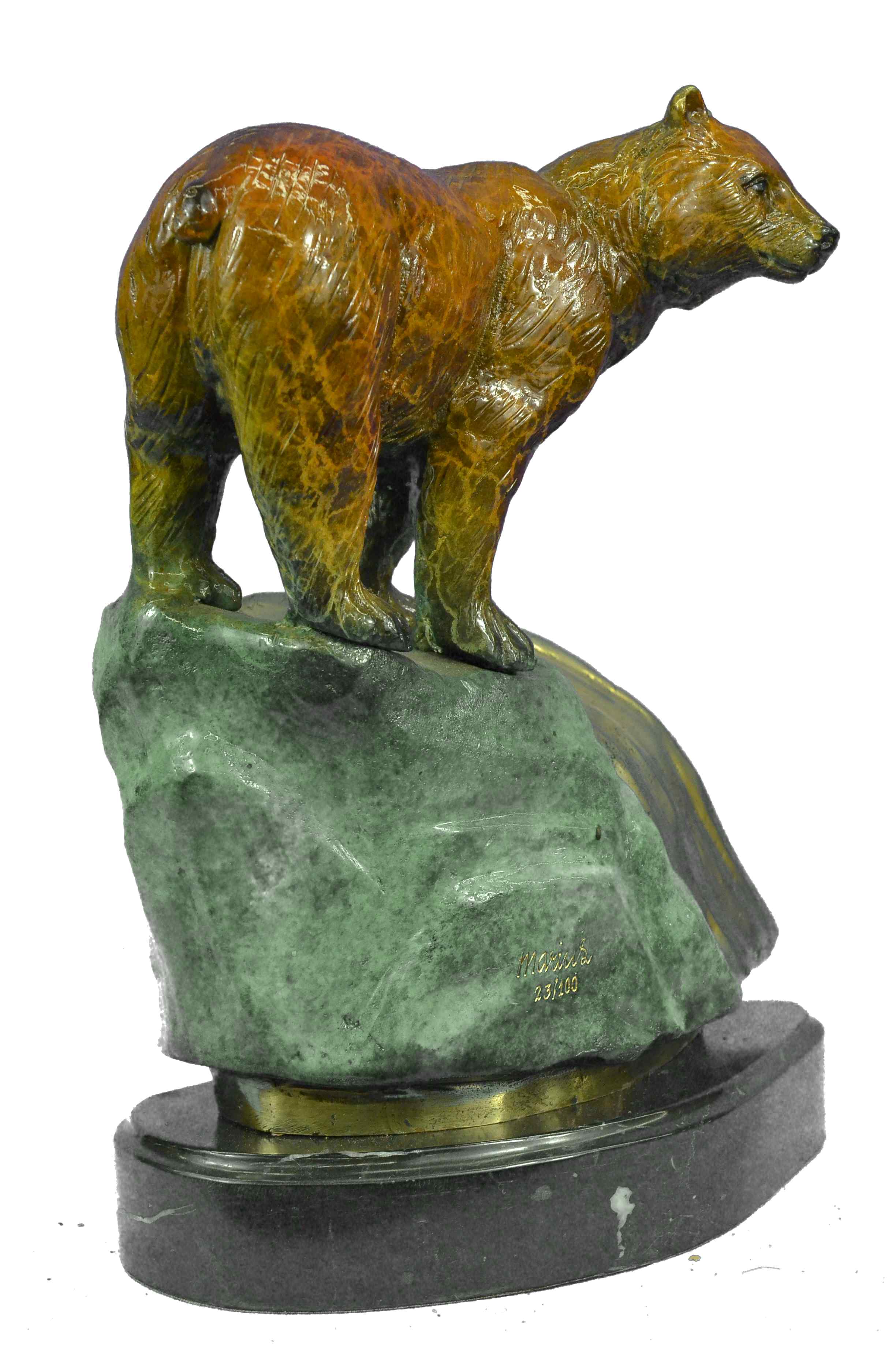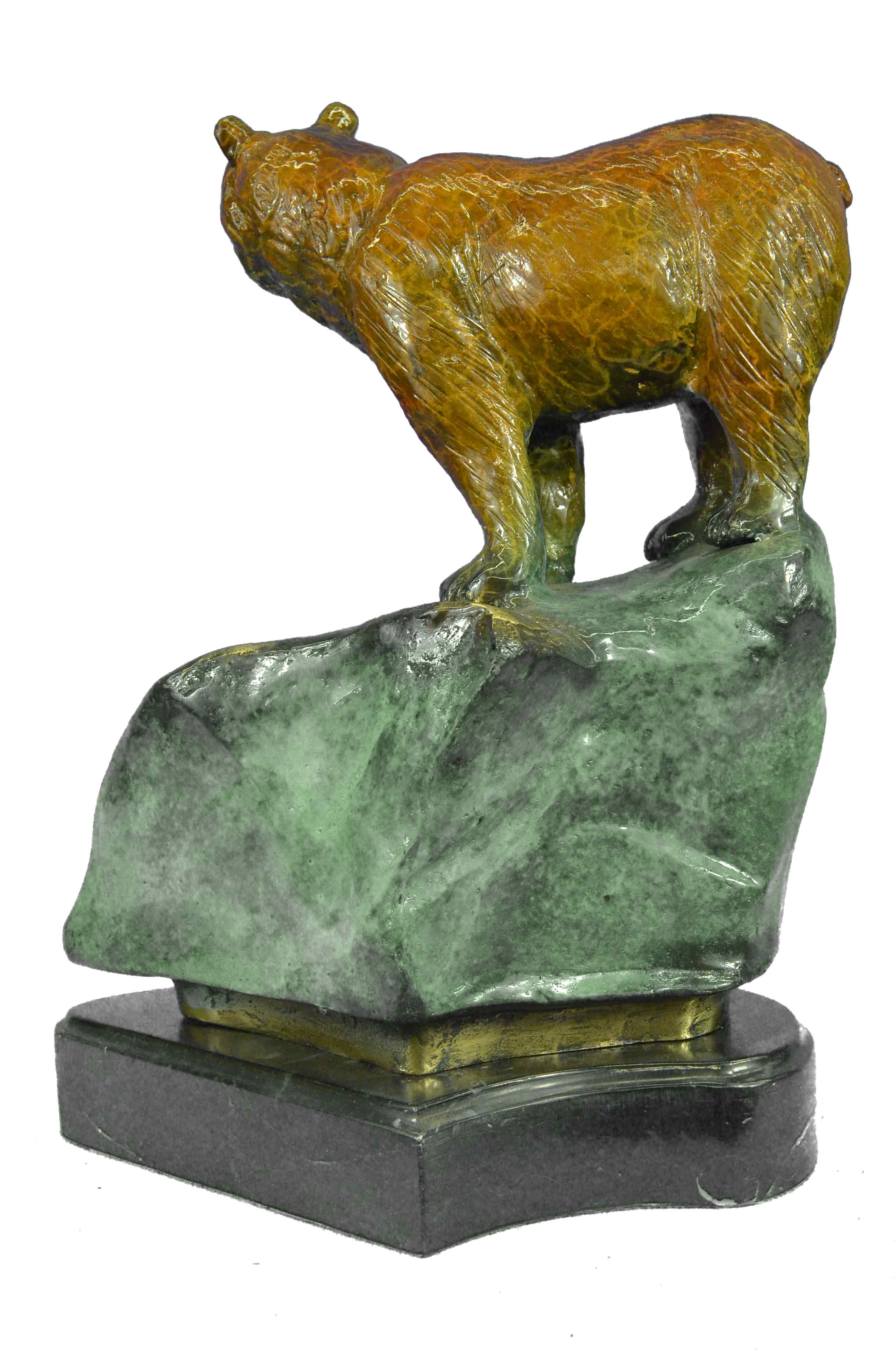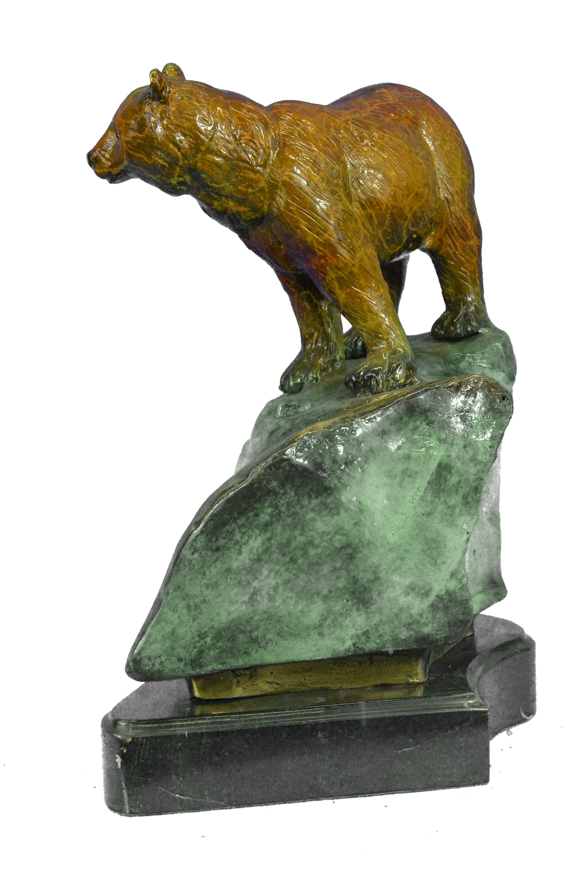 Special Patina Brown Bear Standing on Hill Bronze Sculpture Marble Base Figurine