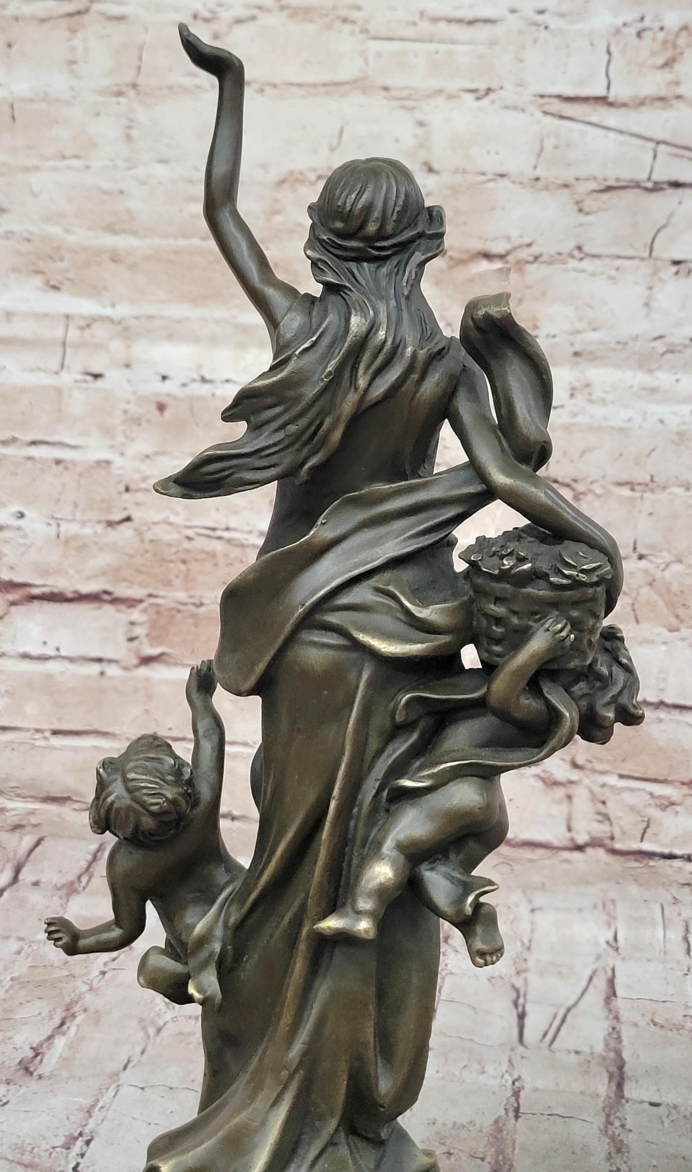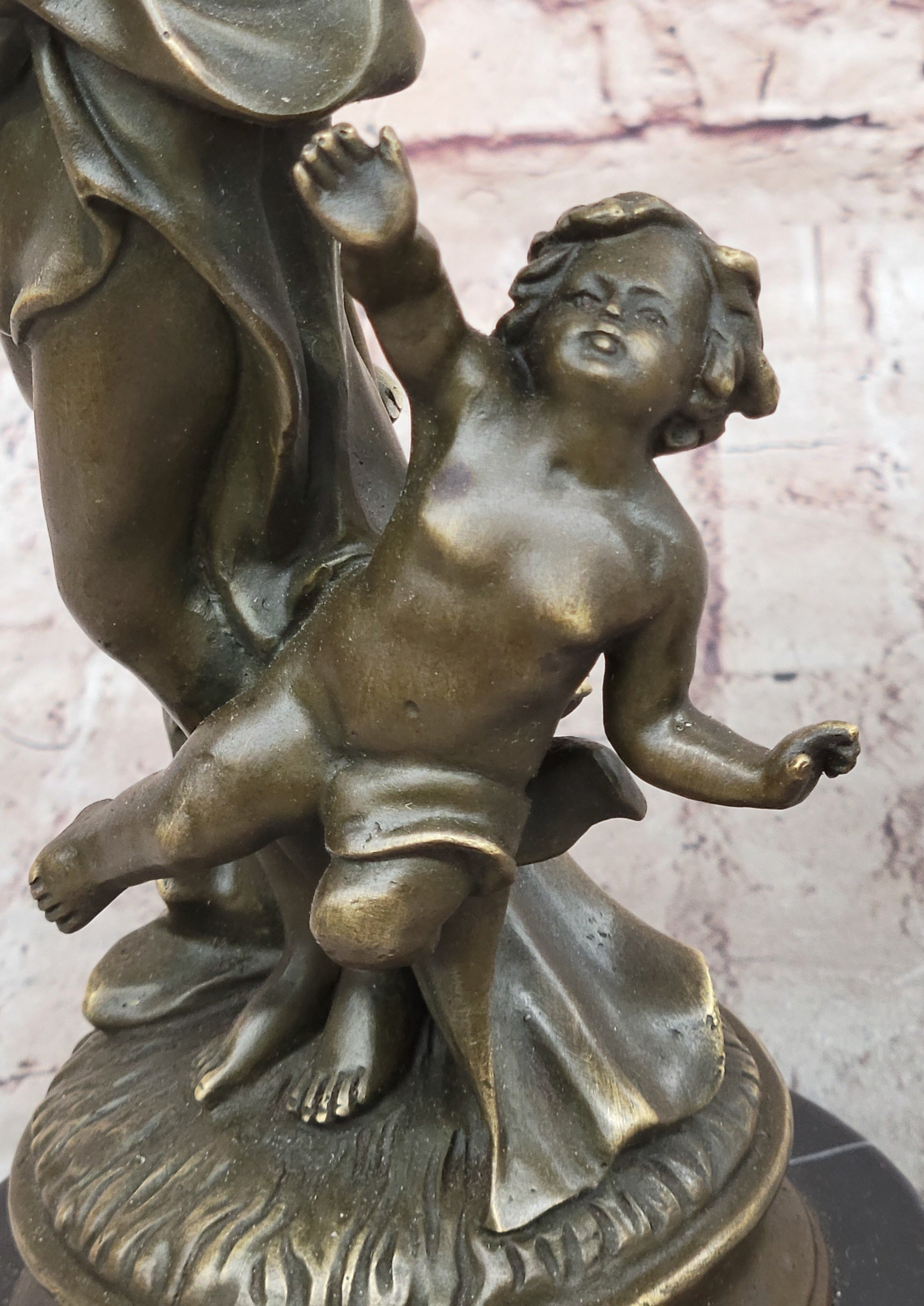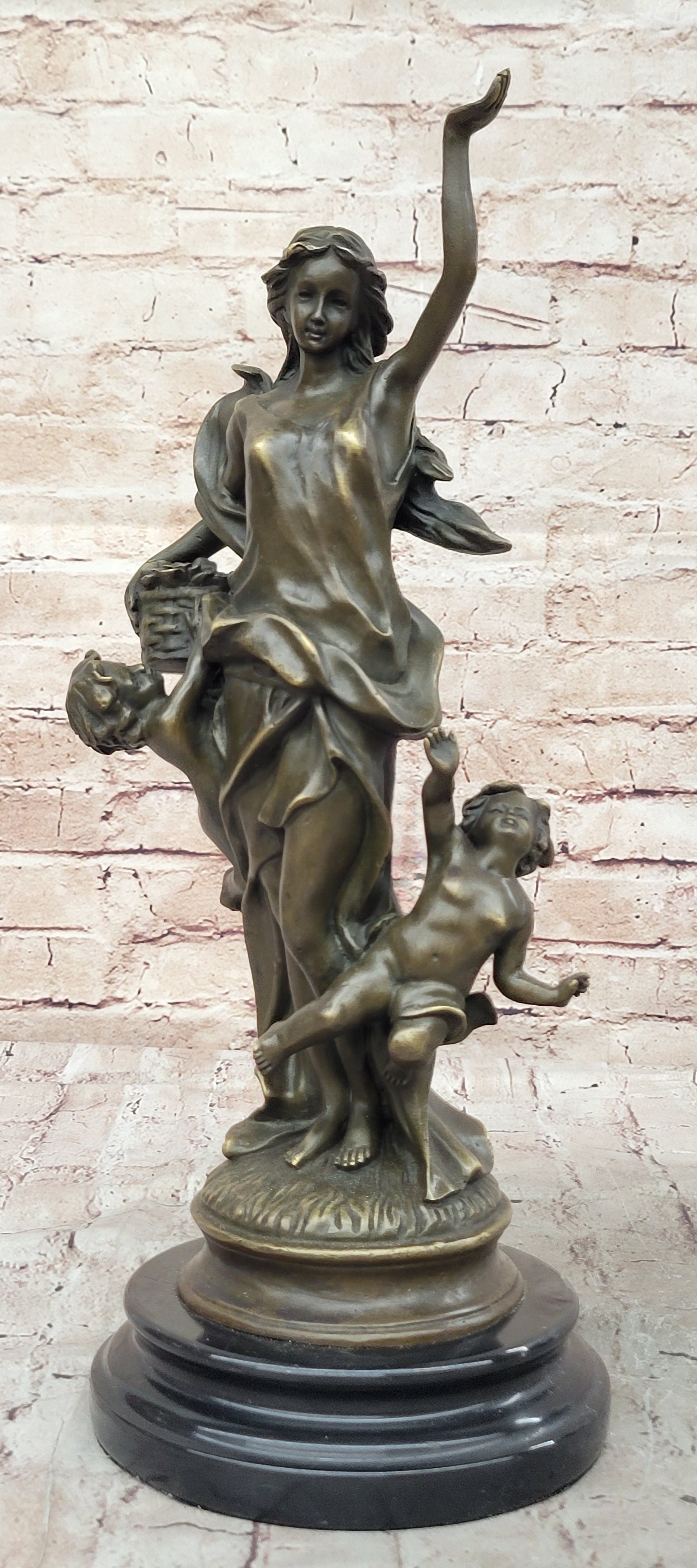 Art Deco Nouveau Bronze Sculpture of Young Woman Mother w/ Children by Milo