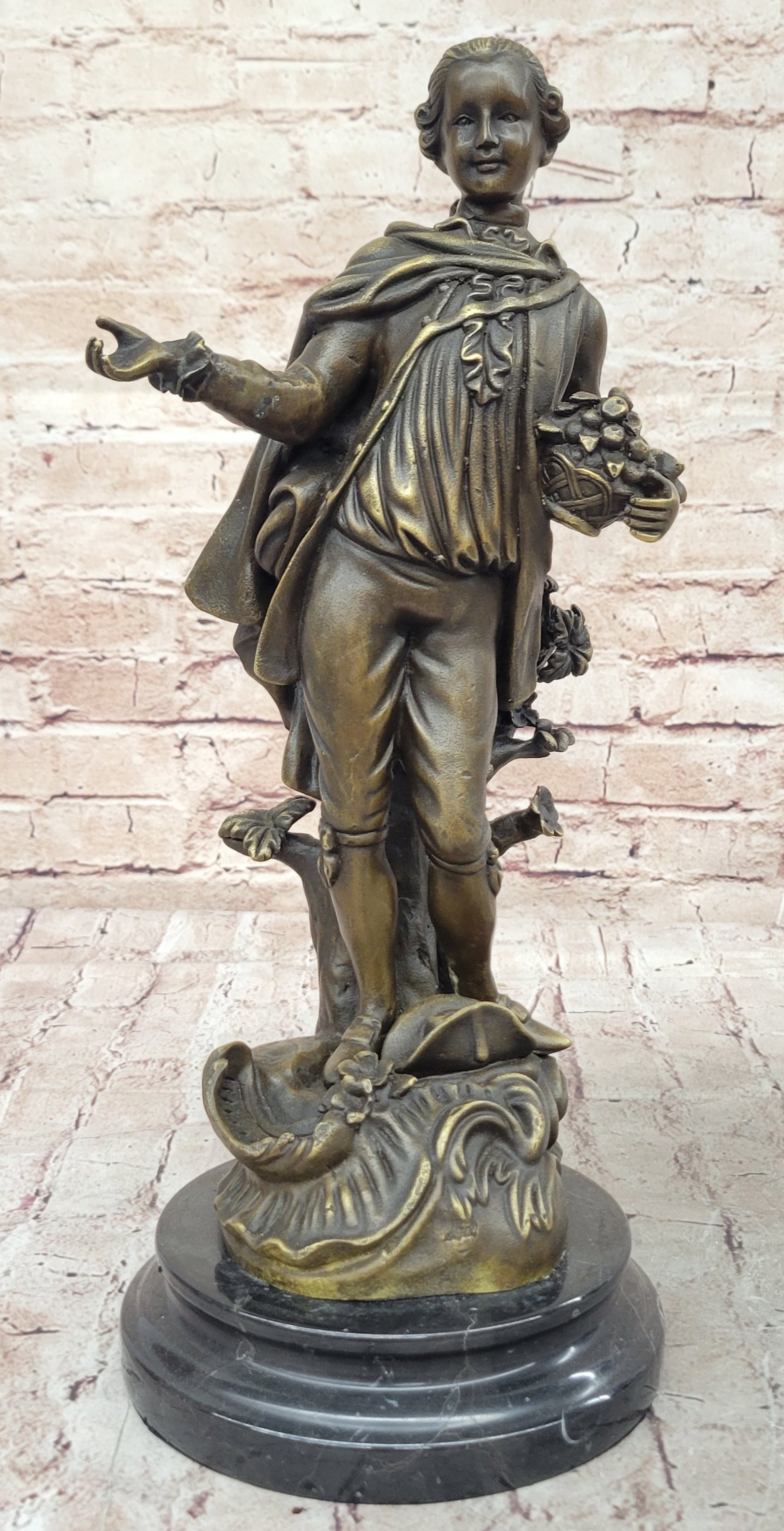 Colonial Era Man Holding Basket of Fruit - Bronze Sculpture Male Figure by Milo