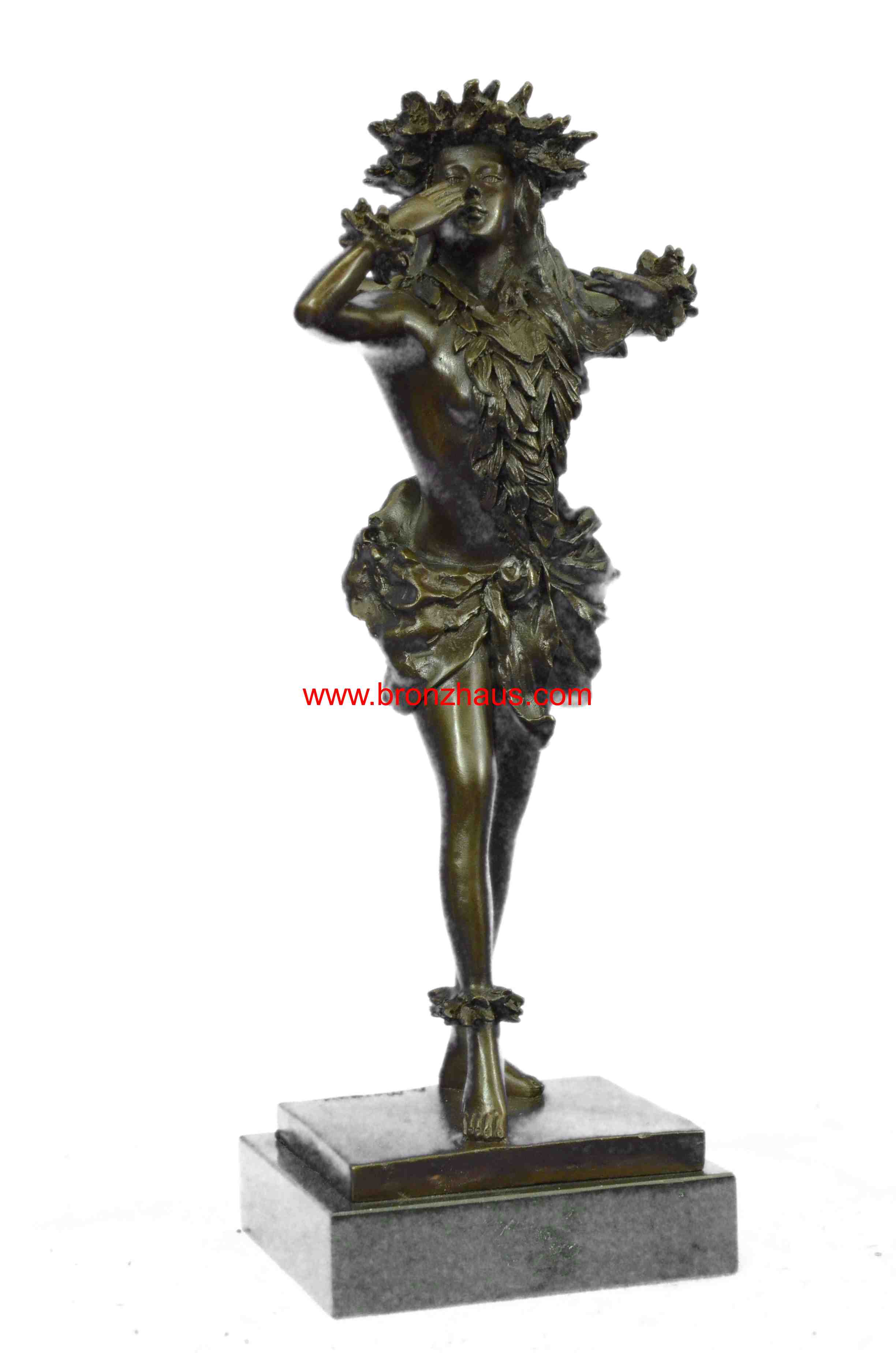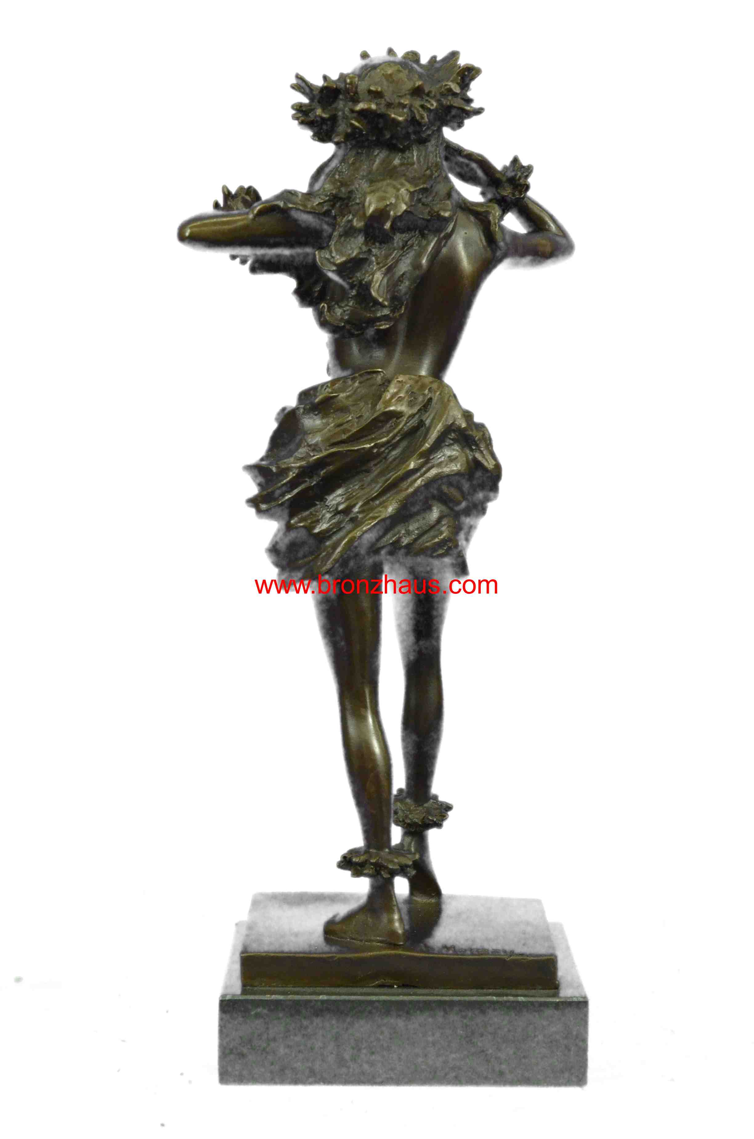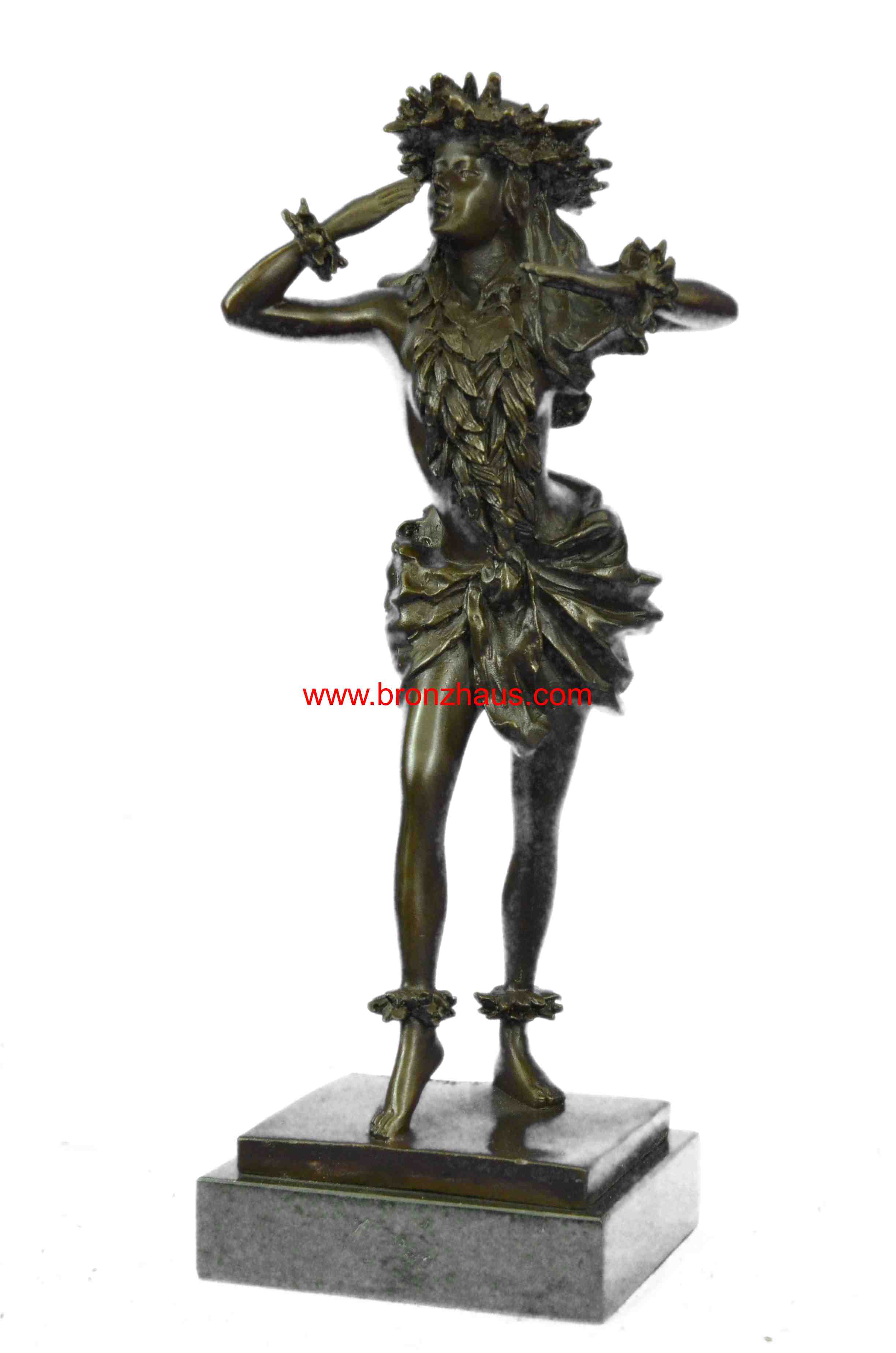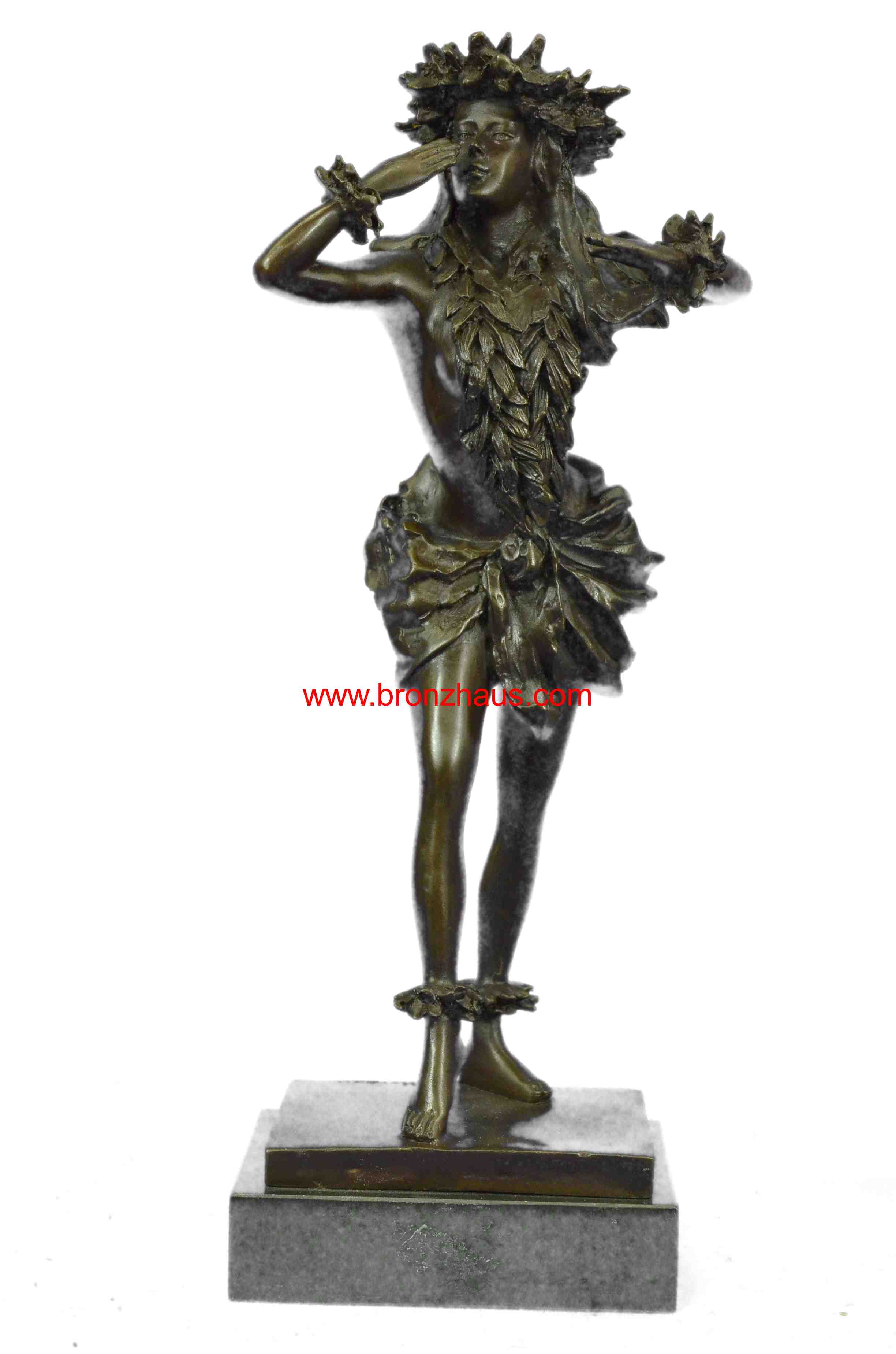 Gilt Hawaiian Girl W/Lei Flower Bronze Sculpture Hot Cast Marble Base Figurine