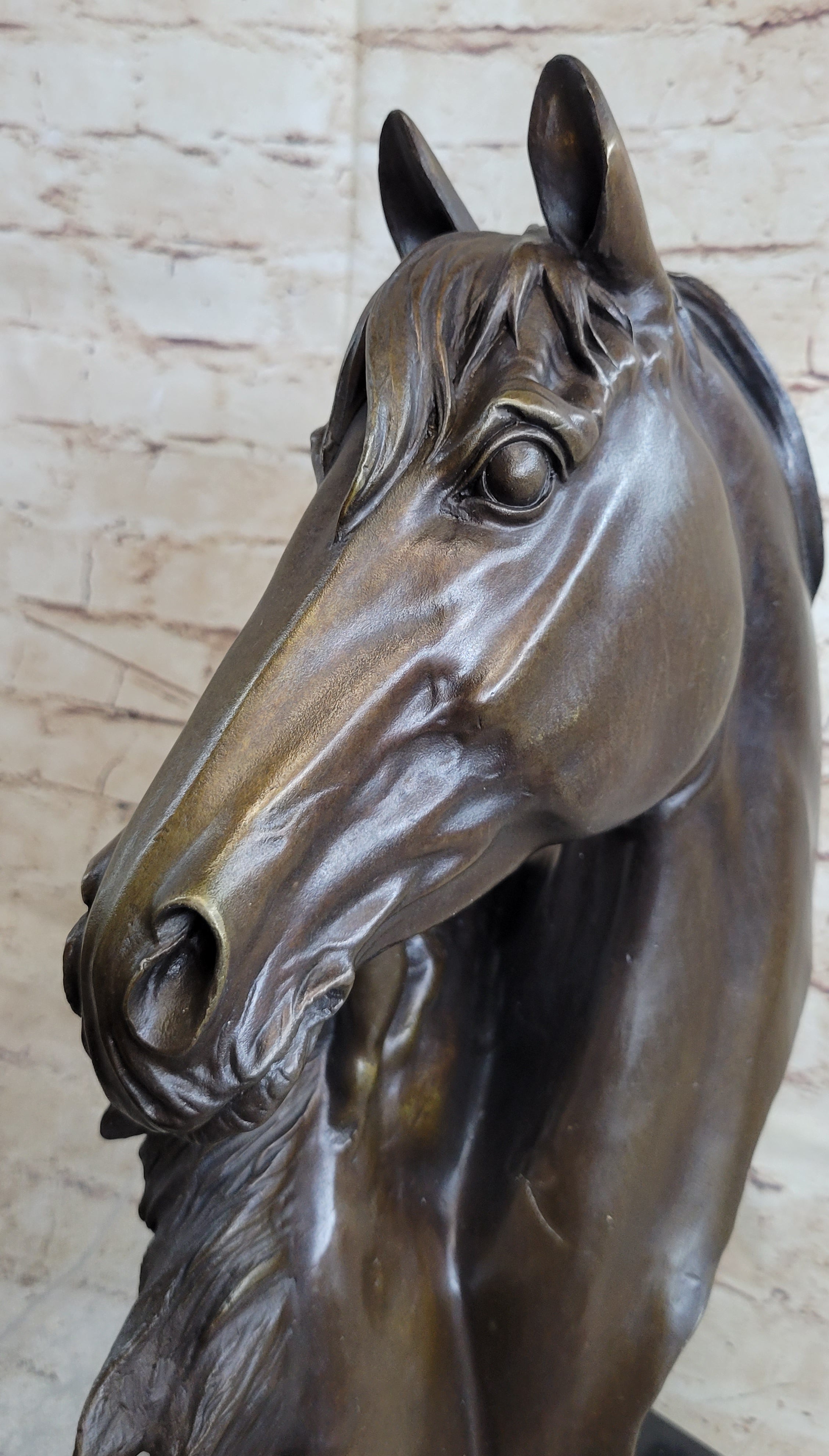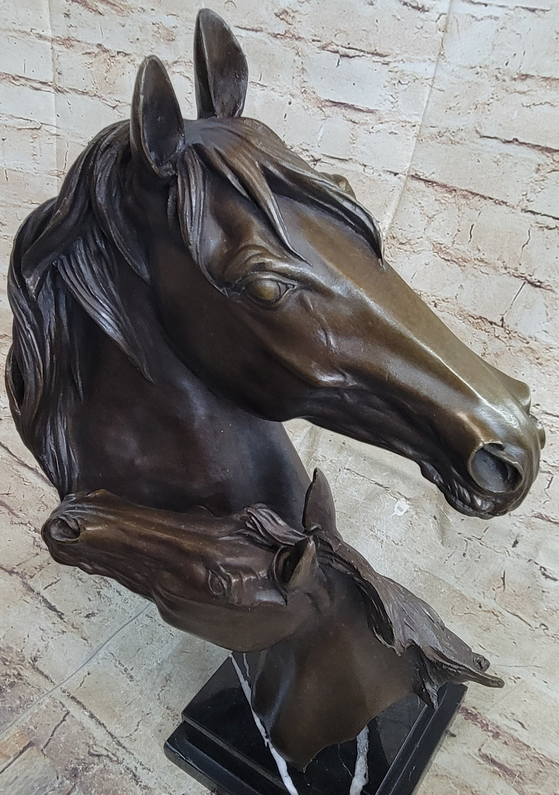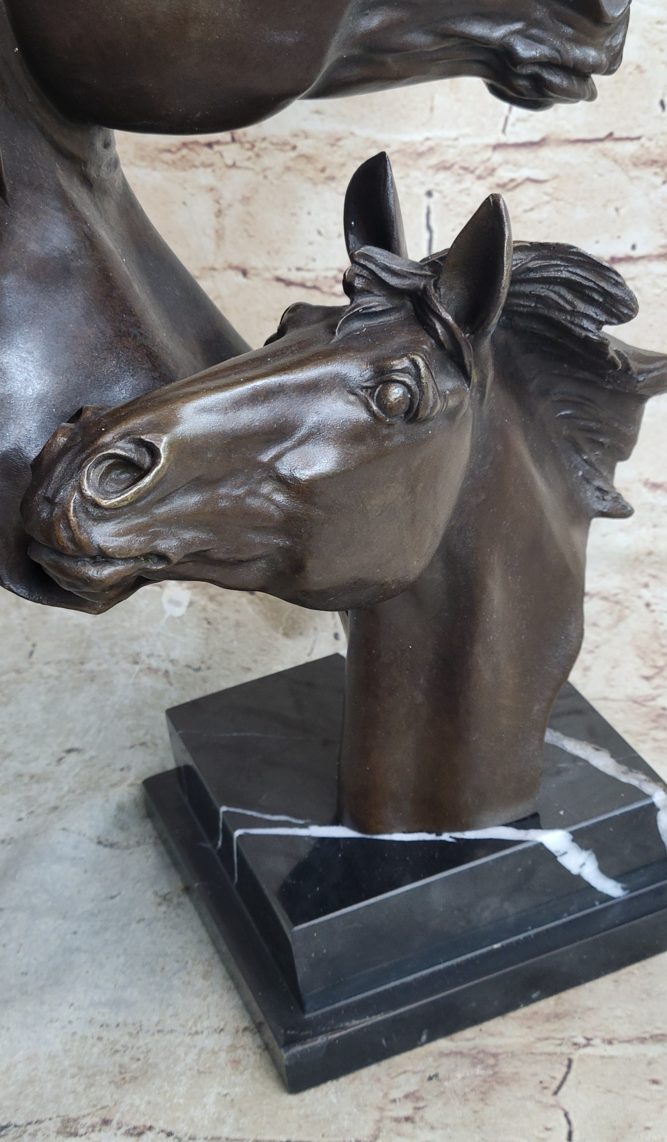 Two Horses Bust Sculpture Real Bronze Signed Original Equine Art by Milo on Marble Base
