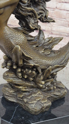 Mounted on a polished black marble base, this signed artwork is both elegant and stable, making it a striking decorative piece for the home, office, or gallery. Combining classical craftsmanship with contemporary appeal, the sculpture serves as a sophisticated accent, celebrating myth, beauty, and the enduring allure of bronze artistry.Bronze Dimensions with Marble Base: Height 14" x Width 12"