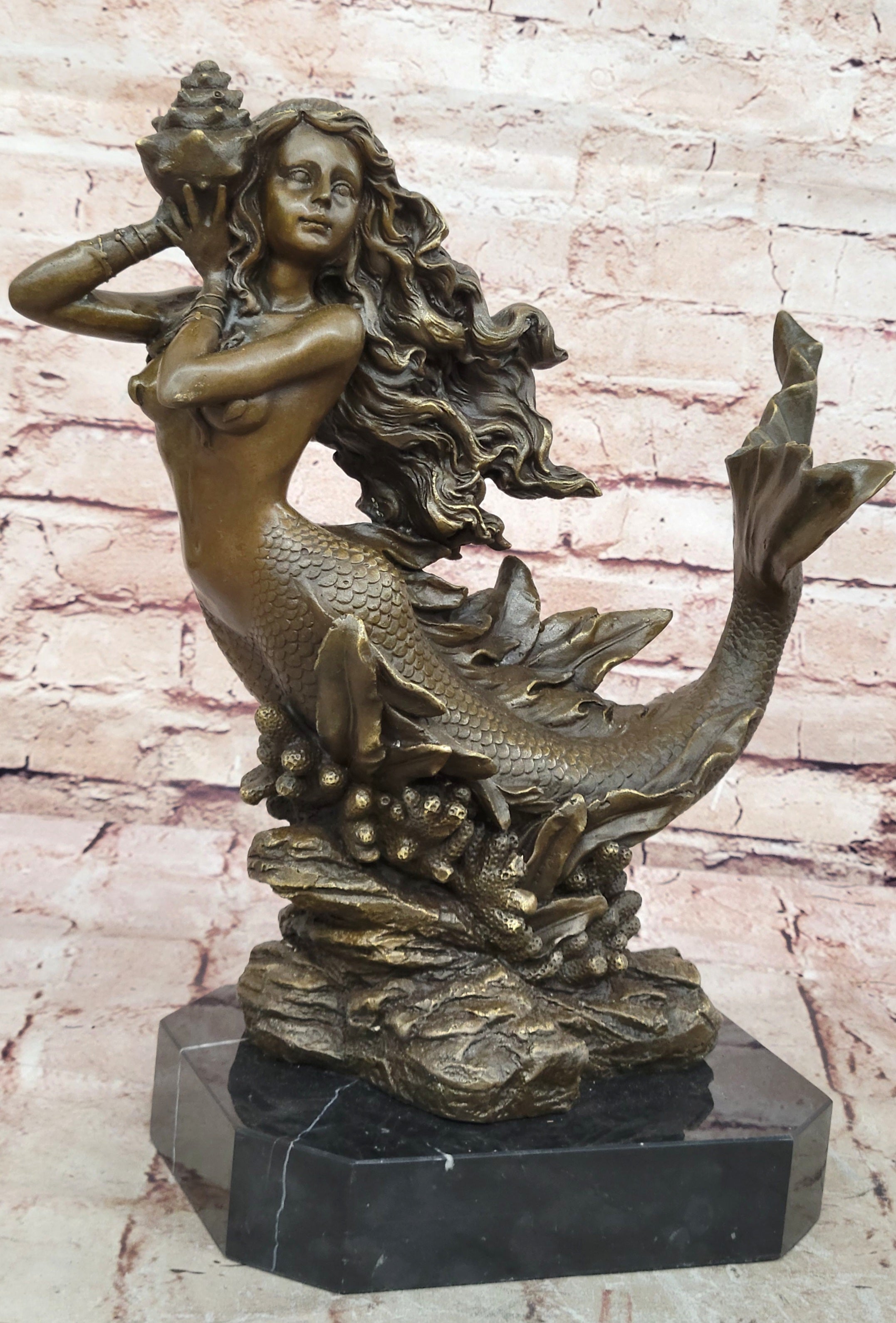 Bronze Mermaid Sculpture Female Figurines and Statues Home Decor Artwork