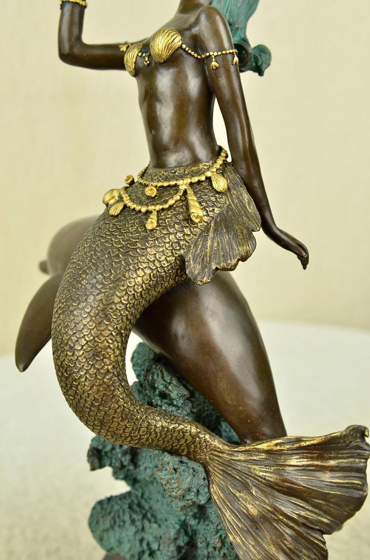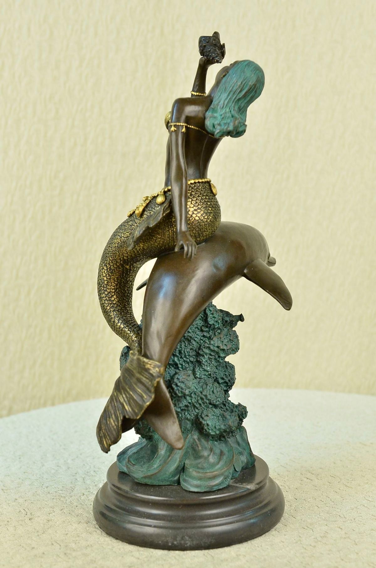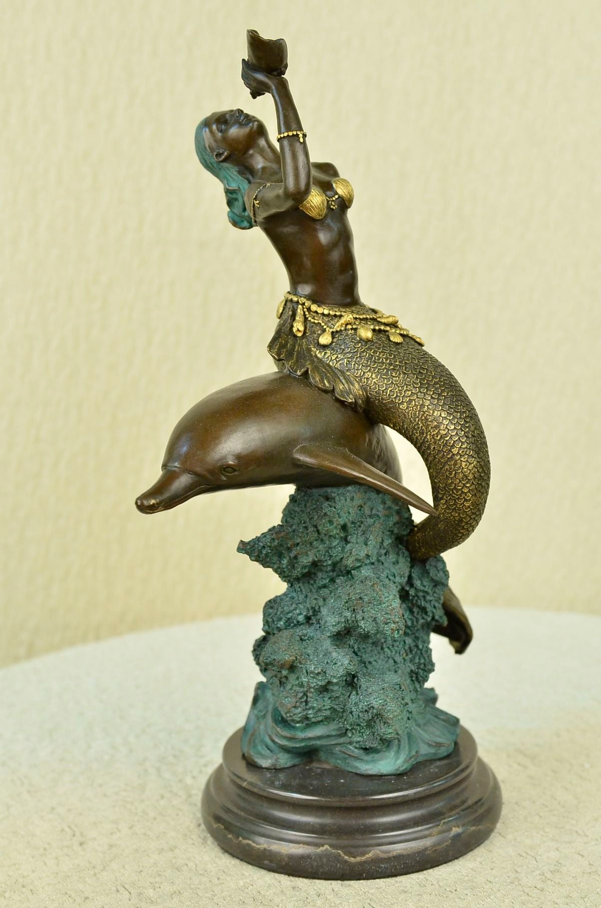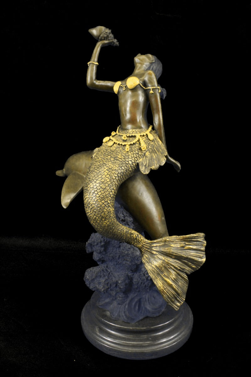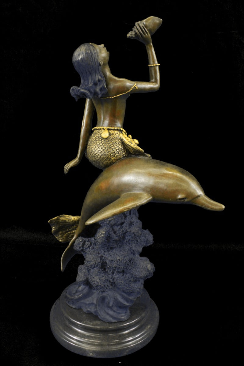 Original Home Decor Gilt Gold Patina Milo Mermaid Rides Dolphin Bronze Figurine