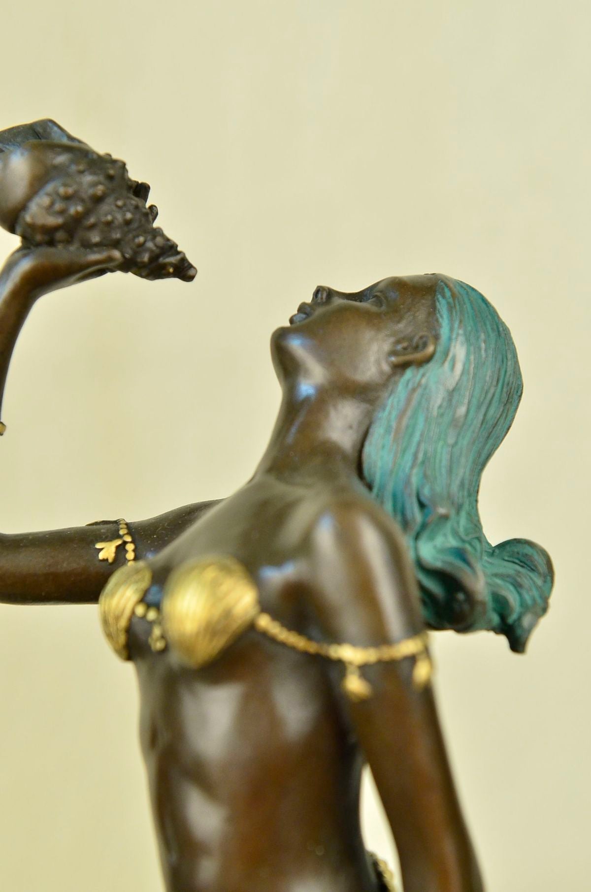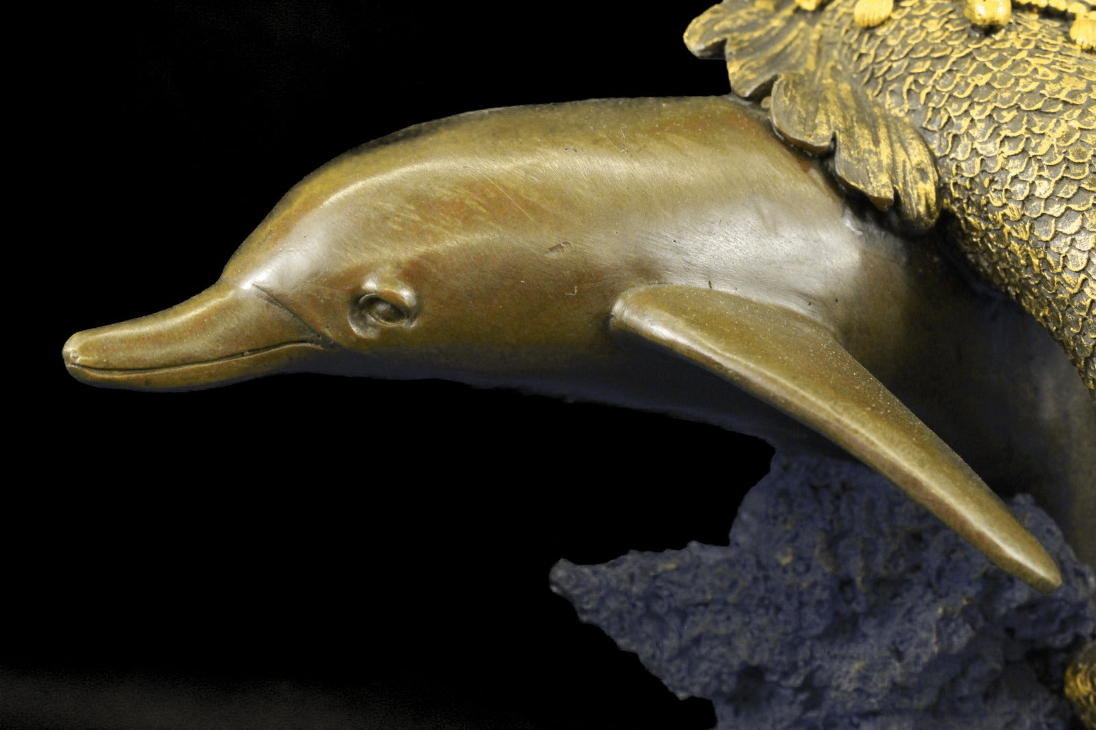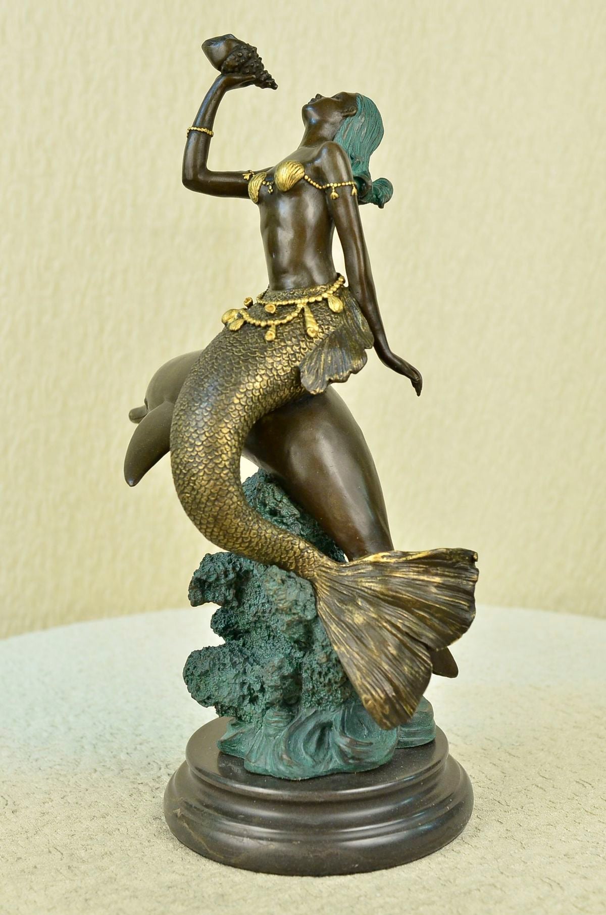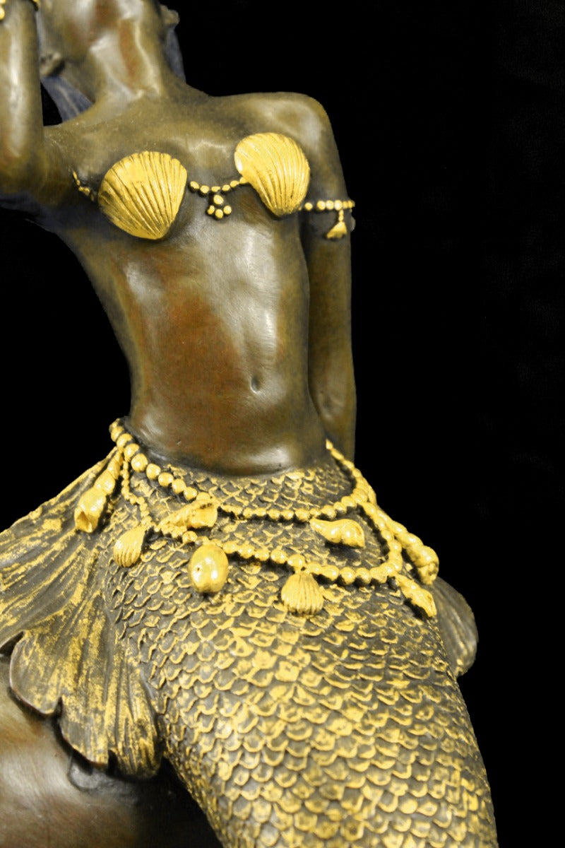 Original Home Decor Gilt Gold Patina Milo Mermaid Rides Dolphin Bronze Figurine