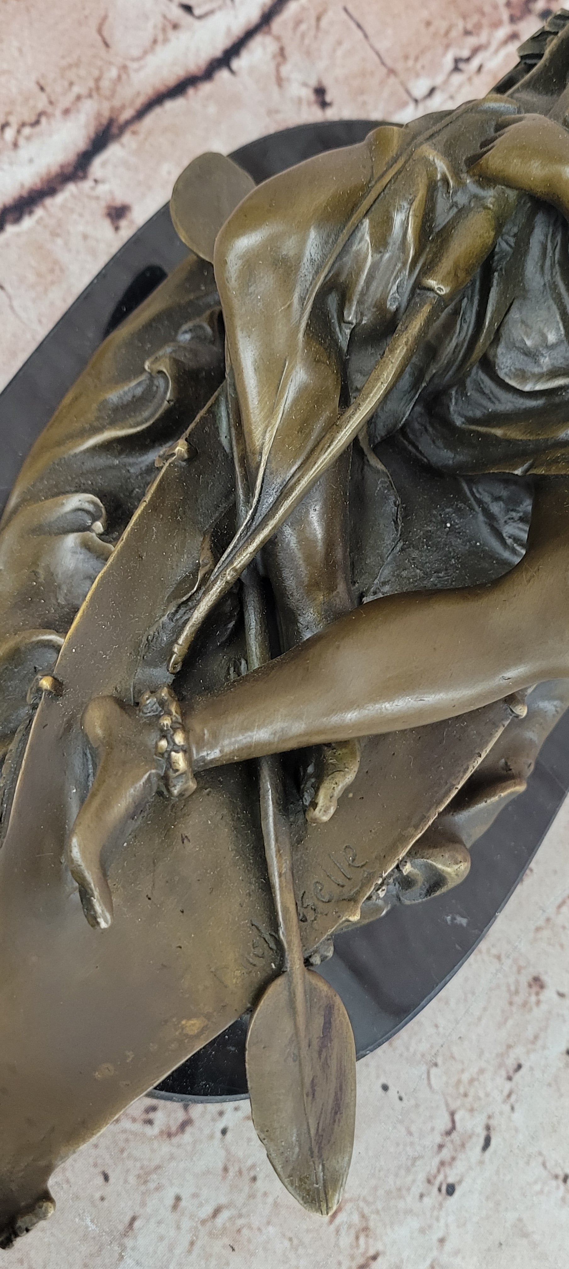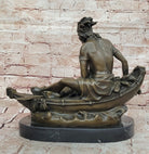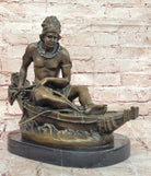 Bronze Native American Canoe Sculpture – Indian Warrior in Boat Statue