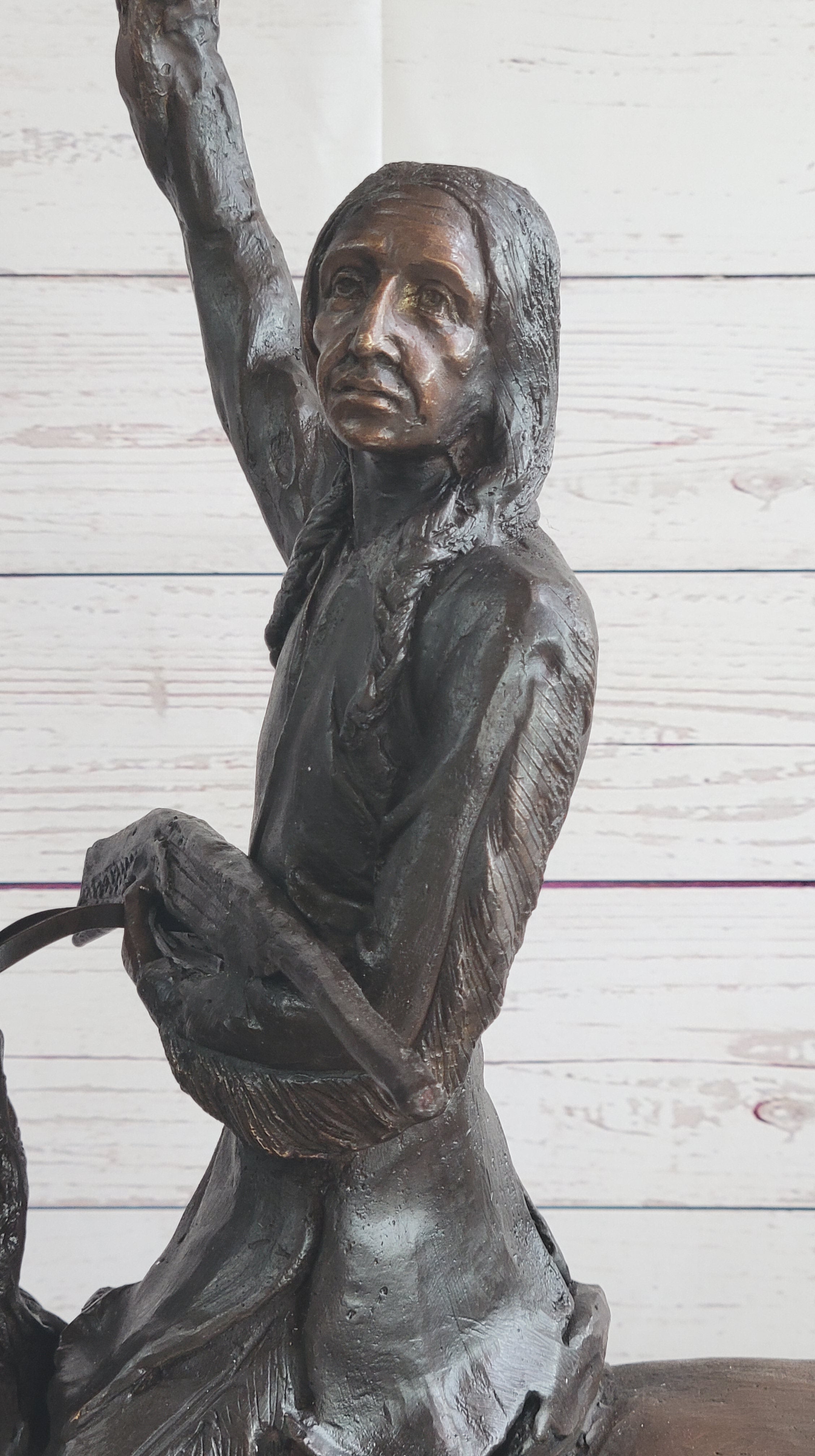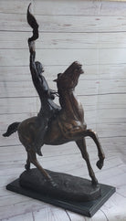 Buffalo Signal by Frederic Remington Bronze Native American Sculpture Statue 33" x 26"