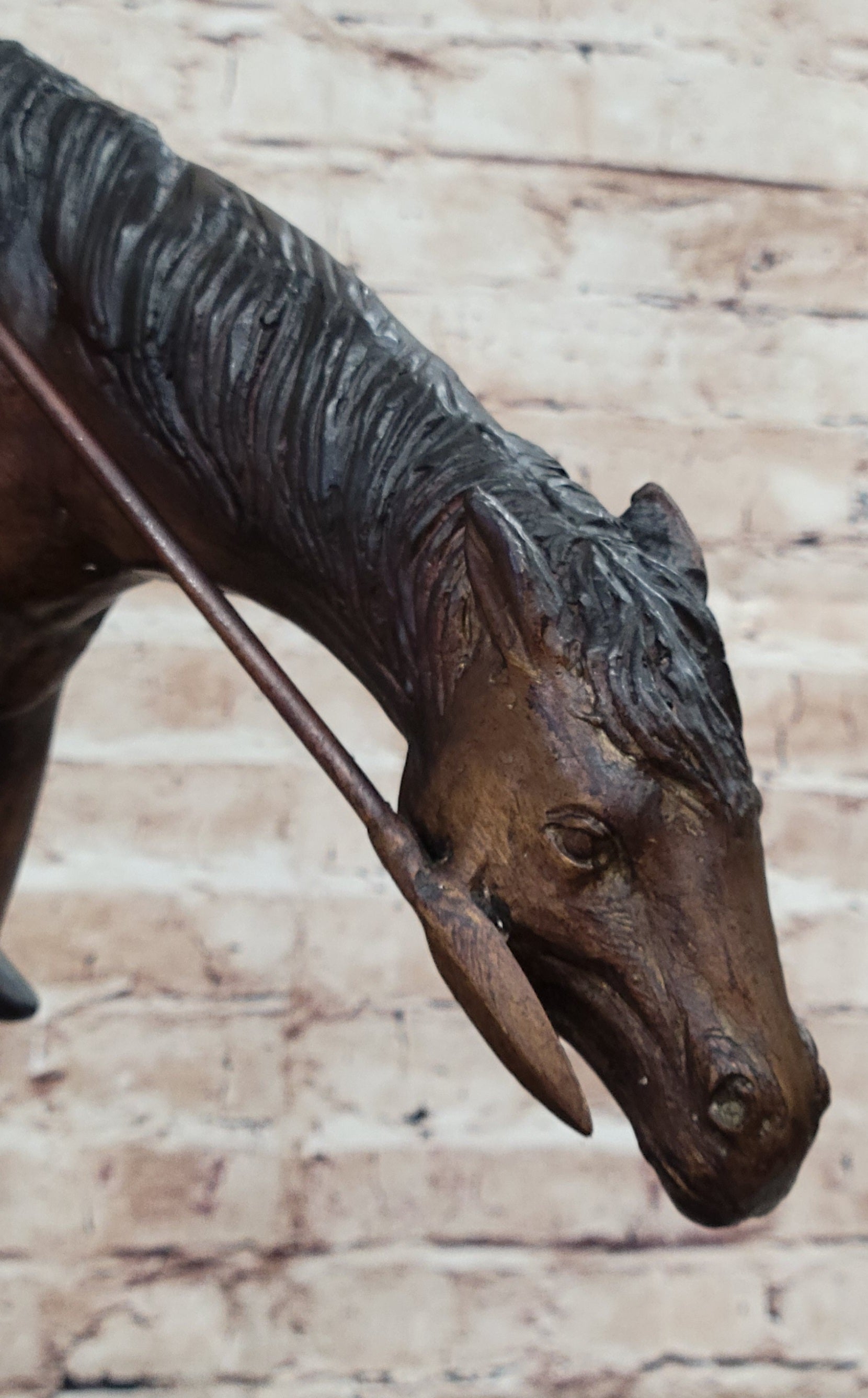 The attention to detail in this sculpture is extraordinary, capturing the essence of the horse's grace and strength. Its powerful form and gentle demeanor are beautifully conveyed, showcasing the harmonious relationship between man and animal. Crafted with skill and precision, the sculpture is a testament to the timeless artistry of the lost-wax casting method.