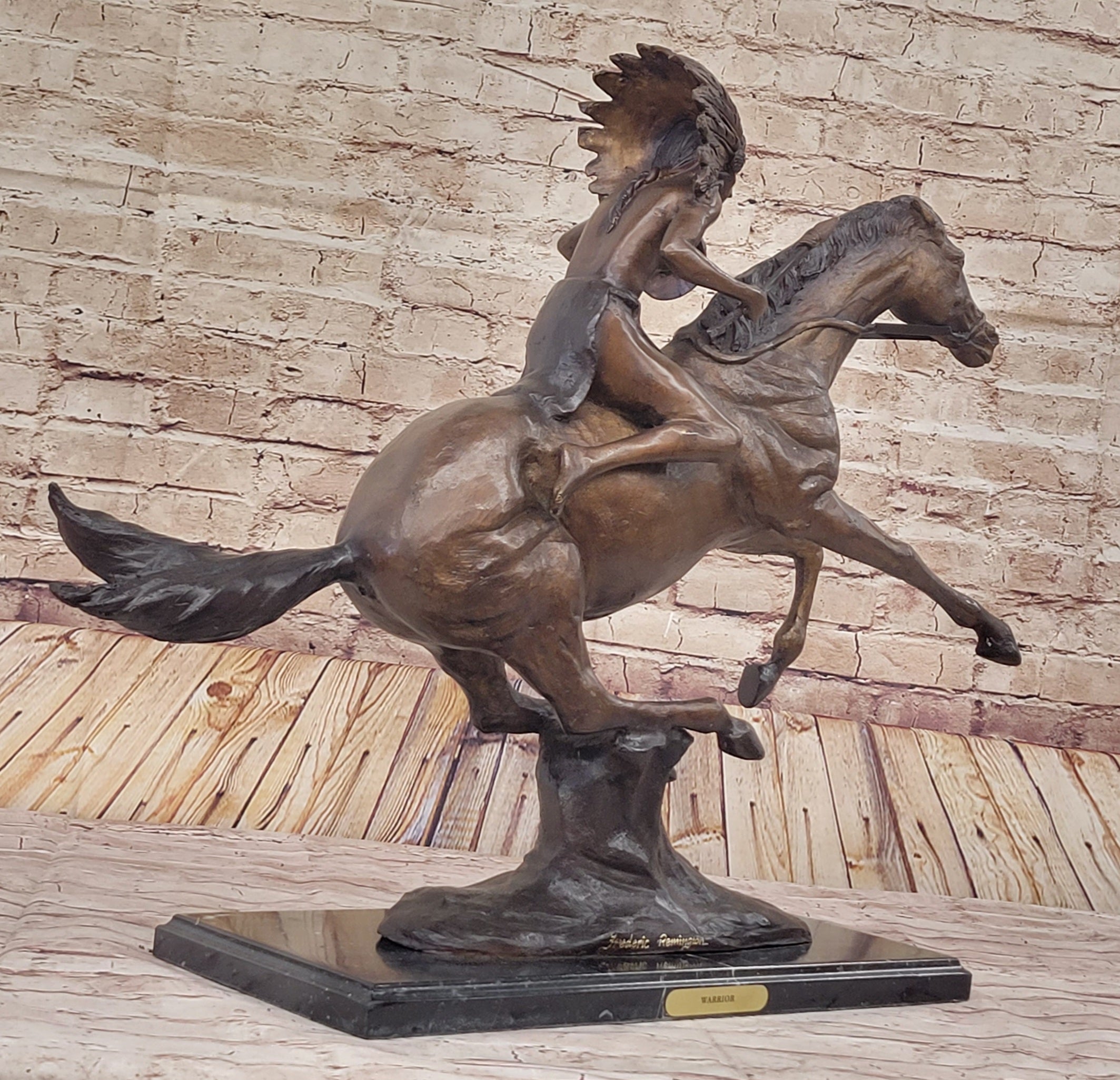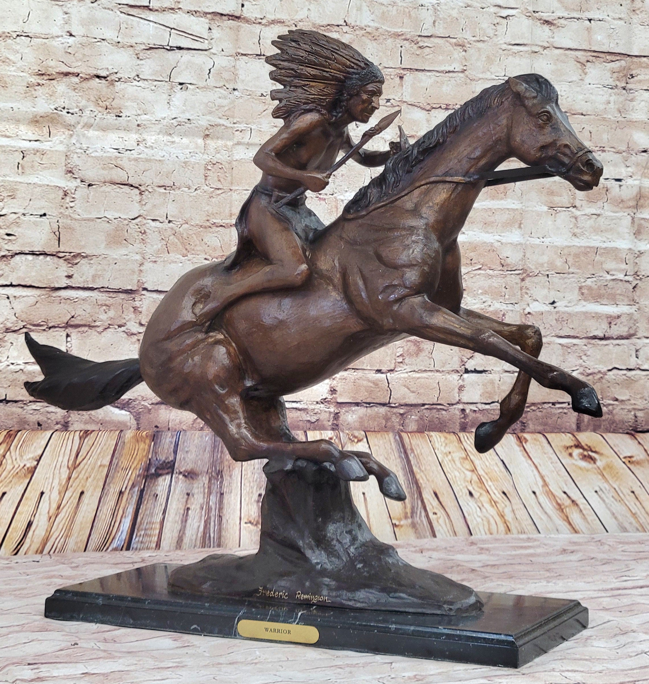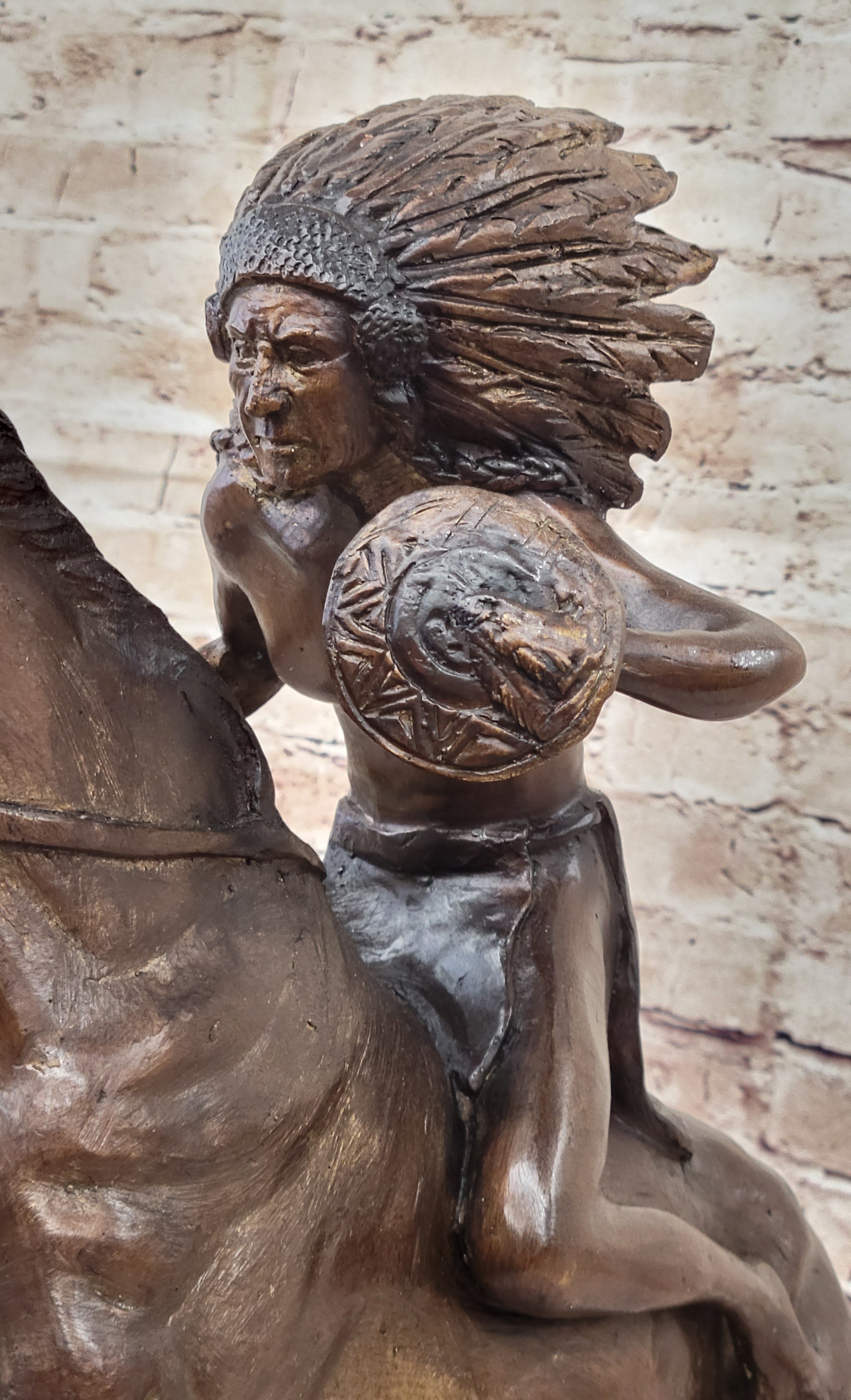 Frederic Remington WARRIOR Bronze Sculpture Statue Native American Headdress 20" x 25"