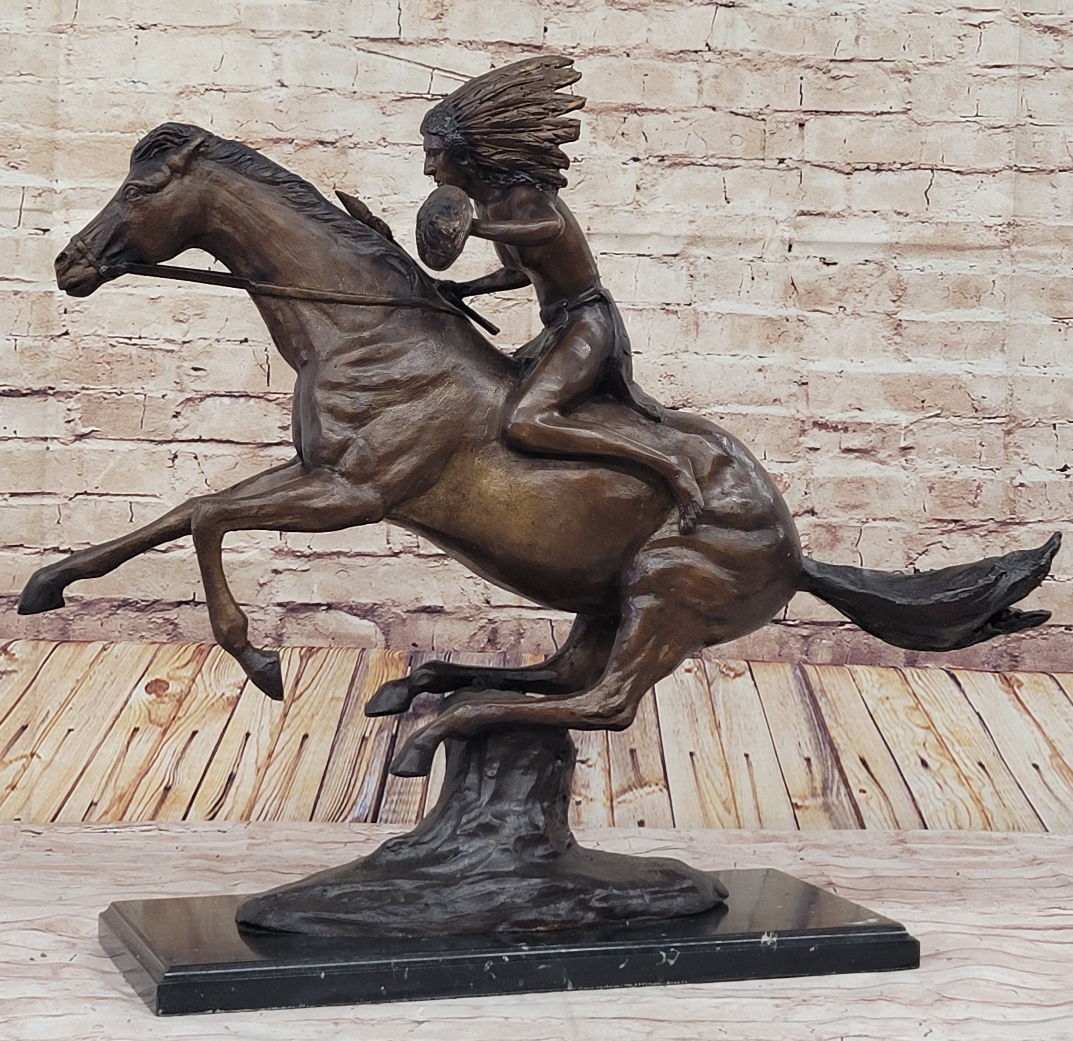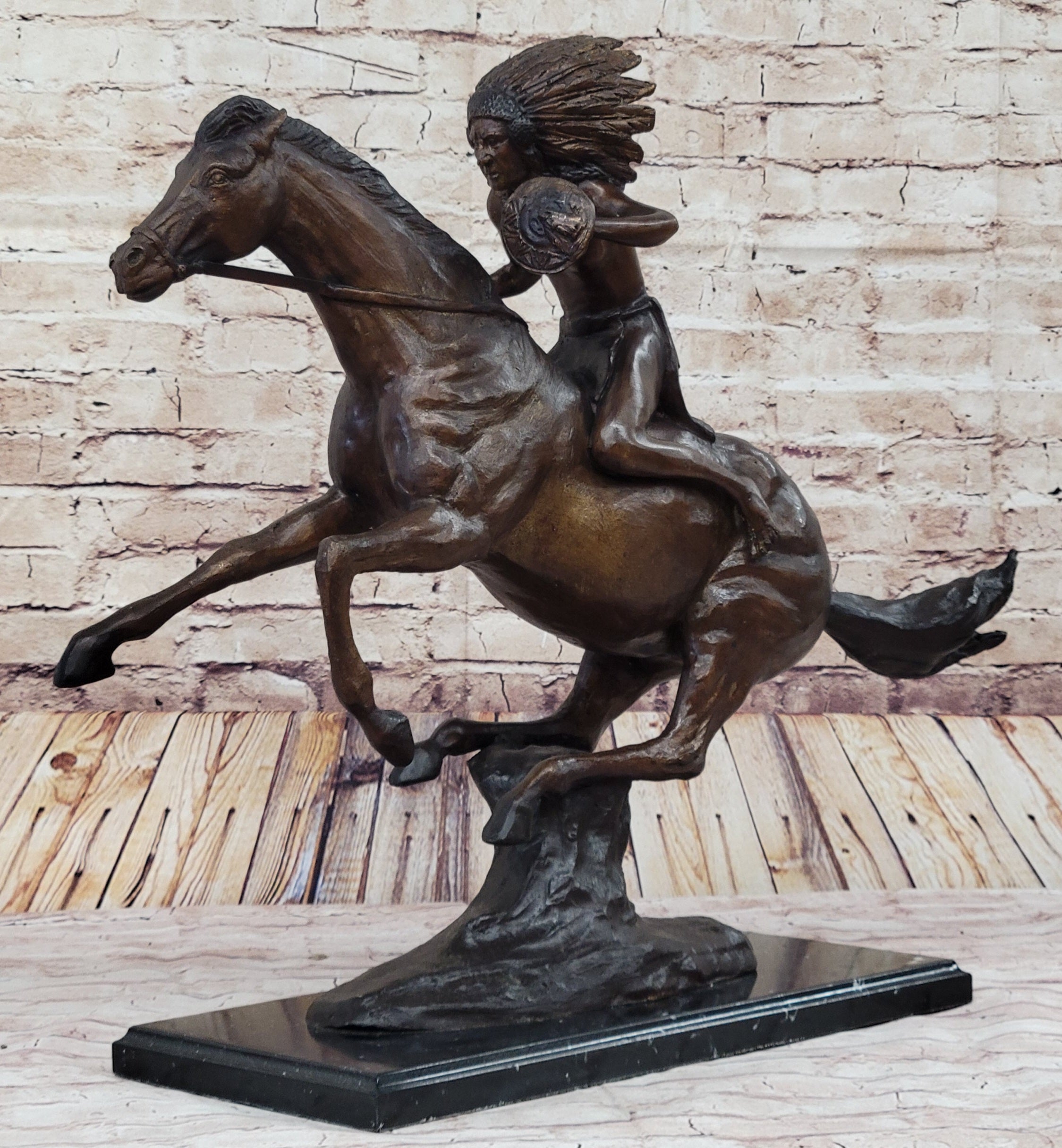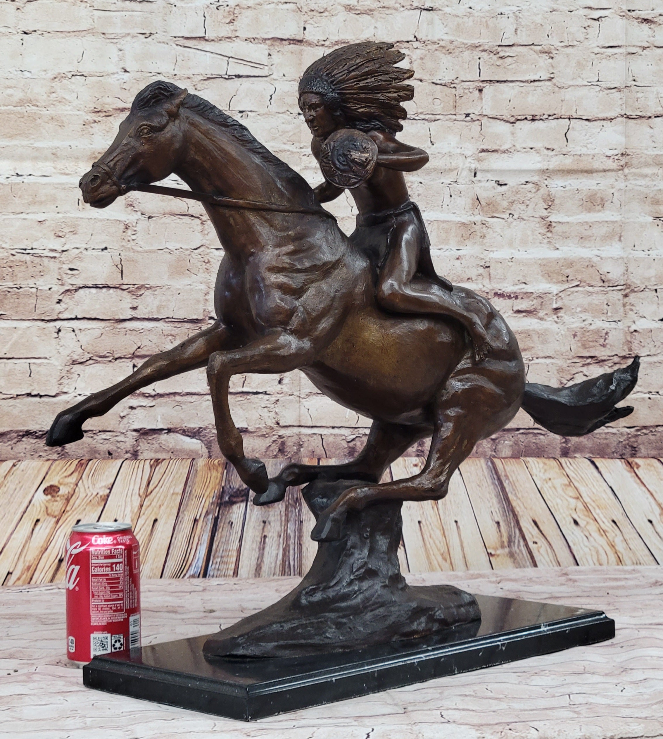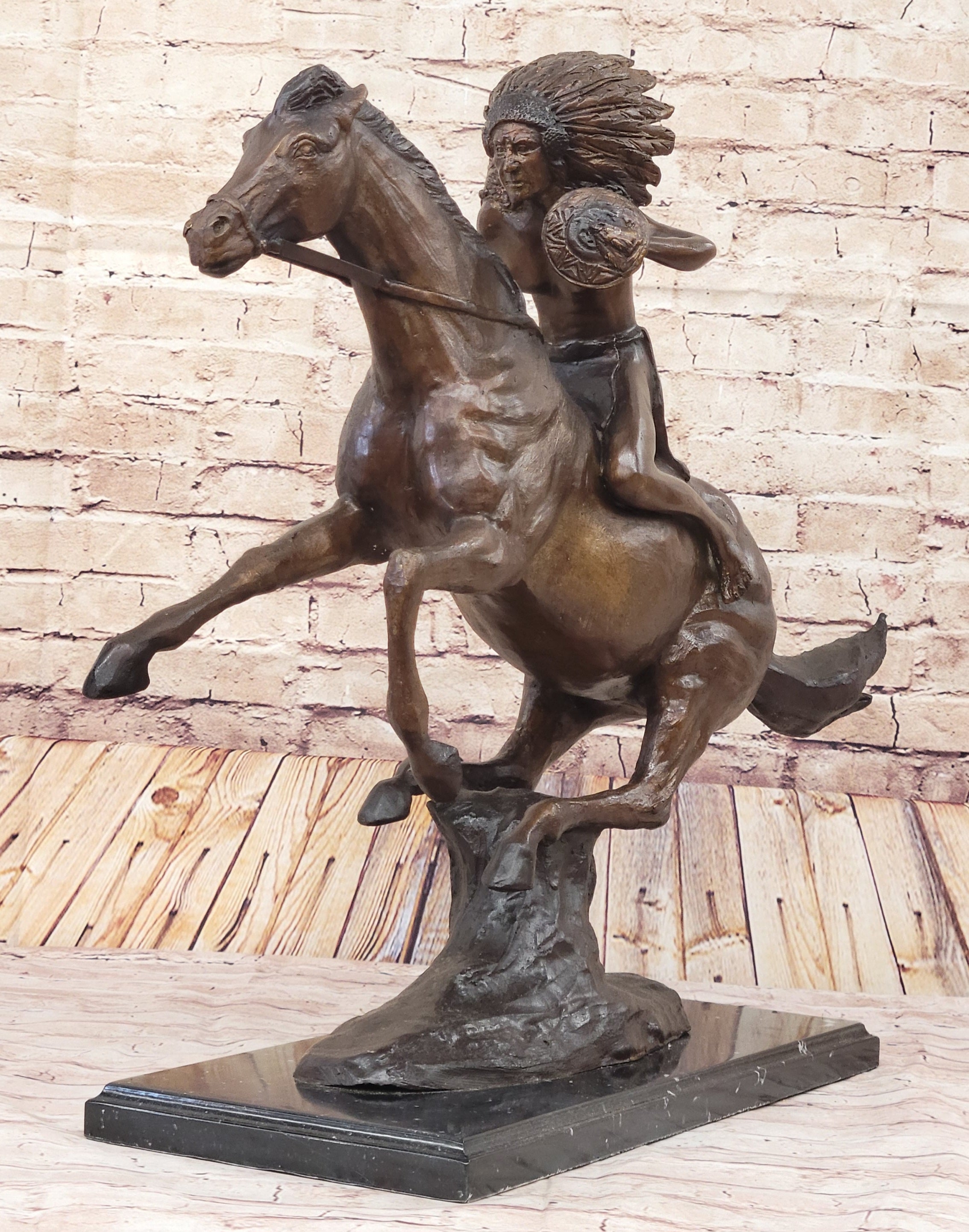 Frederic Remington WARRIOR Bronze Sculpture Statue Native American Headdress 20" x 25"