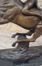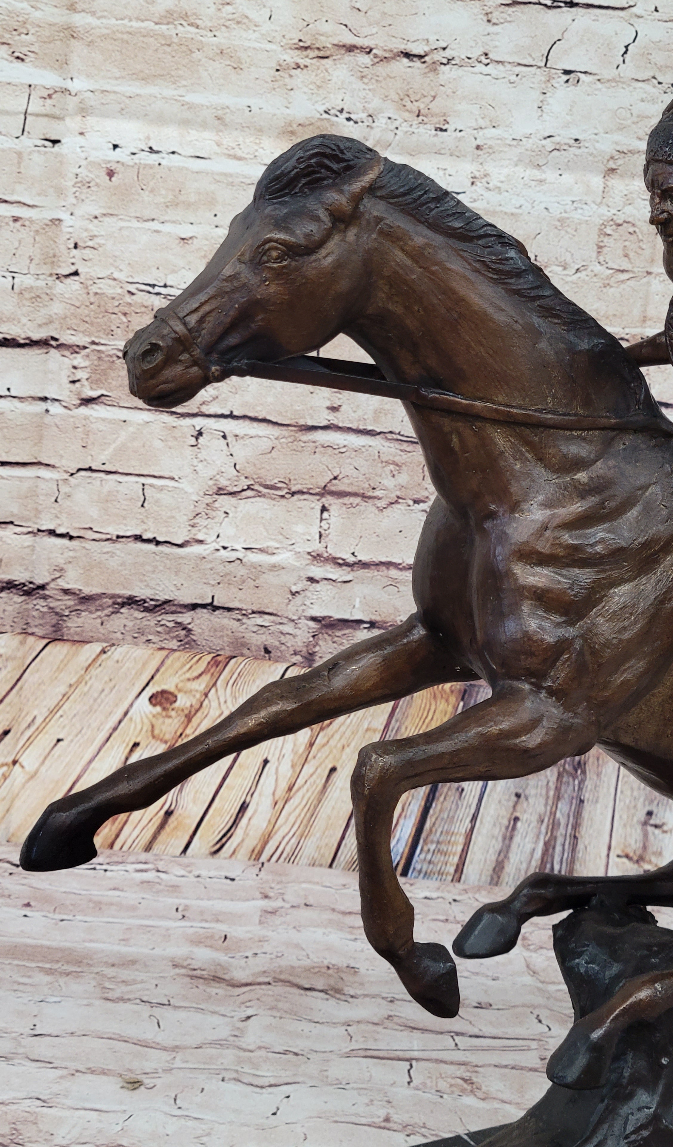 Embodying the timeless spirit of Native American resilience and reverence for the land, this exceptional bronze sculpture pays homage to the storied legacy of tribal leaders and their unwavering commitment to protecting their ancestral territories. With its meticulous craftsmanship and attention to historical detail, the sculpture stands as a powerful tribute to the cultural heritage and enduring significance of Native American traditions. Poised atop a sleek black marble base and signed by the renowned artist Frederic Remington, this captivating artwork is poised to be a cherished and thought-provoking addition to any art collection, resonating with its timeless narrative of courage, tradition, and the enduring bond between man and nature.Bronze Dimensions with Marble Base: Height 20" X Width 25"