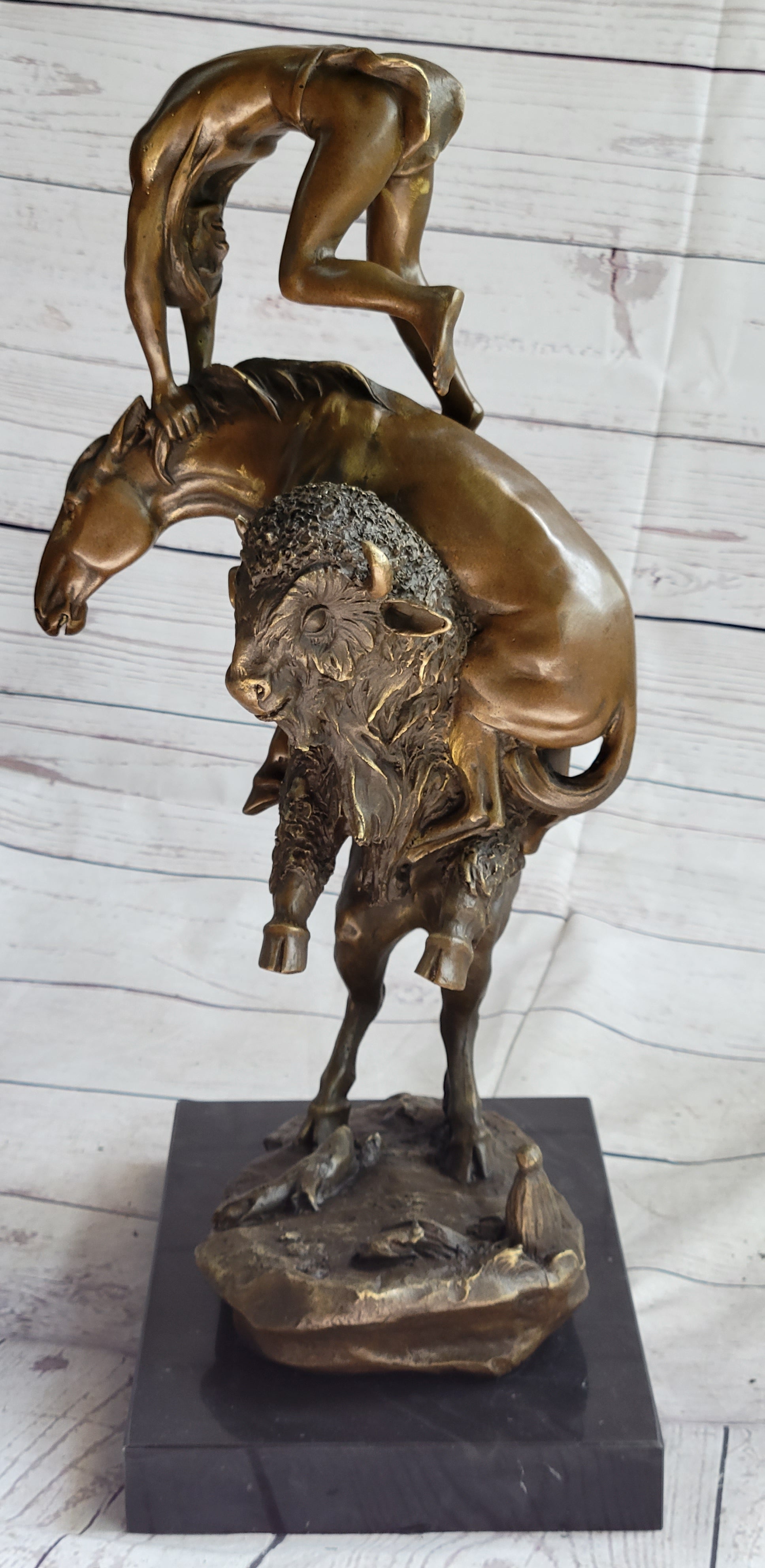 Frederic Remington Buffalo Horse Bronze Sculpture Western American Artist Art