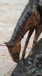 Crafted with exceptional attention to detail, this stunning sculpture boasts lifelike intricacies that bring the dynamic scene to life with remarkable realism. Meticulously handcrafted using the time-honored "Lost Wax Method" and adorned with a captivating two-toned brown patina, the sculpture captures the essence of the artist's skill and mastery in immortalizing the spirit of the American frontier. Bearing the signature of the renowned artist Frederic Remington, the sculpture "Mountain Man" stands as a testament to the enduring legacy of the rugged individuals who dared to traverse the challenging landscapes of the untamed West, embodying the unyielding spirit and indomitable courage that define the enduring allure of the American frontier.Bronze Dimensions with Marble Base: Height 21" X Width 17"
