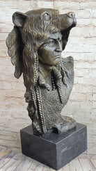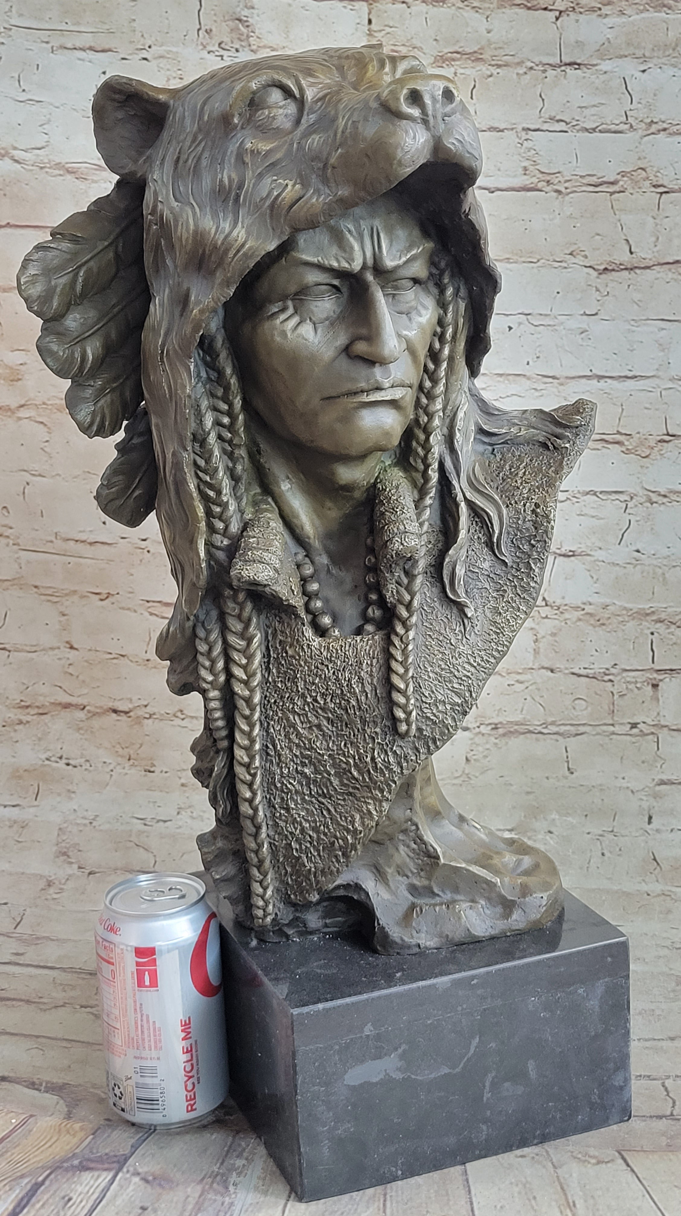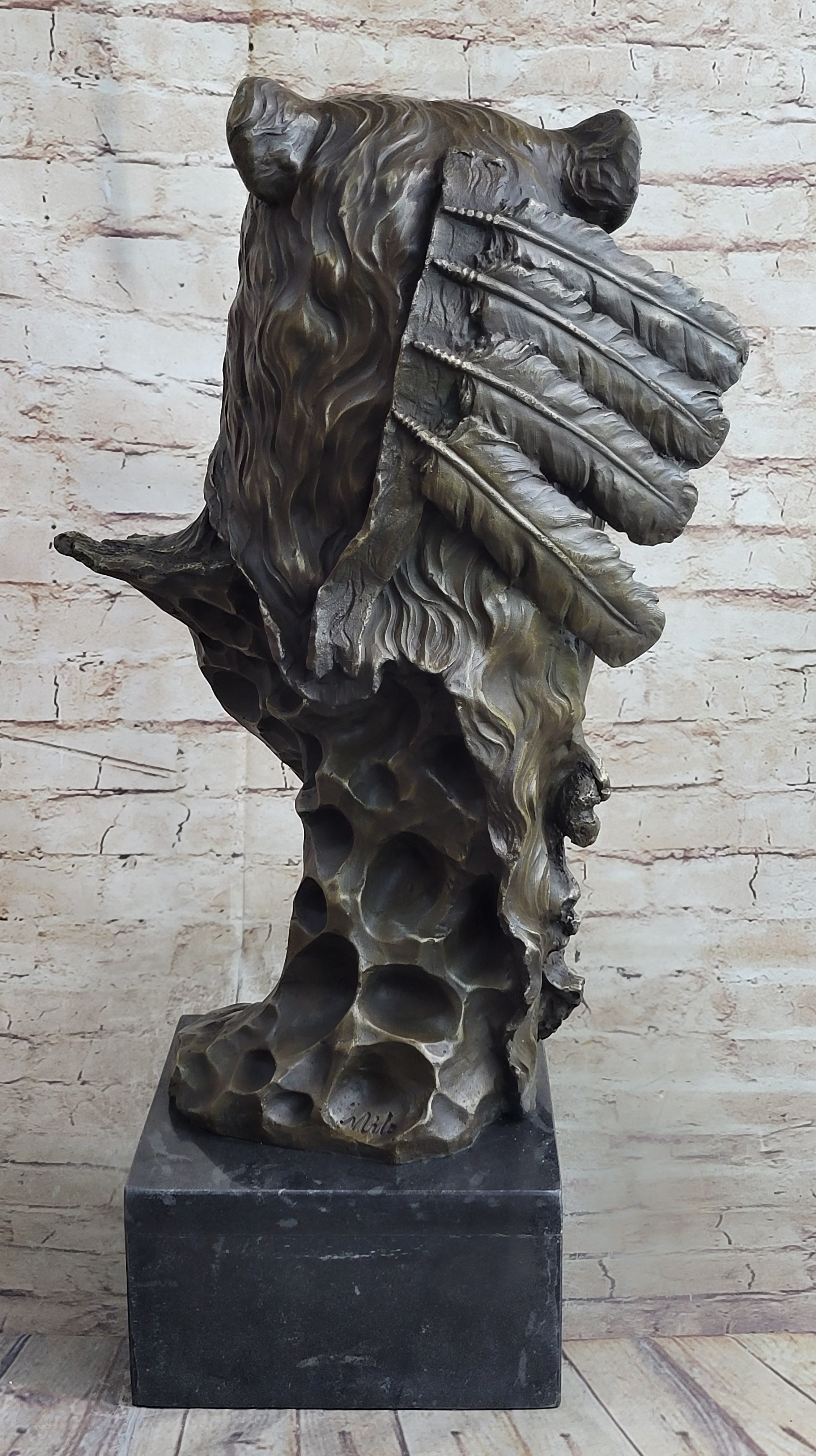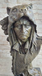 Native American Indian Chief Warrior in Bear Headdress Bonnet - Bronze Sculpture by Milo
